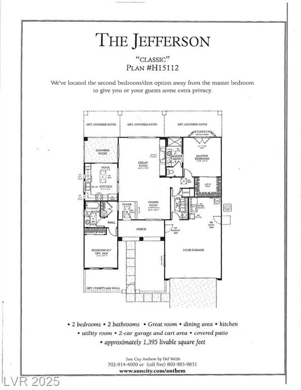 STUNNING JEFFERSON MODEL IN SUN CITY ANTHEM, 2 BEDROOMS, 2 BATHROOMS, DINING AREA AND GREAT ROOM WITH A NICE VIEW OF THE BACKYARD… KITCHEN WITH CORION COUNTER TOPS… PRIMARY BEDROOM FEATURES LARGE WALK IN CLOSET AND EN-SUITE WITH BRAND NEW CARPET IN BEDROOM AND CLOSET … LAUNDRY ROOM HAS CABINETS AND A CLOSET.. HOME HAS CEILING FANS, WINDOW COVERINGS, A WATER SOFTENER, A LARGE SKYLIGHT.. ALL NEW IRRIGATION SYSTEM FRONT AND BACK YARD... ENJOY ALL THE AMENITIES OF SCA COMMUNITY: INDOOR, OUTDOOR SWIMMING POOLS, FITNESS CENTERS, TENNIS COURTS, 2 CHAMPIONSHIP GOLF COURSES, BOCCE BALL AND PICKLEBALL COURTS… 62 DIFFERENT CLUBS YOU CAN JOIN.. ACTIVITIES (EVENTS, EXCURSIONS, AND SHOWS)...