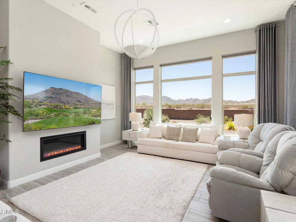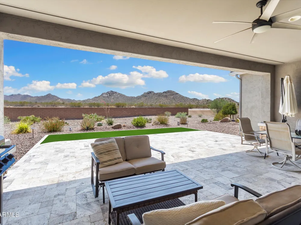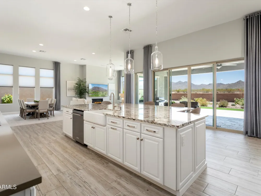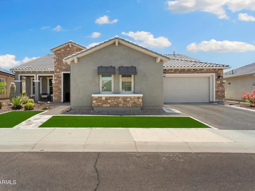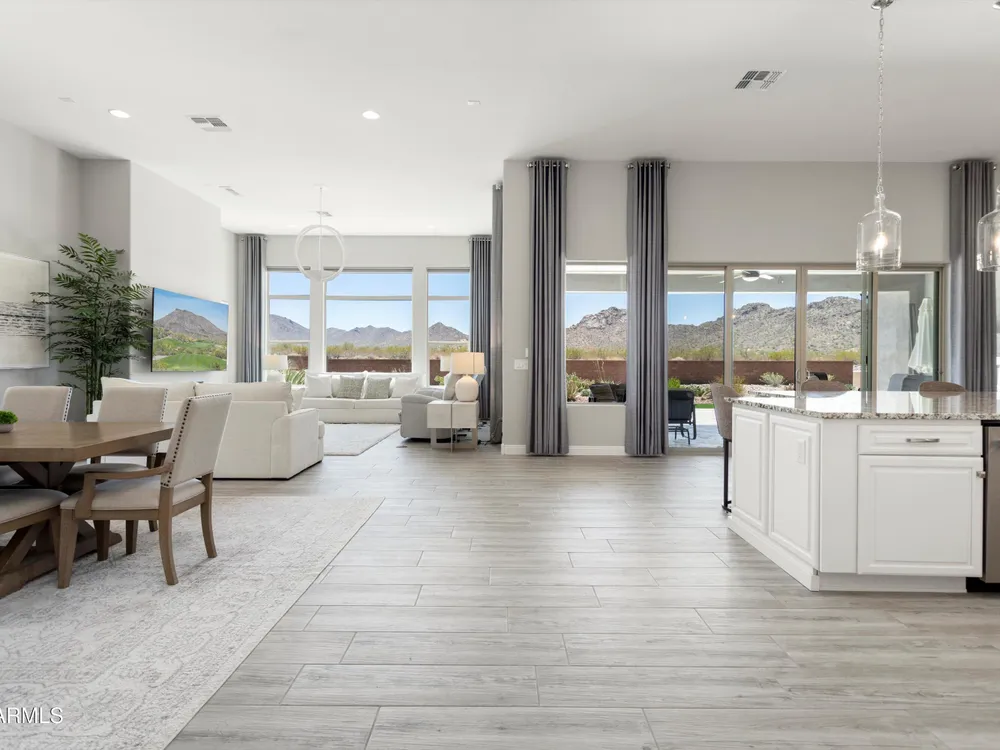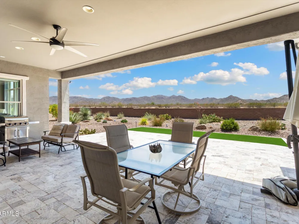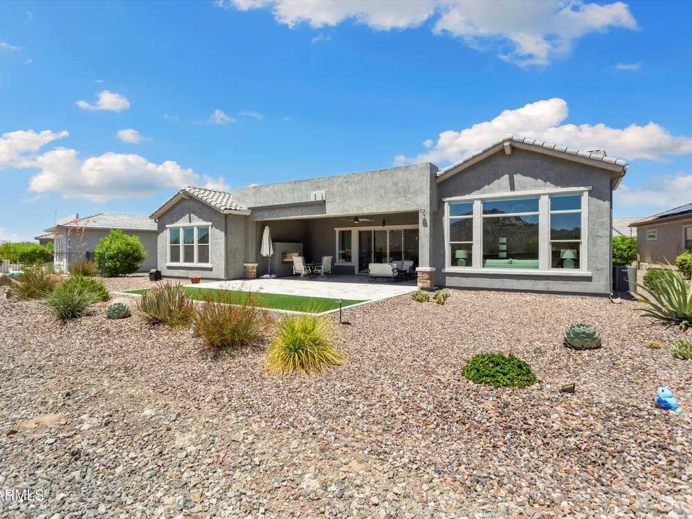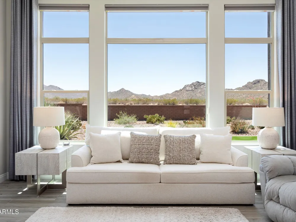 EXPERIENCE THE PINNACLE OF SUN CITY FESTIVAL LIVING. THIS ESTATE SERIES HOME IS NESTLED ON A PREMIUM LOT WITH UNPARELLELED PANORMIC DESERT VIEWS AND MOUNTAIN VISTAS. Step inside to this spacious, open concept floorplan w/soaring ceilings. Walls of windows throughout the main living areas flood the home with natural light and frame the dramatic landscape. The chef's kitchen is thoughtfully appointed w/an executive island, modern quartz counters, pendant lighting & lux culinary cabinet layout. This design seamlessly flows into the expansive gathering space & dining area. The primary suite is a spacious retreat, complete w/luxurious bath. The 2 additional ensuite bedrooms are perfect for visitors. Step outside to this amazing mountain-view sanctuary, ideal for entertainment or relaxation!