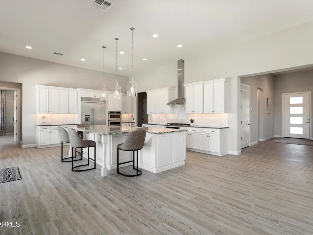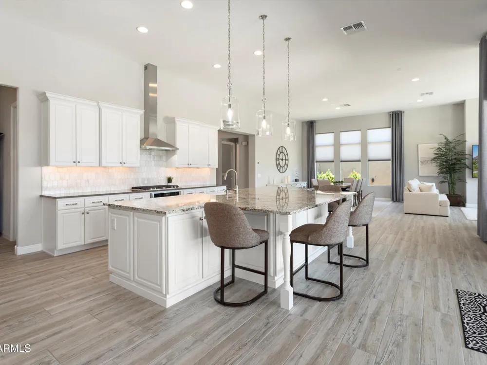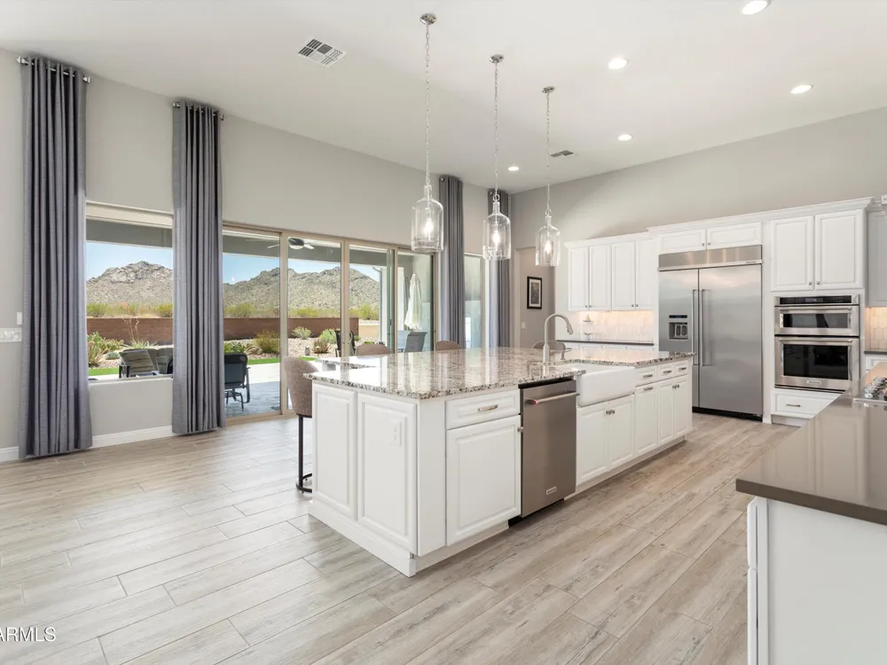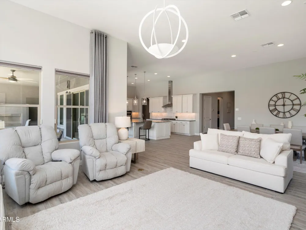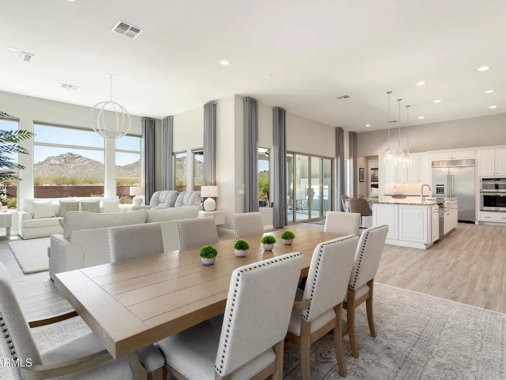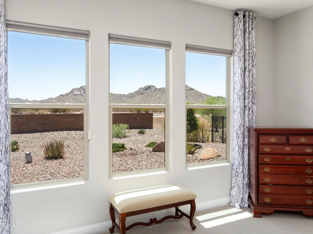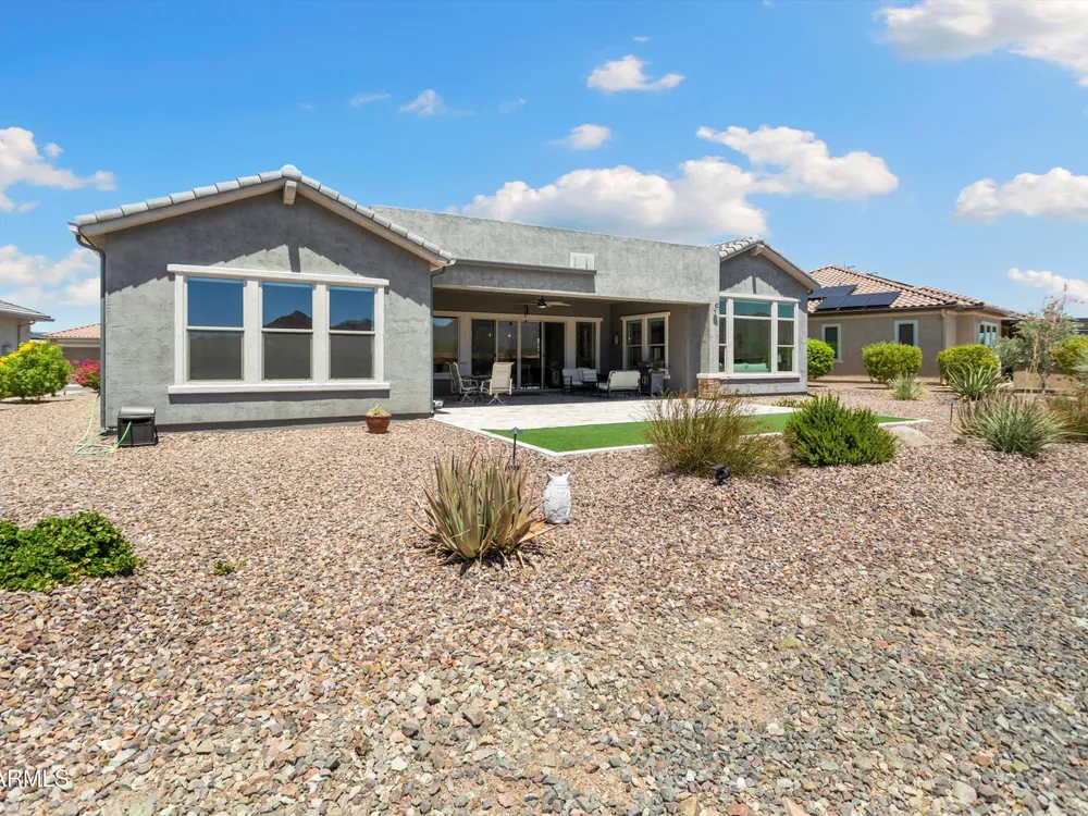 EXPERIENCE THE PINNACLE OF SUN CITY FESTIVAL LIVING. THIS ESTATE SERIES HOME IS NESTLED ON A PREMIUM LOT WITH UNPARELLELED PANORMIC DESERT VIEWS AND MOUNTAIN VISTAS. Step inside to this spacious, open concept floorplan w/soaring ceilings. Walls of windows throughout the main living areas flood the home with natural light and frame the dramatic landscape. The chef's kitchen is thoughtfully appointed w/an executive island, modern quartz counters, pendant lighting & lux culinary cabinet layout. This design seamlessly flows into the expansive gathering space & dining area. The primary suite is a spacious retreat, complete w/luxurious bath. The 2 additional ensuite bedrooms are perfect for visitors. Step outside to this amazing mountain-view sanctuary, ideal for entertainment or relaxation!
