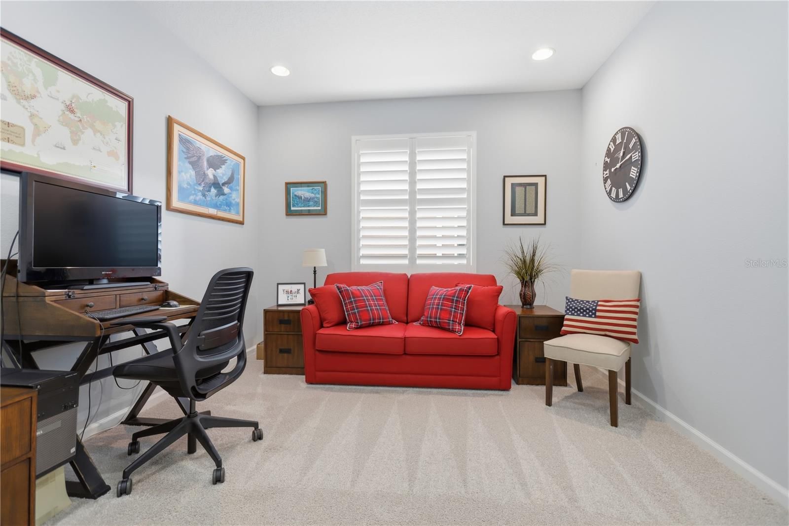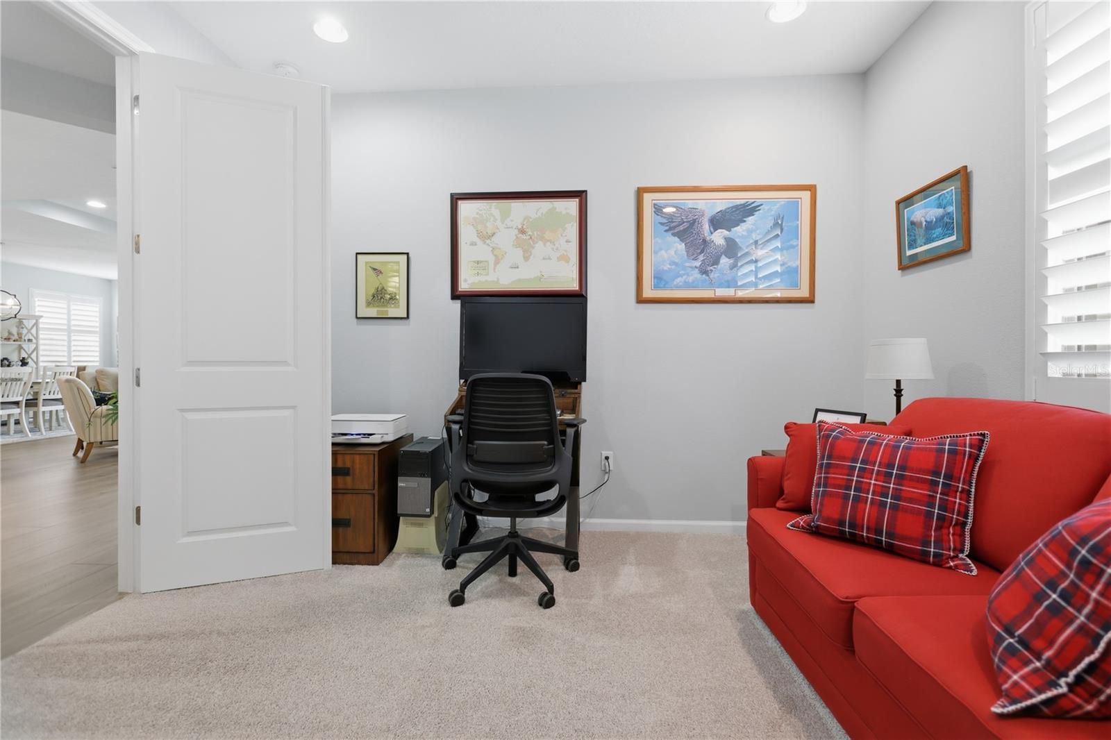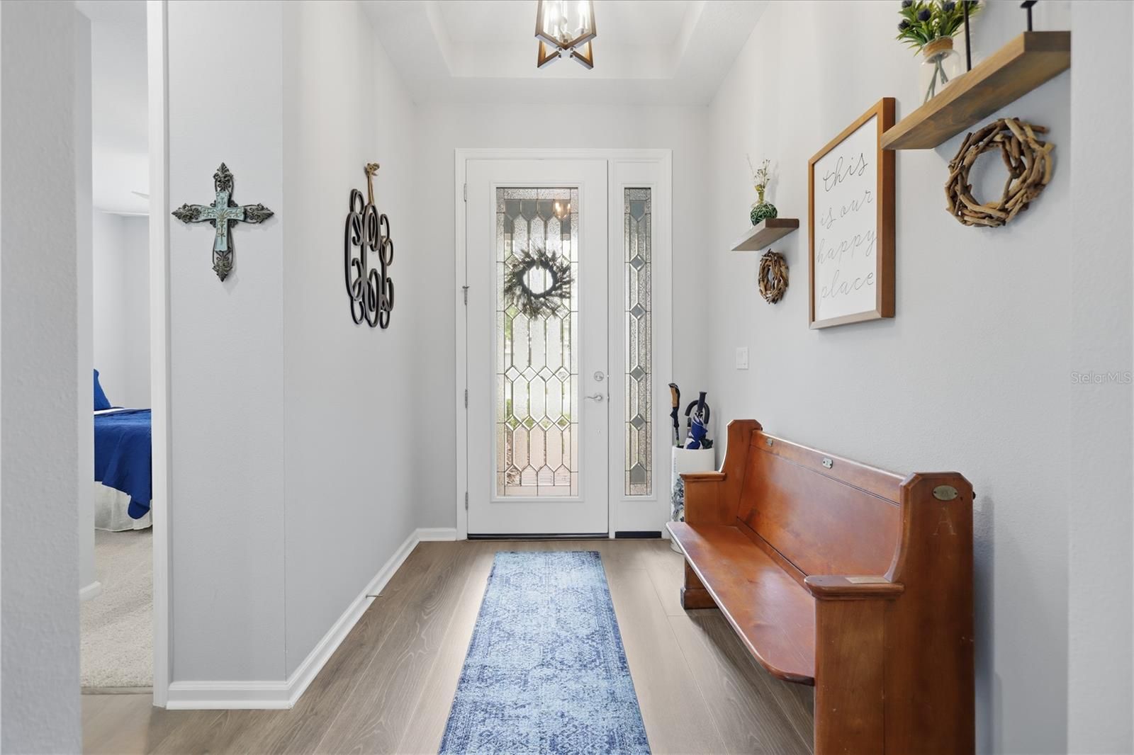 - Ceiling Fan(s), High Ceilings, Living/Dining Room, Open Floorplan, Main Level Primary, Solid Surface Counters, Tray Ceiling(s), Walk-In Closet(s), Window Treatments