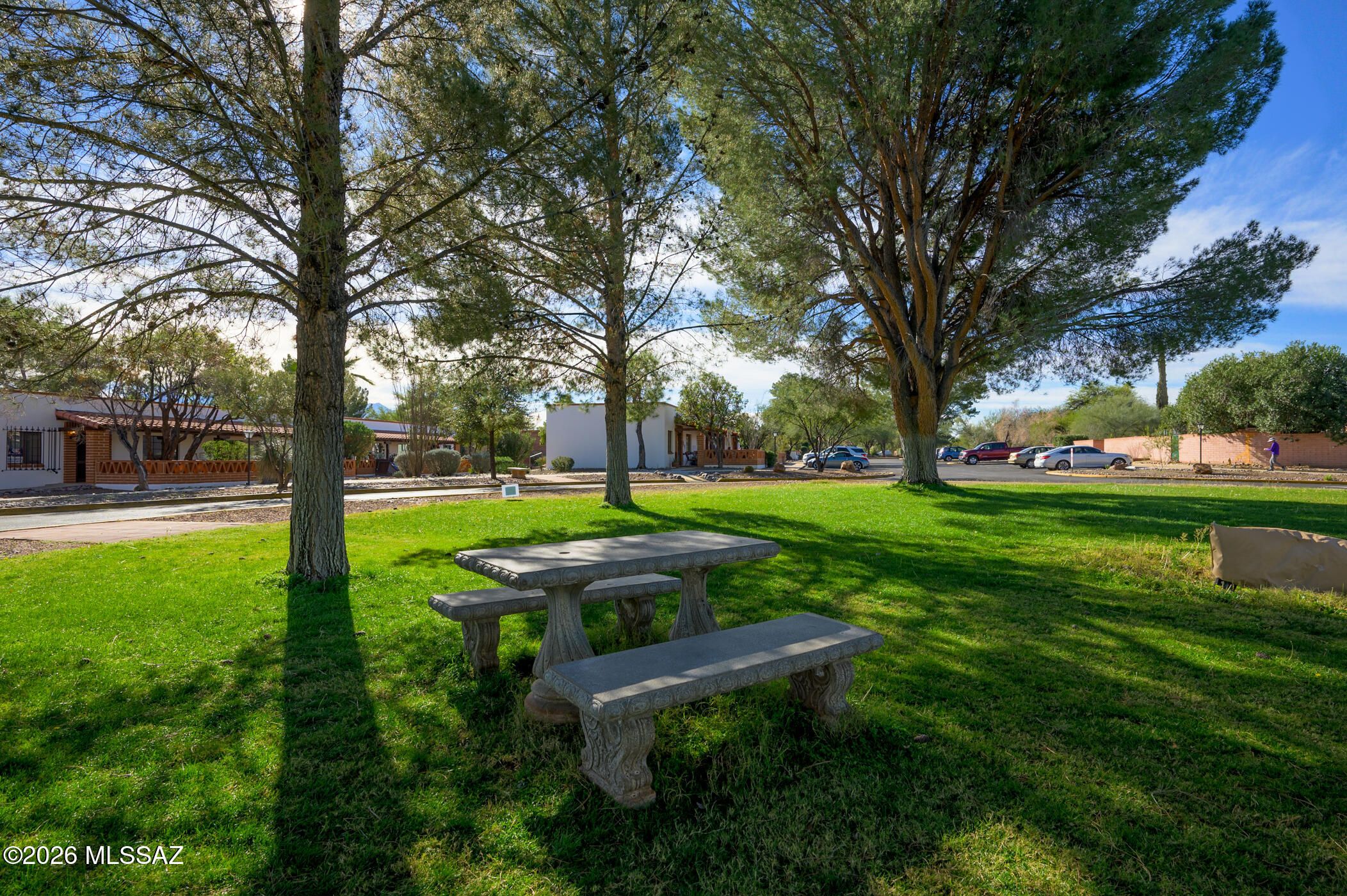Welcome to 261 S Paseo Tierra, Unit D in Green Valley--a lovely snowbird retreat that's fully furnished and truly move-in ready. Privately tucked away on the last street of Villas West and located directly across from one of the neighborhood parks, this charming 2-bedroom, 1-bath villa offers a peaceful, low-traffic setting perfect for seasonal living or for someone looking to downsize. The laundry conveniently located in the storage shed, makes everyday living simple and efficient. Designed for a worry-free, lock-and-leave lifestyle, the HOA covers the roof, HVAC, water heater, exterior paint, exterior pest control, water, trash service, common area maintenance, neighborhood parks, and pools. Whether you're escaping winter or looking for an easy full-time option, all you need to bring is