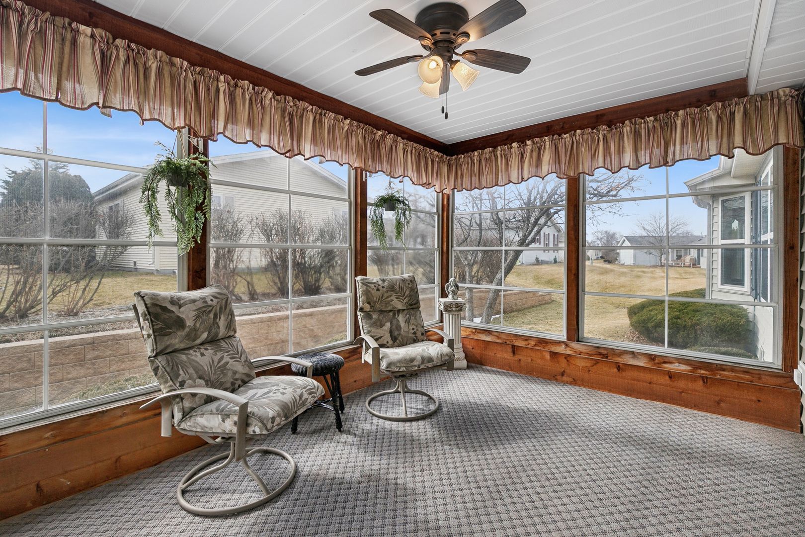 Welcome home to Saddlebrook Farms, a sought-after 55+community designed for comfort, connection, and care free living. This Charming 2-bedroom, 2-bath ranch offers a spacious open-concept layout...perfect for relaxing or entertaining. A versatile office/den (or piano room) with elegant French doors adds flexibility plus a bright three season room invites you to enjoy peaceful views. An oversized one car attached garage provides extra storage and convenience. Ideally located close to the clubhouse, residents enjoy an active lifestyle with scenic walking trails, serene fishing ponds, a fully equipped fitness center, bocce ball, pickleball courts and so much more. This is more than a home---it's a community, and lifestyle you'll love.