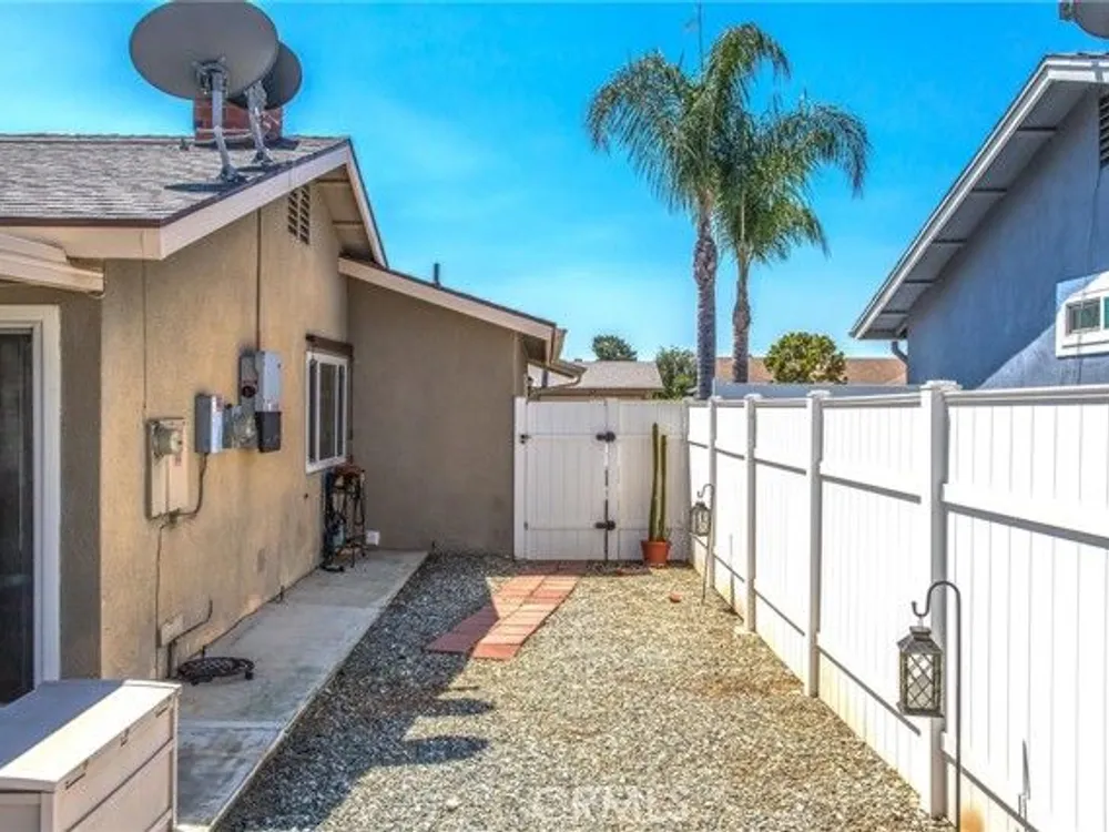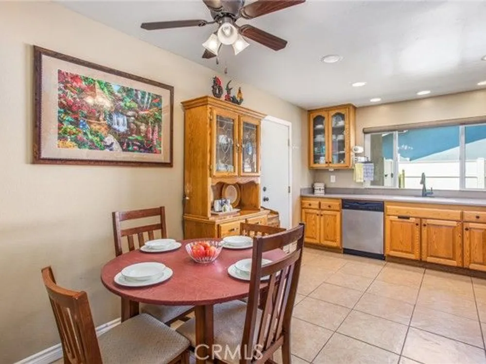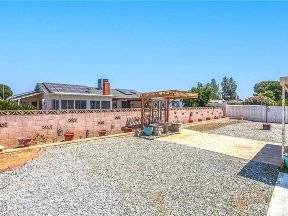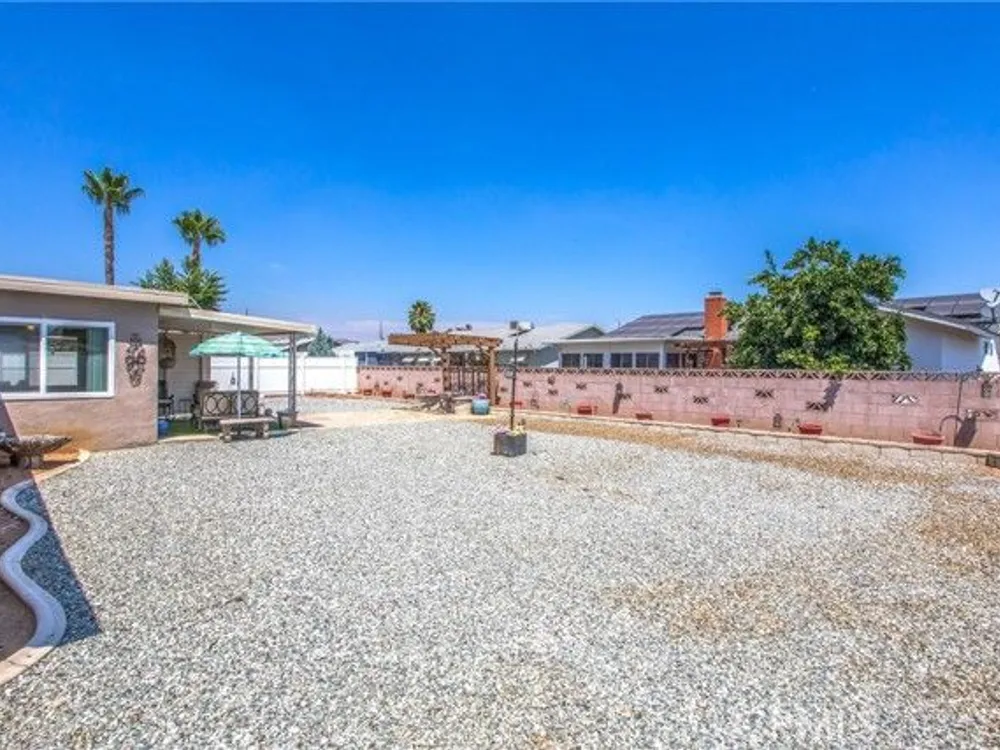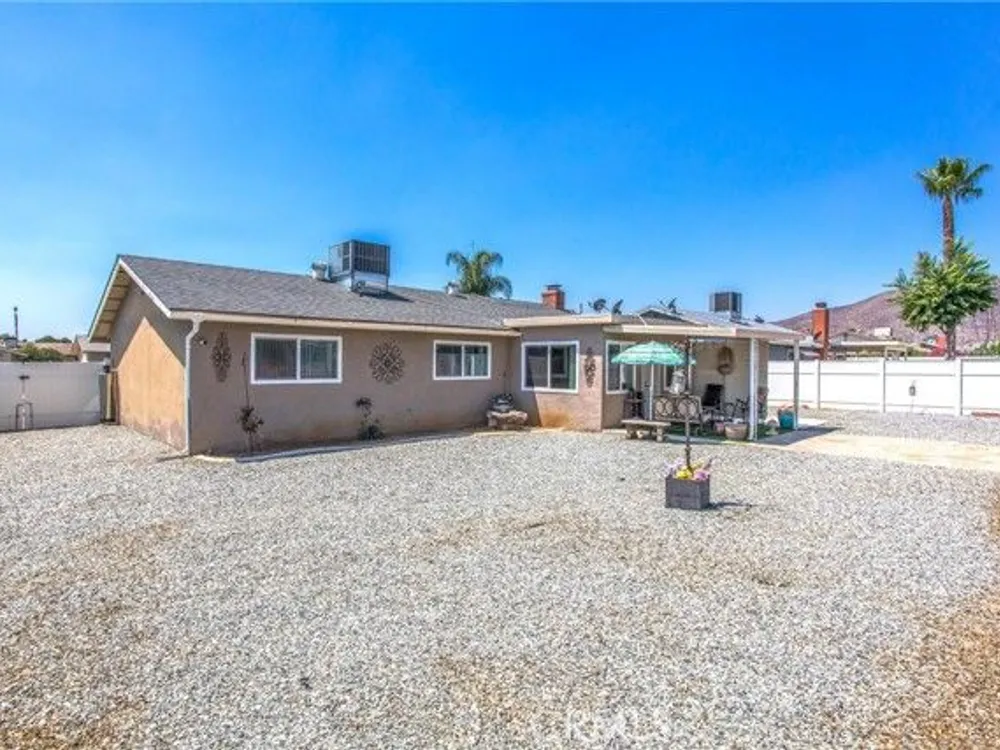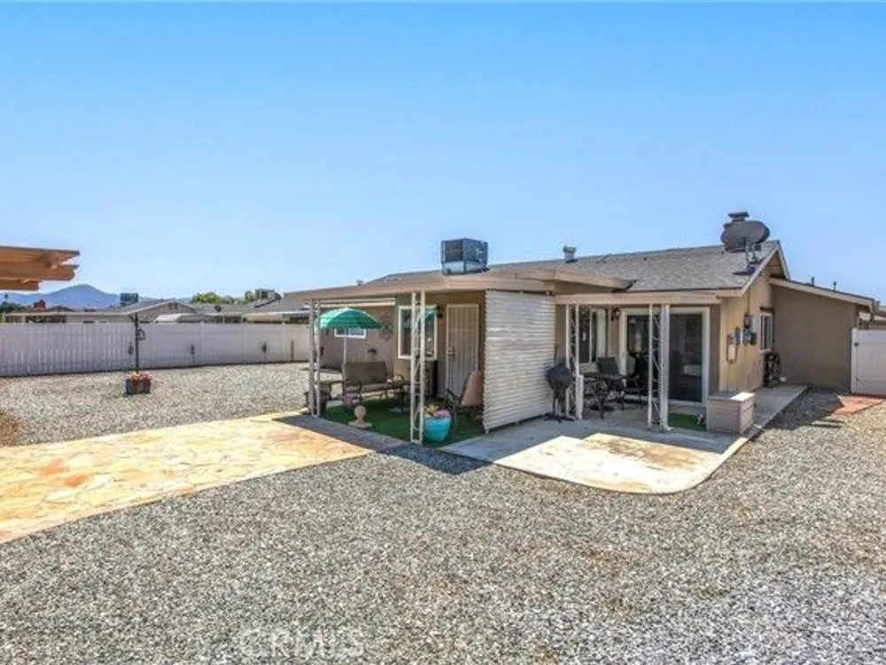 Located in the Sun City Civic Association, a 55+ active adult community, this single-story home offers a functional layout with thoughtful upgrades. Inside, the spacious kitchen sits at the front of the home and features neutral tile flooring, Corian countertops, a breakfast nook, a built-in pantry with pull-out drawers, and stainless steel appliances include a stove, microwave, and dishwasher. The family room is at the rear of the home and includes a ceiling fan, raised hearth flagstone fireplace with an electric insert, and nearby sliding glass doors that lead to the covered patio and backyard. Adjacent to the family room is a bonus room that’s currently used as an office, also with access to the rear patio. Neutral paint and laminate wood flooring run throughout the main living areas, and the thoughtful layout allows for plenty of natural light. There are three bedrooms down the hall including a spacious primary suite with a ceiling fan, recessed lighting, and an en-suite bathroom offering Corian counters and a walk-in shower. The two additional bedrooms also feature updated ceiling fans and share a nearby full bathroom also with a Corian vanity and a shower/tub combo. Additional features include a whole house water purification system, radiant heat barrier in the attic, whole house surge protector, air purifier, and a whole house fan. The roof and HVAC system were both replaced approximately five years ago, providing peace of mind and improved energy efficiency. The front and rear yards are both landscaped for low maintenance and water efficiency, with the backyard featuring a covered patio and sitting area. The clean epoxy flooring two-car garage provides extra storage space, laundry hookups, and the large side yard offers the potential for RV or golf cart parking. As part of the Sun City Civic Association, homeowners enjoy access to a wide range of community amenities including indoor shuffleboard courts, tournament horseshoe pits, a fitness center, two swimming pools, spa, lawn bowling, and a full calendar of clubs and social events. This home offers the ease of single-level living in a vibrant 55+ community designed for an active, social lifestyle, with the added convenience of nearby shopping and easy freeway access.