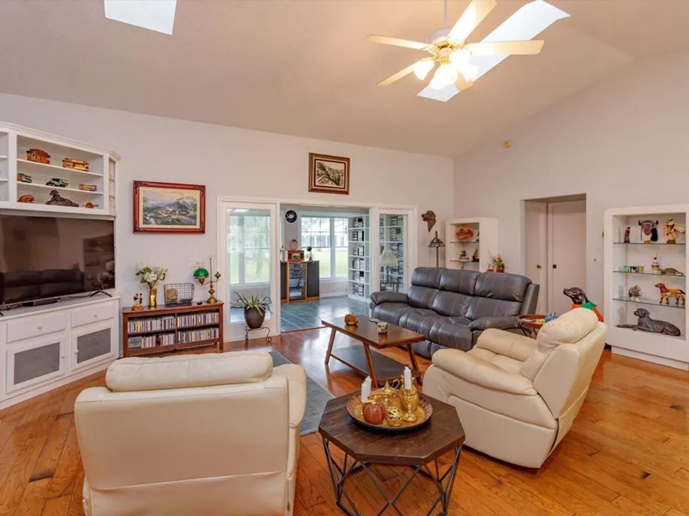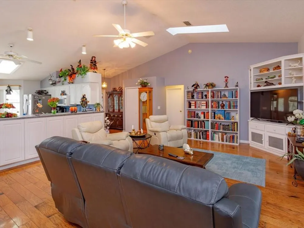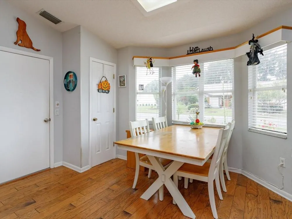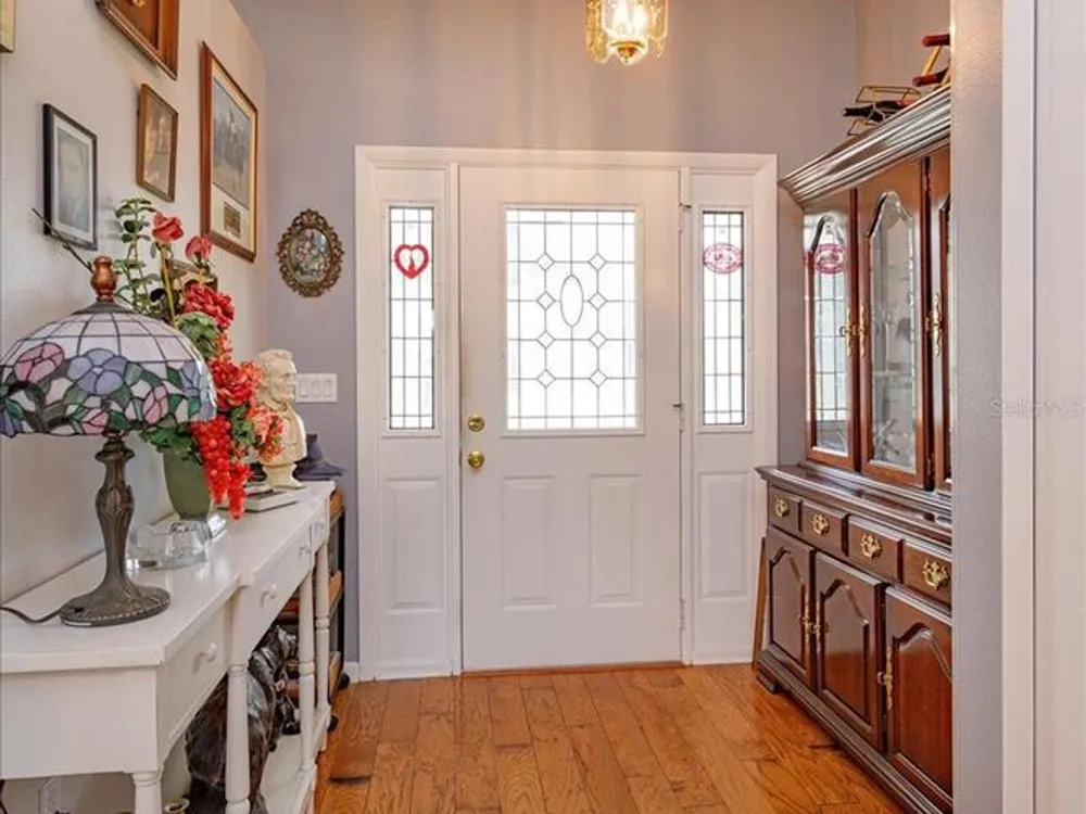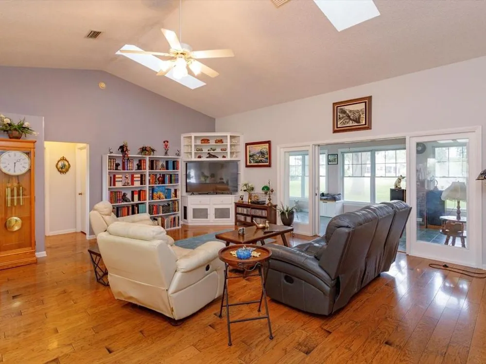 Extremely Well Maintained Lake Highlands 55+ Community 3 bedroom, 2 bath home - don't miss this one!!! Beautifully landscaped Front Yard leads you to the Screened Front Door Entryway and large Foyer with Coat Closet. This open floor plan has Great Room with Cathedral Ceiling, Skylights and built-in Corner Cabinet that opens to well laid out Eat In Kitchen with room for a table and chairs by the Bay Window, Pantry, Double Oven with extra Cabinetry and more Wood Cabinets under the Breakfast Bar. Super UPGRADED distressed HICKORY SOLID WOOD FLOORING throughout the home except for tile in baths and Florida Room. Florida Room has double pane, tinted windows with calming view of trees and open patio for grilling out. The Primary Bedroom has Ensuite Bath with Garden Tub and Large walk in Shower, solid surface sink and dressing/makeup area plus Walk-In Closet. On the opposite side of home is 2 Bedrooms with full wall closets, Bath with Tub/Shower Combo plus hall Linen Closet. Don't miss the very convenient "home office" with the Built-in Desk and Cabinetry - perfect private area for Computer work and Paperwork storage in hallway to Primary Bedroom plus another Linen Closet!! ROOF replaced in 2022 and most Appliances in Kitchen recently replaced. Garage and Driveway have been professionally finished. This community is Gated and has Clubhouse with a large room called the Arena that includes Billiard/Ping Pong area, Library/Meeting/Card Room,4 Indoor Pickle Ball Courts, Kitchen available for events witha large list of clubs, activities and events. There is a Fitness Center, Indoor (Heated) and Outdoor POOLS, 6 Tennis Courts, 4 Bocce Ball Courts, 8 Shuffleboard Courts, 7 Horseshoe pits, a Softball field with Concession Stand, 2 Nature Trails, Golf Driving Range, Craftsman/Woodworking Shop is optional with a reasonable $12 annually, , Free Secured Boat and RV storage area and lovely park area with picnic tables and grills. There are also 7 Lakes in the Community with some available for catch and release fishing. Call to set up Showing TODAY!!