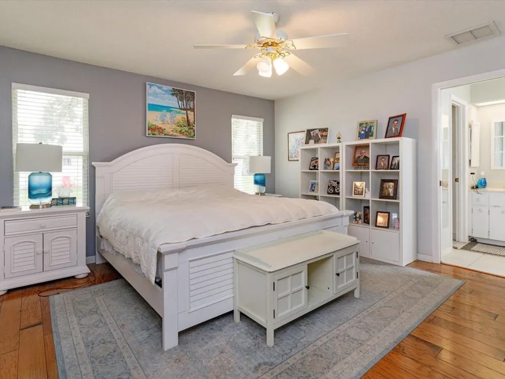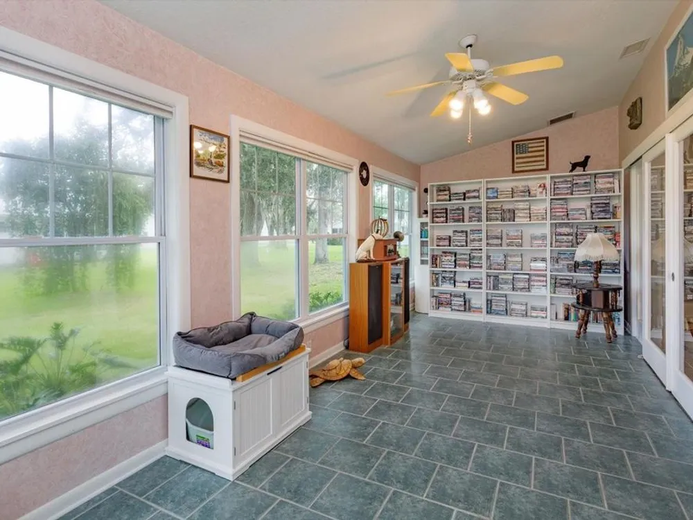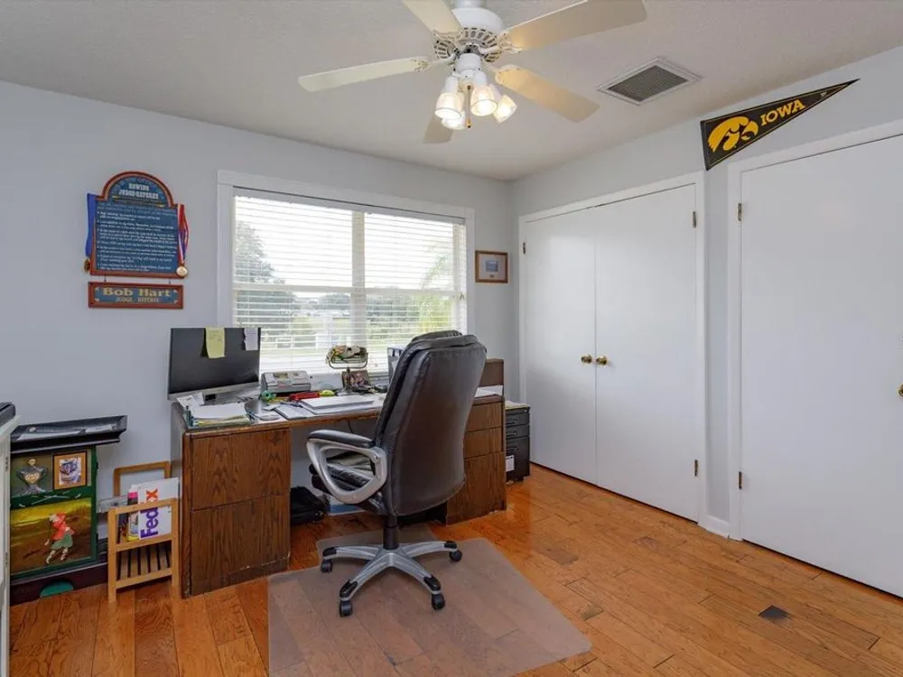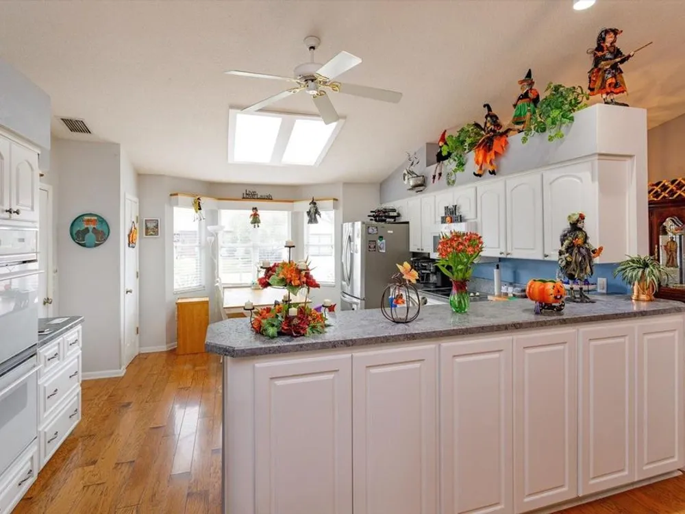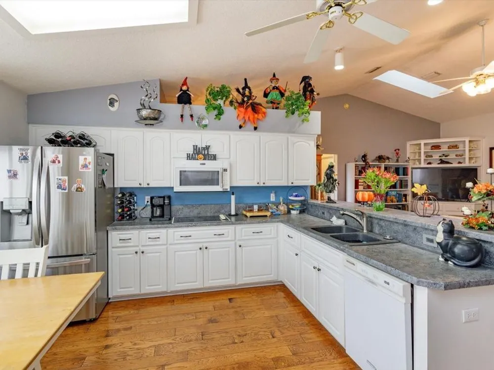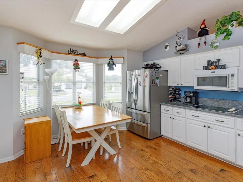 Extremely Well Maintained Lake Highlands 55+ Community 3 bedroom, 2 bath home - don't miss this one!!! Beautifully landscaped Front Yard leads you to the Screened Front Door Entryway and large Foyer with Coat Closet. This open floor plan has Great Room with Cathedral Ceiling, Skylights and built-in Corner Cabinet that opens to well laid out Eat In Kitchen with room for a table and chairs by the Bay Window, Pantry, Double Oven with extra Cabinetry and more Wood Cabinets under the Breakfast Bar. Super UPGRADED distressed HICKORY SOLID WOOD FLOORING throughout the home except for tile in baths and Florida Room. Florida Room has double pane, tinted windows with calming view of trees and open patio for grilling out. The Primary Bedroom has Ensuite Bath with Garden Tub and Large walk in Shower, solid surface sink and dressing/makeup area plus Walk-In Closet. On the opposite side of home is 2 Bedrooms with full wall closets, Bath with Tub/Shower Combo plus hall Linen Closet. Don't miss the very convenient "home office" with the Built-in Desk and Cabinetry - perfect private area for Computer work and Paperwork storage in hallway to Primary Bedroom plus another Linen Closet!! ROOF replaced in 2022 and most Appliances in Kitchen recently replaced. Garage and Driveway have been professionally finished. This community is Gated and has Clubhouse with a large room called the Arena that includes Billiard/Ping Pong area, Library/Meeting/Card Room,4 Indoor Pickle Ball Courts, Kitchen available for events witha large list of clubs, activities and events. There is a Fitness Center, Indoor (Heated) and Outdoor POOLS, 6 Tennis Courts, 4 Bocce Ball Courts, 8 Shuffleboard Courts, 7 Horseshoe pits, a Softball field with Concession Stand, 2 Nature Trails, Golf Driving Range, Craftsman/Woodworking Shop is optional with a reasonable $12 annually, , Free Secured Boat and RV storage area and lovely park area with picnic tables and grills. There are also 7 Lakes in the Community with some available for catch and release fishing. Call to set up Showing TODAY!!
