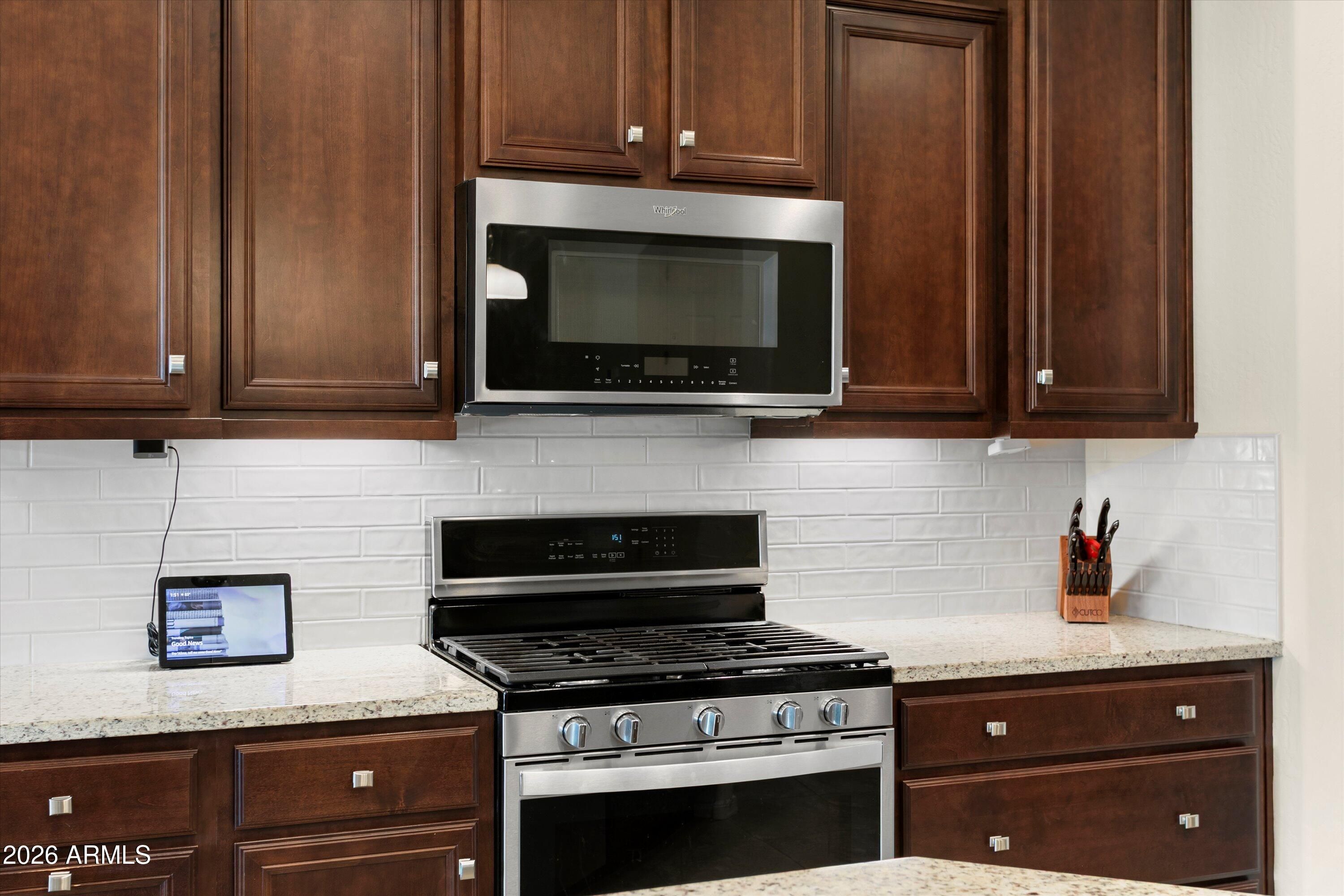 - Dryer, Washer, Water Softener Owned, Reverse Osmosis, Refrigerator, Built-in Microwave, Dishwasher, Disposal, Gas Range