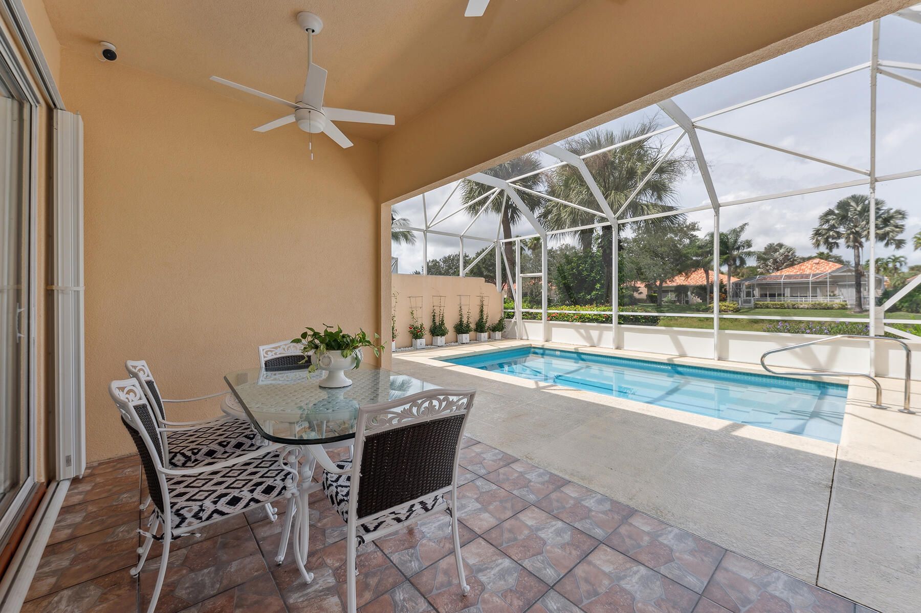 Unique & Special are Just TWO Words that describe this Residence! Unique, because it has been Professionally Upgraded & Reimagined with the Finest Materials & Finishes! Special, because it can still be Personalized by One Lucky Buyer! This 3 Bedroom 2 Bath Glenwood Model, has a Totally, Newly Screened Enclosed Swimming Pool with a Pet Baseboard, New Doors, a New Pool Pump & Pool Filter, on a Wide Lakefront Lot with Panoramic Views! The Adventure begins with a Tropically Planted Wide, Newly Landscaped & Soded, Lush Lawn, Leading to an Inviting Screened Entry, with a Decorative Faux Stone Floor & a New Fixture, Opening to the a Sun Drenched Large Foyer with a Ceiling Fan & a Large Window, Overlooking the Side Yard, that leads to the Spacious Great Room with a Ceramic Tile Floor (All of the
