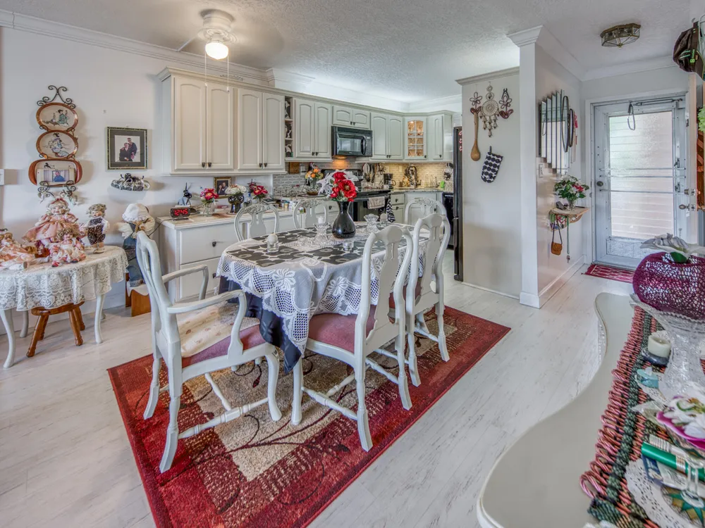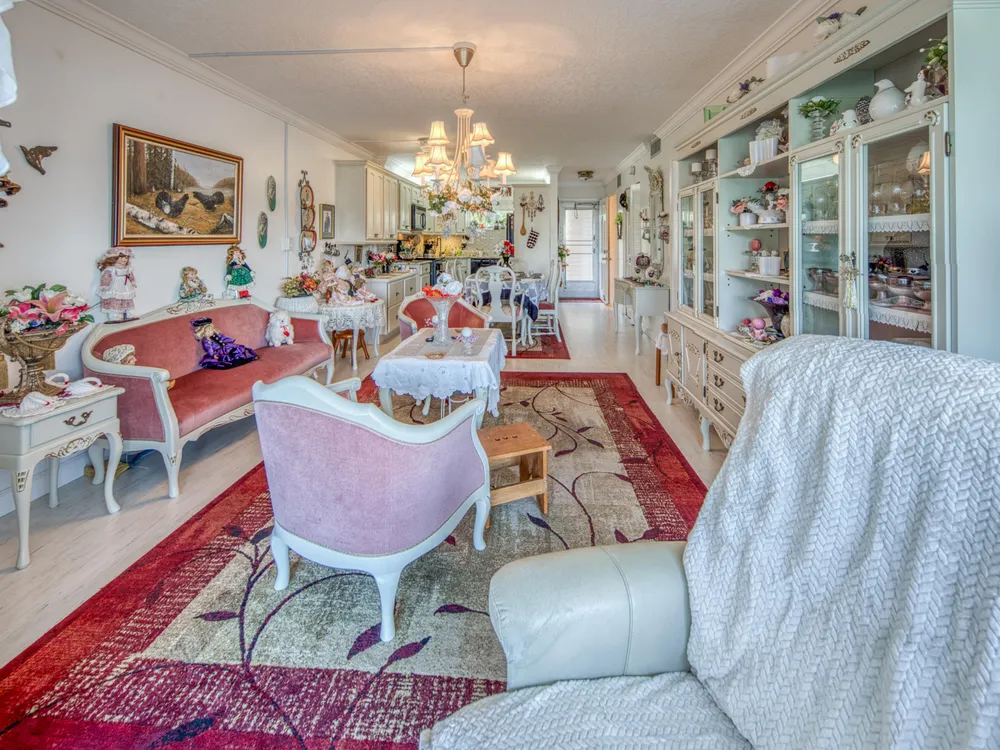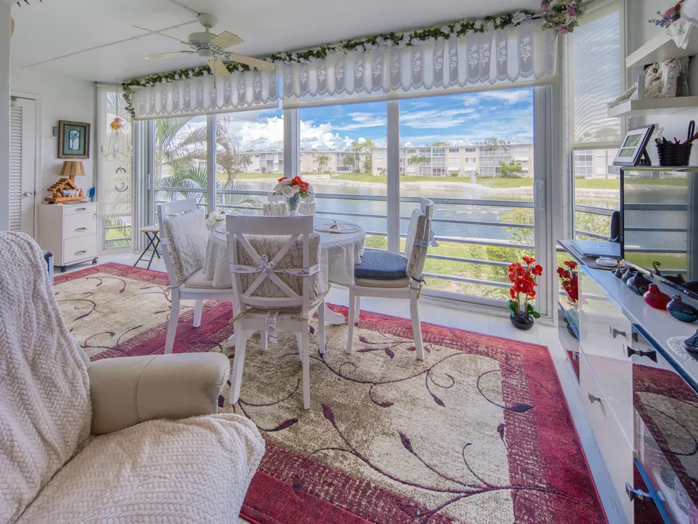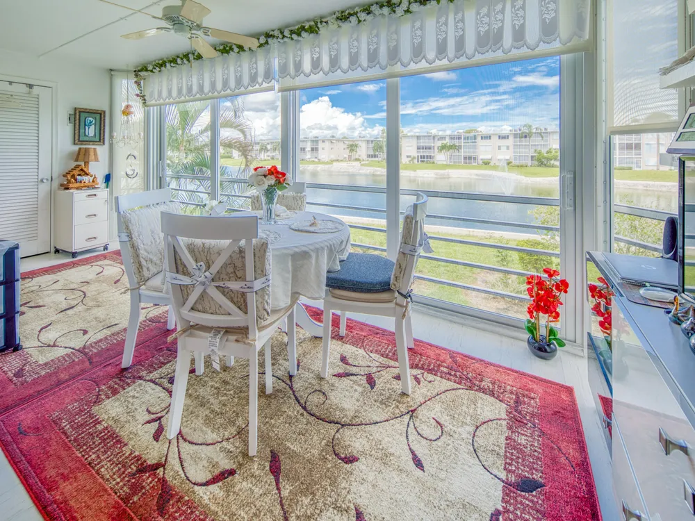 You've come home! This 55+ Lake Clarke Gardens 1 bedroom, 1,5 bathroom condo is the perfect home for the aesthetic lover. The living room opens to a bright patio with opening impact windows. Beautiful natural white kitchen with a granite counter tops opens to the cozy living room. Nice office nook in the bedroom. The laundry with brand new washing machines is located close to the apartment. Some of the furniture are for sale with the apartment. AC installed 2024. Water heater is about 6 months old. Almost new fridge. Very well kept apartment.