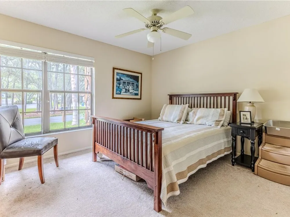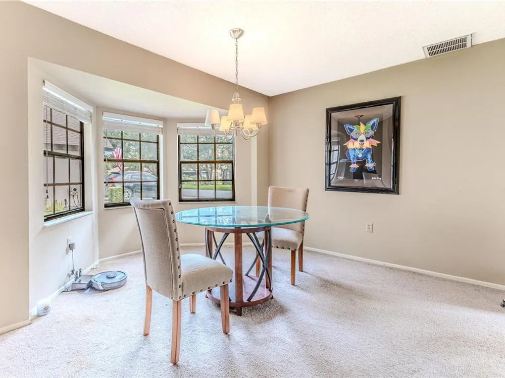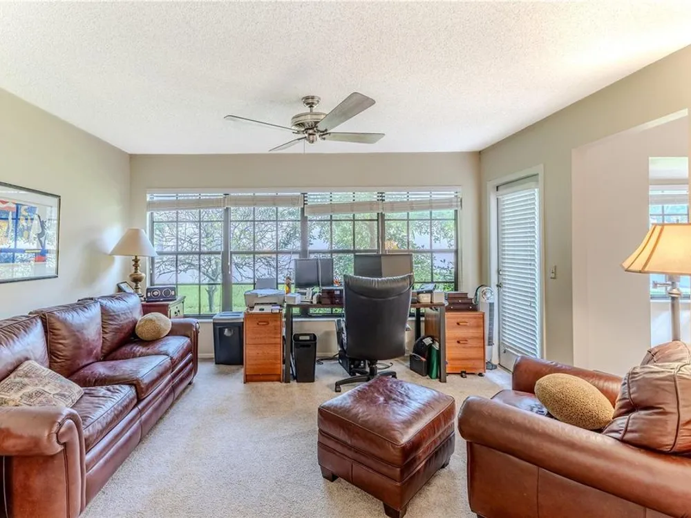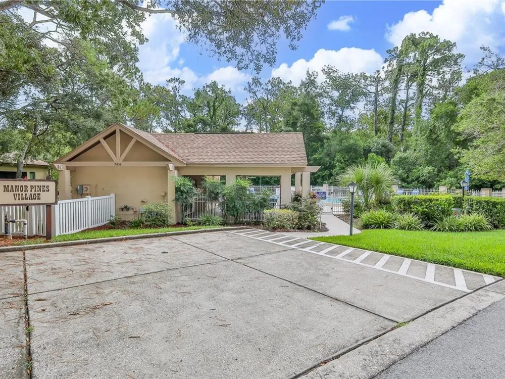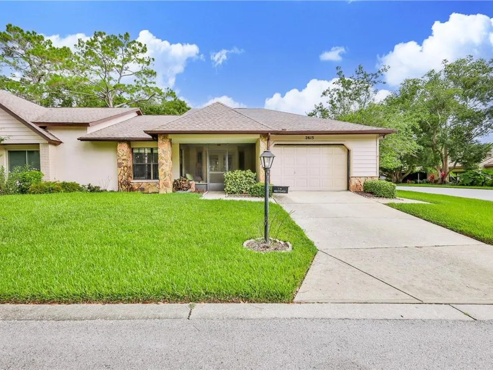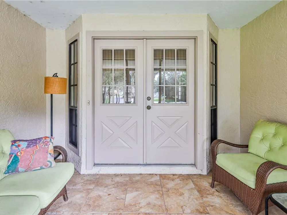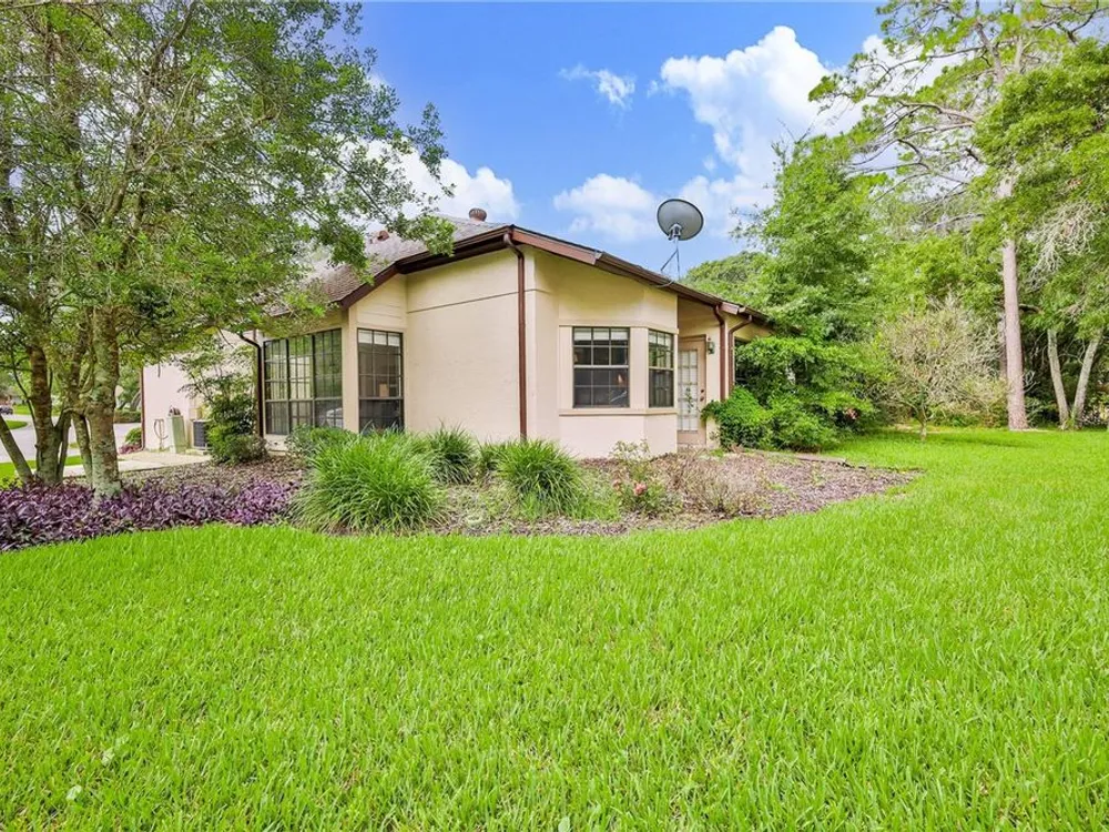 Charming End-Unit Villa in the Heart of Timber Pines! Welcome to this 2-bedroom, 2-bathroom, 1 car garage, maintenance-free villa ideally located on a corner lot in the beautiful 55+ community of Timber Pines. With 1,351 sq ft of comfortable living space, this well-designed home offers both functionality and charm. Enjoy the screened front porch, perfect for morning coffee or evening breezes. The turnaround kitchen features granite countertops, a sunny breakfast nook, breakfast bar, and pantry. A formal dining room with pleasant views makes entertaining a delight, while the carpeted living room and dedicated office area provide flexibility and comfort. Carpet replaced with NEW vinyl flooring in dining, living and office 9/3/25. The primary suite includes a walk-in closet and a private bath with walk-in shower. A second bedroom, guest bath, and hall closet offer additional space for visitors and storage. Laundry is located in the garage, keeping the interior quiet and clutter-free. As part of the Maintained Village, exterior upkeep—including irrigation, lawn mowing, front hedge trimming, fertilization and exterior painting—is taken care of for you.This pet friendly village allows two dogs. Roof 2007 | HVAC 2020. While the home is maintained, it offers the perfect canvas for your updates and personal touches. Conveniently located near the village pool, this villa provides easy access to recreation without the maintenance hassle. Timber Pines is an award winning, guard-gated, 55+, deed-restricted community offering a resort-style lifestyle: three 18-hole golf courses, a 9-hole pitch & putt, tennis, 12 pickleball courts, two community swimming pools, country club restaurant and bar, fitness center, billiards, performing arts, and over 100 social clubs and activities. Don't miss the chance to enjoy active, carefree living—schedule your showing today