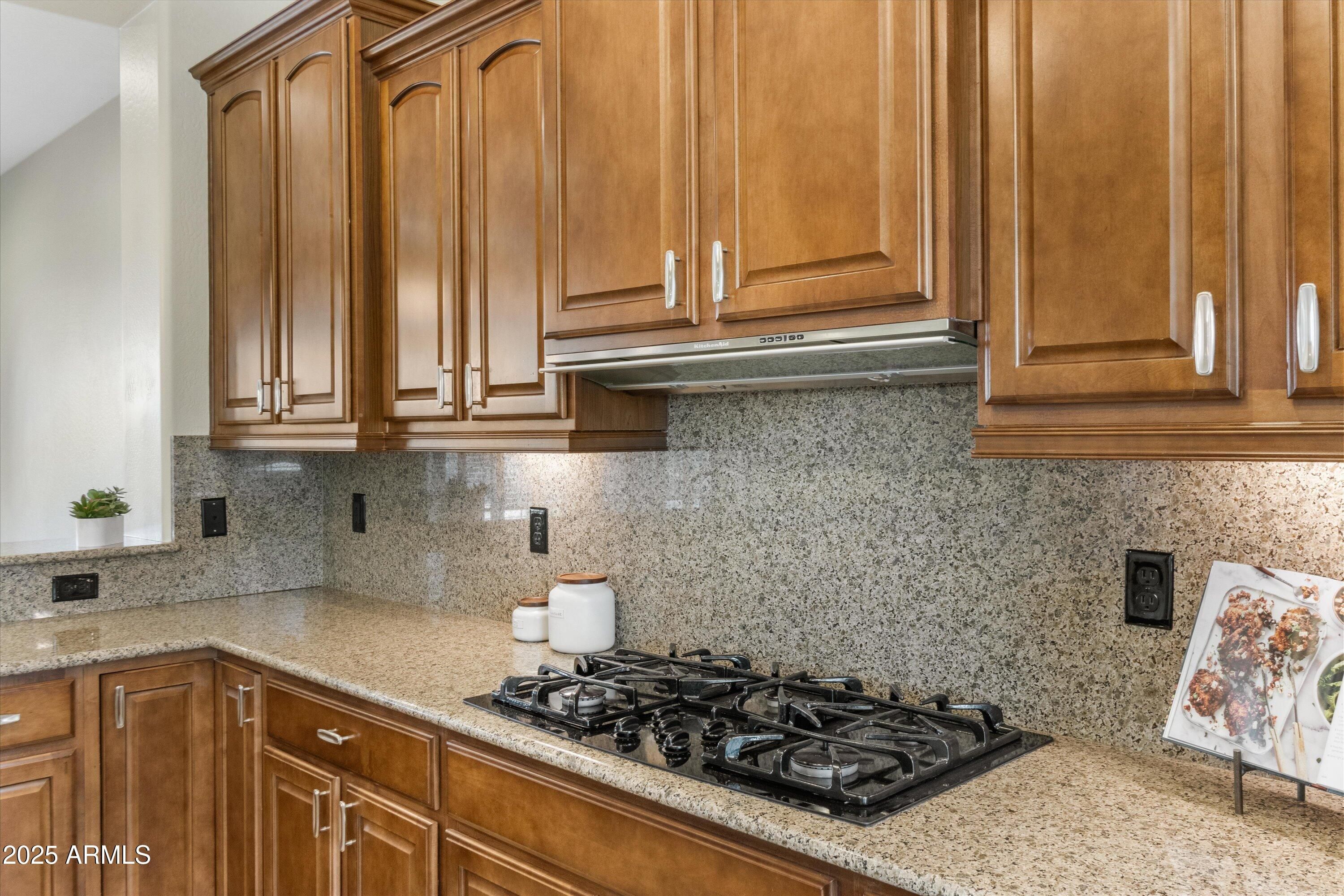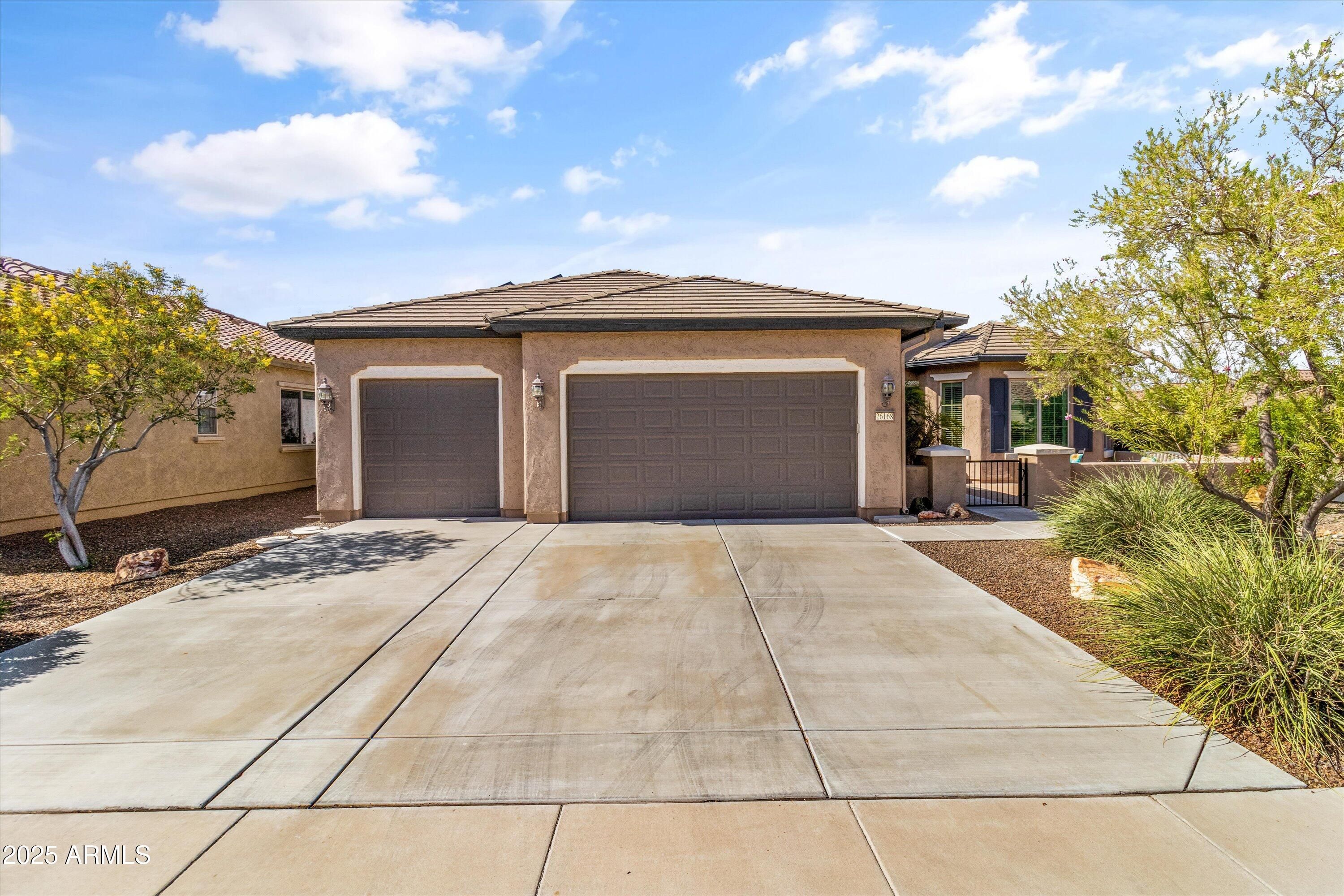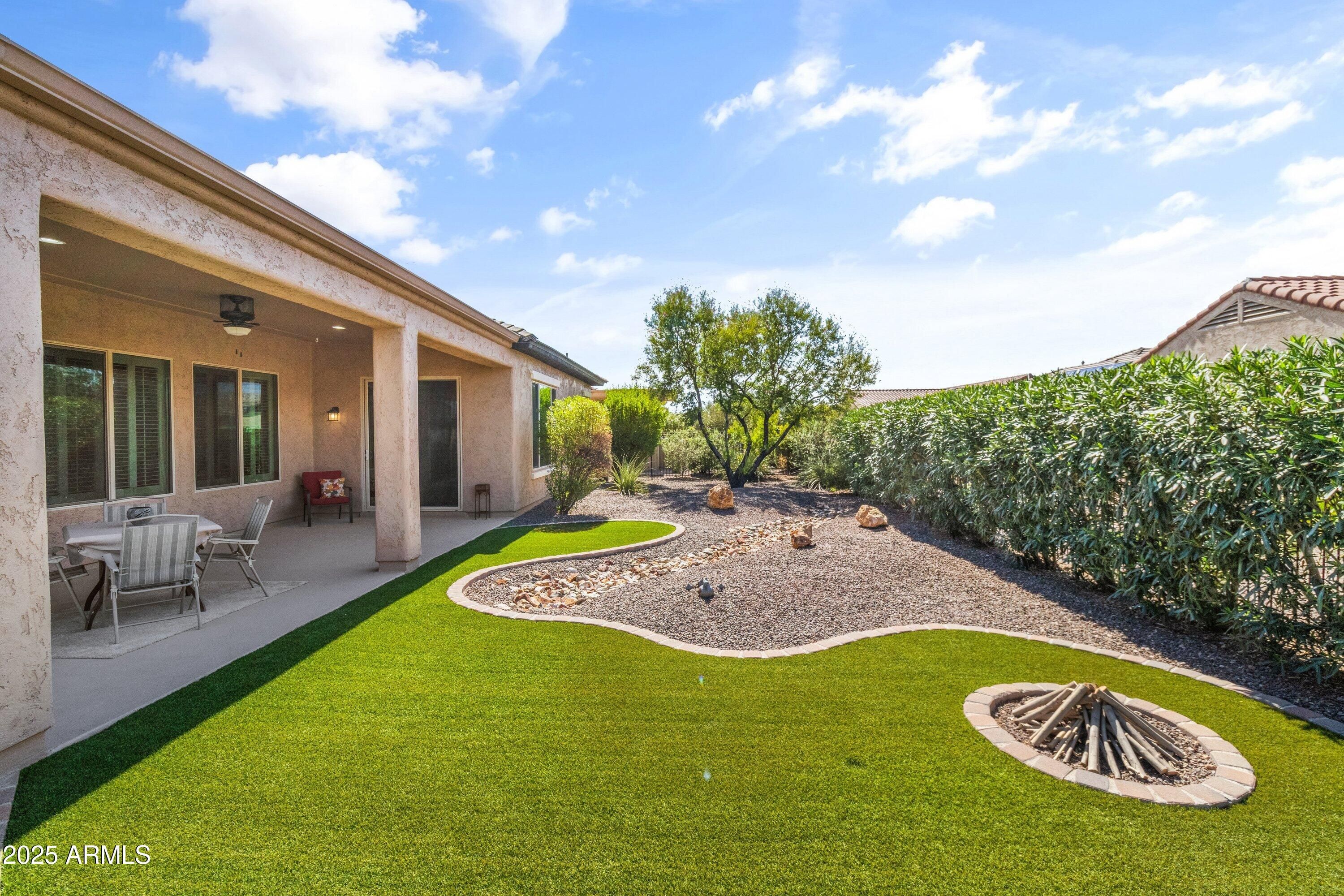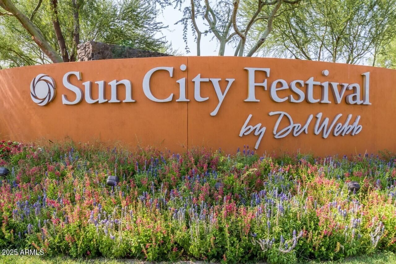 Experience resort-style living in the premier community of Sun City Festival, where the White Tank Mountains provide a breathtaking backdrop. This highly upgraded Fiesta model sits on a north/south facing, fenced corner lot with turf, mature landscaping, and a 3 car garage all enhanced by pre-paid solar for exceptionally low APS bills. A private paver courtyard with a fountain welcomes you inside through an impressive 10 ft entry door. The open concept floor plan showcases 10 ft ceilings, diagonally laid tile flooring, and shutters for timeless elegance.The gourmet kitchen is an entertainer's dream, featuring granite counters, a large island with deep storage, staggered cabinetry with pull-out shelves, stainless steel appliances, pendant lighting, and a 5-burner gas cooktop. The bedroom suite is a serene escape with a spa like bath with dual vanities, a extra large tiled walk-in shower, spacious walk-in closet, and private patio access.Thoughtful design continues with a split guest suite with walk-in closet, an extra-large laundry room with sink and dual walls of cabinetry, and a garage with epoxy floors, built-in cabinets, and utility sink. Additional upgrades include instant hot water, water softener, and filtered water system. Outdoor living shines with a covered patio overlooking the landscaped yard and a front courtyard perfect for morning coffee or evening relaxation. Living in Sun City Festival means access to world-class amenities: golf, tennis, pickleball, fitness centers, resort pools, social clubs, dining, and endless activitiesall just minutes from your front door. This home combines luxury, efficiency, and lifestyle ready for you to enjoy!