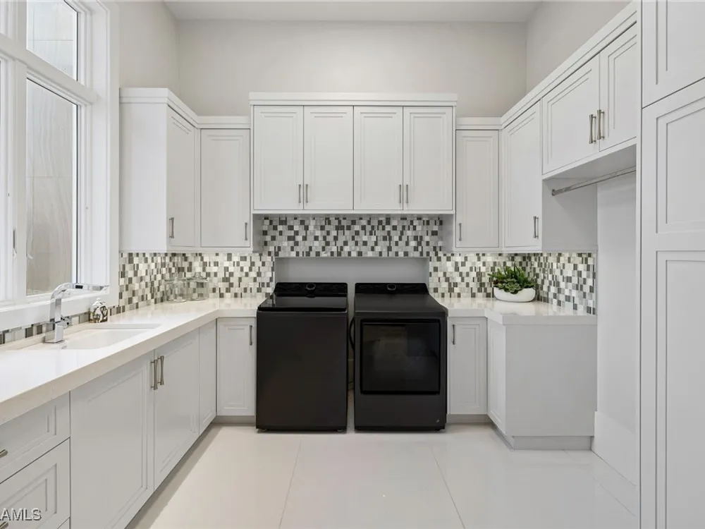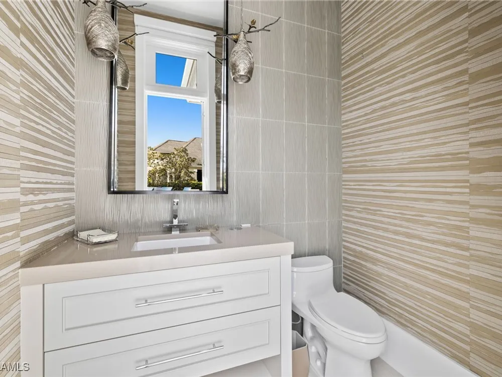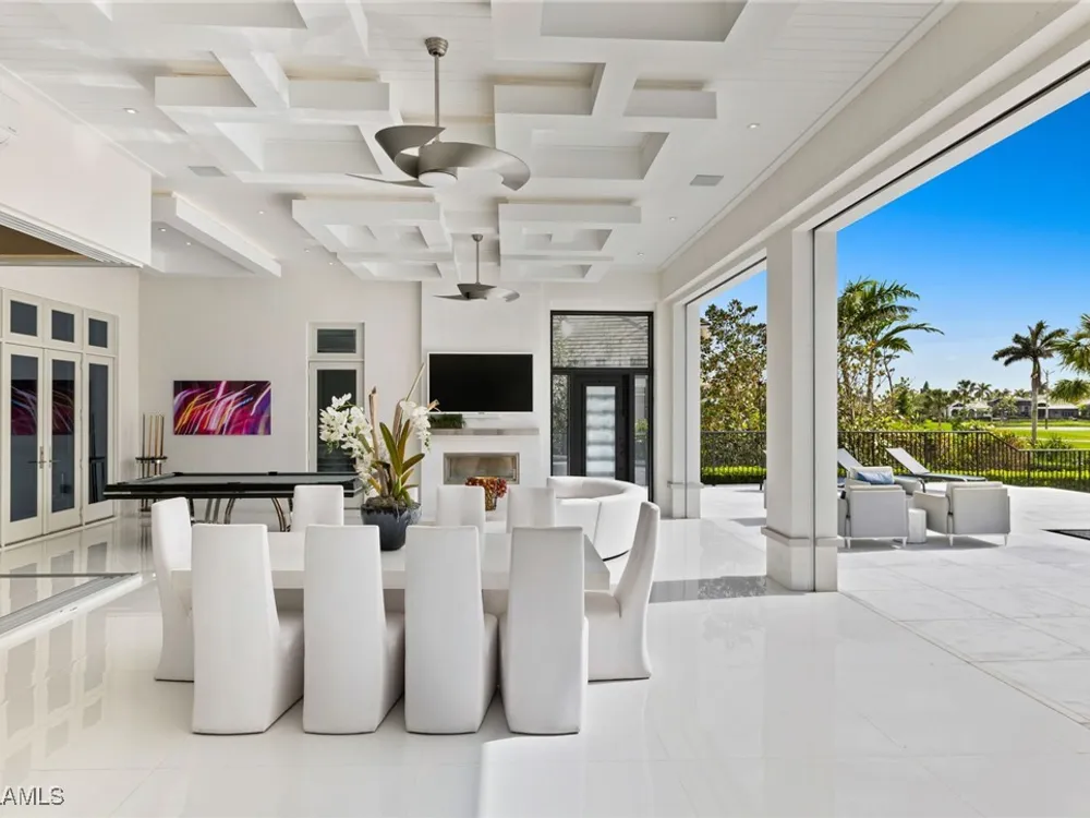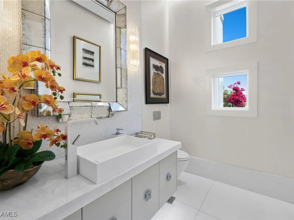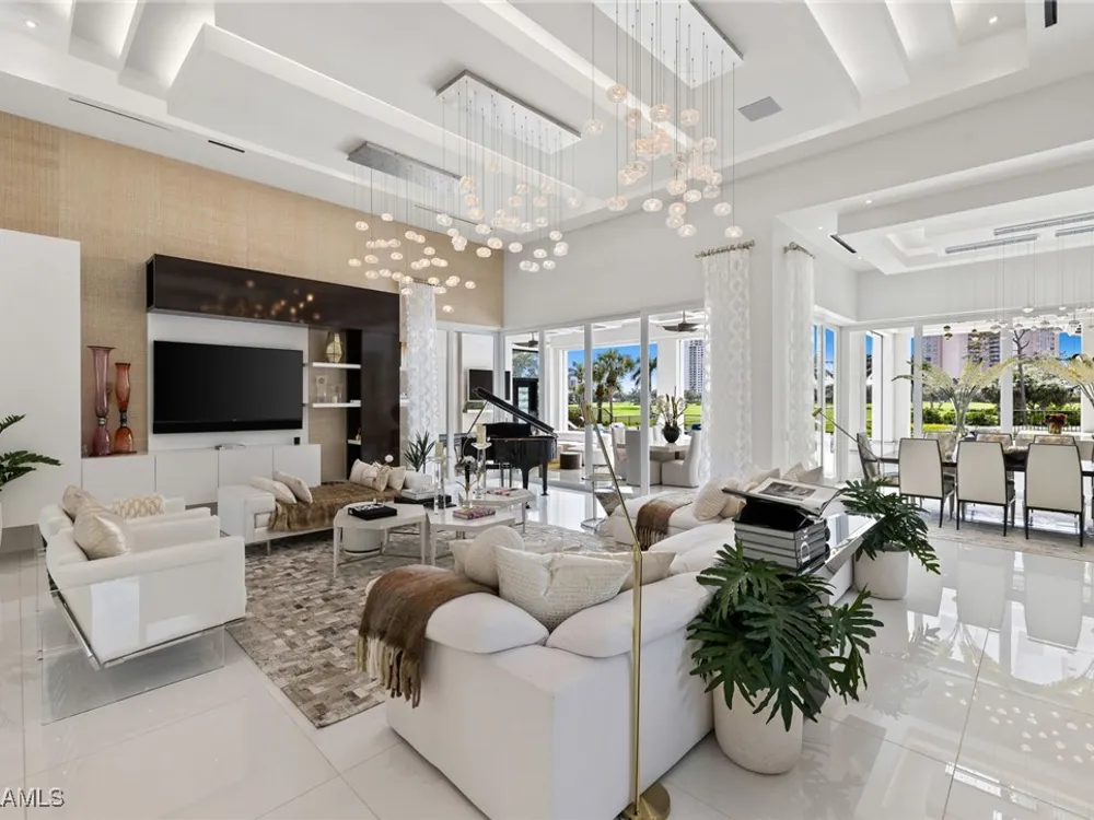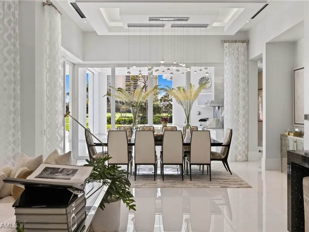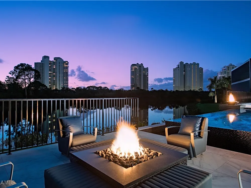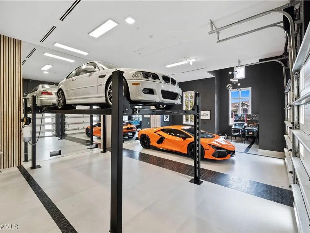 Luxury and sophistication are combined with world-class craftsmanship to deliver this award-winning STOCK custom home in the exclusive Bay Woods at Bonita Bay. Thoughtfully designed by New Architectura in collaboration with Wilfredo Emanuel Designs and Clive Daniel, this Cosmopolitan Chic home was the winner of the prestigious Sand Dollar Award. Situated on a premium lot with unobstructed lake and golf course views, this home boasts 4 bedrooms, 6 bathrooms, bonus room, and an oversized 4-car garage with room for 5 plus cars. As you enter through the grand contemporary steel doors, you are immediately struck by the dramatic geometric ceiling details, white glass tile flooring, suspended lighting, illuminated quartz wine bar and glass-enclosed wine room. The Cosmopolitan theme is carried into the kitchen, featuring glass-faced cabinetry, quartz and semi-precious stone islands with waterfall, Wolf and SubZero built-in paneled appliances, Miele coffee machine, a walk-in pantry and more. The massive primary suite is nothing short of breathtaking. From its white oak flooring to the oversized seating area, dual walk-in closets, mirrored wall panels, textured wallpaper and built-in headboard with custom lighting. As you enter the primary bathroom, you will find two separate water closets, a free-standing tub, oversized shower with multiple heads, gorgeous tile and textured accent walls. Boasting more than 3,000SF of covered space, the outdoor area is a true focal point of the home and features countless upgrades such as electric shutters and screens, bug mist system, gas fireplace and separate fire pit area, massive outdoor kitchen with waterfall quartz counters, geometric ceiling details, white marble pavers, and pool bathroom. Enjoy the sunset views over the infinity edge gas-heated pool and spa. Continuing throughout the home, you will find that every guest bedroom is ensuite and features white oak flooring, walk-in custom closets and each has its own unique design cues such as custom draperies, wallpapers, ceiling and wall details. Showcased by a floor-to-ceiling glass entry, the opulent billiards/bonus room is sure to impress with its custom leather-padded wall and illuminated stone accents. The full-home Control4 smart system provides automated electric blinds throughout, smart lighting switches, indoor and outdoor built-in speakers, security system and more. Bonita Bay offers an array of outstanding amenities and optional memberships, from a private beach club to a full-service marina and multiple dining options. Experience premier golfing with five recently renovated Arthur Hills and Tom Fazio championship courses and three expansive practice facilities. Enjoy miles of scenic walking and biking trails, kayaking, canoeing, boat launch, state-of-the-art fitness center, an 18-court tennis and pickleball complex, numerous community parks and more. This home is truly one-of-a-kind and masterfully designed to impress even the most discerning of buyers.