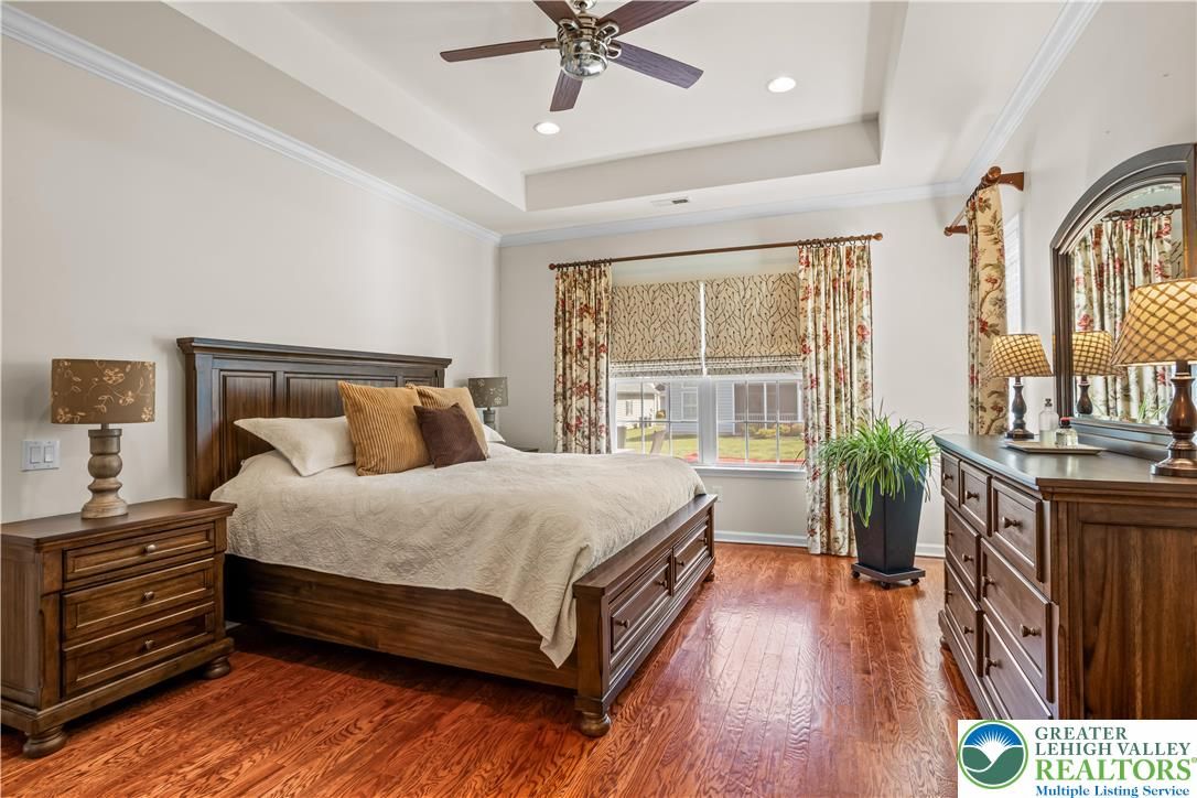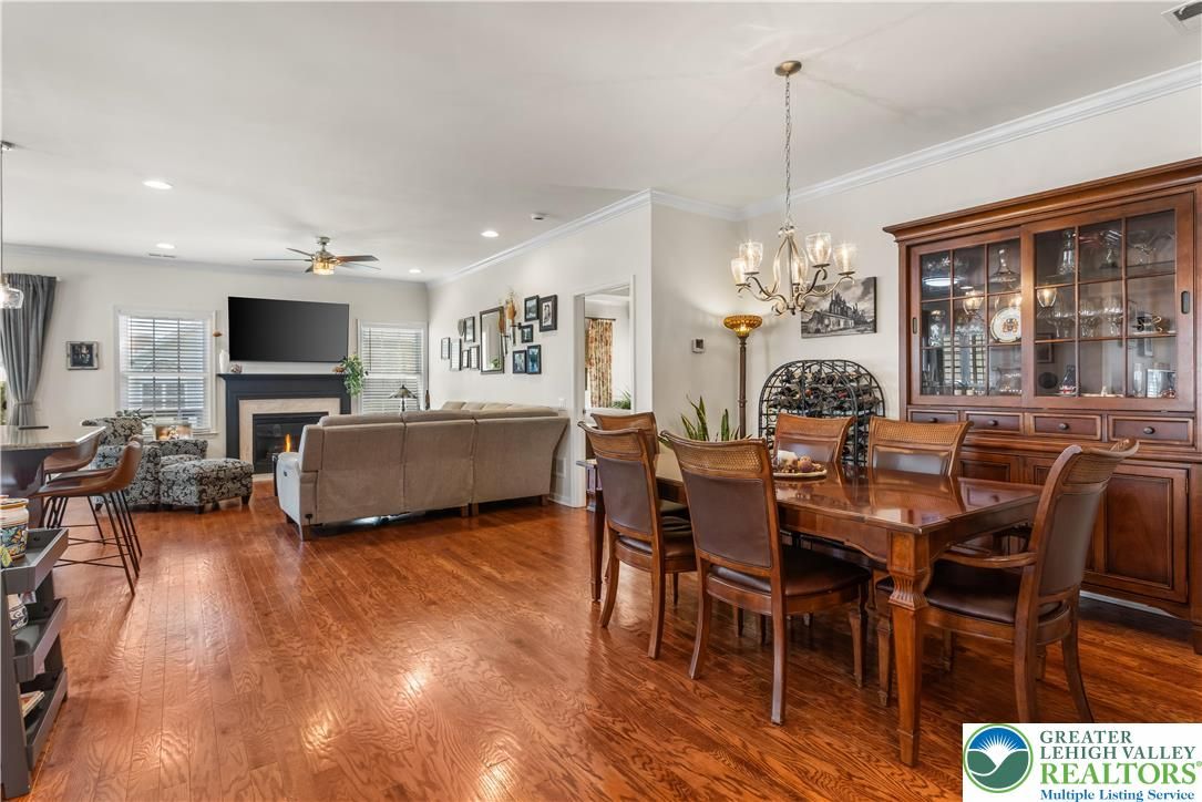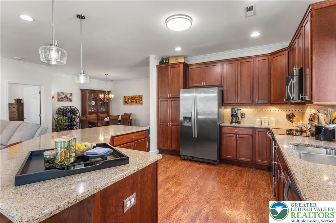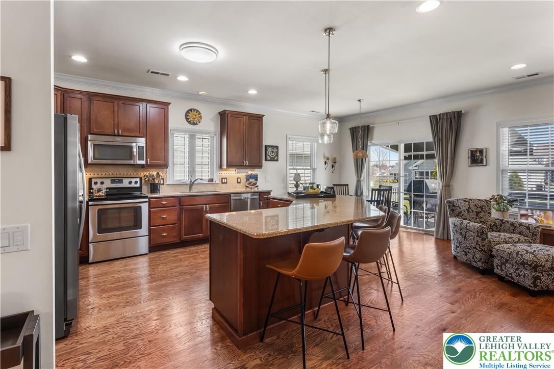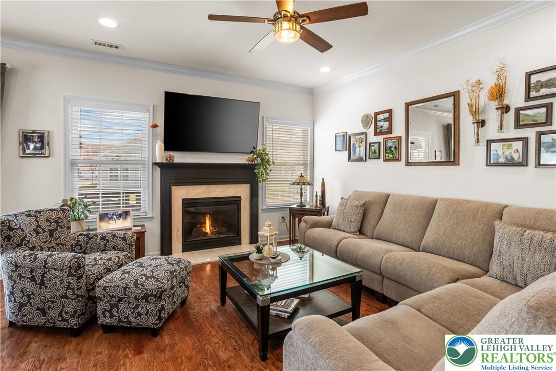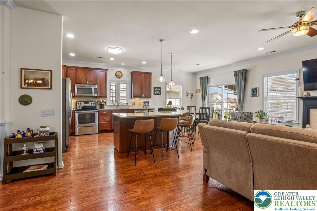 Welcome to 2618 Ambassador Drive, a meticulously maintained 2-bedroom, 2-bath home in the beautiful 55+ community of Traditions of America at Bridle Path. This is the kind of home where pride of ownership shows in every room. Hardwood floors run throughout the main living areas, and the open-concept layout connects the spacious kitchen, dining area, and bonus room in a way that just feels right for everyday living and entertaining alike. The kitchen offers plenty of cabinet space, granite counters, and a eat at island for extra seating. The primary suite includes a tray ceiling, walk-in closet, and a well-appointed en-suite bath. A second bedroom room gives you options for guests, a home office, or extra storage. Step out back to the oversized stamped concrete patio perfect for relaxing or entertaining outdoors. Residents may enjoy access to the community clubhouse with fitness center, bocce, tennis, pickleball, barroom, game room, and more. Close to routes 22/78/76, hospitals, shopping, and the restaurants and arts of downtown Bethlehem. You don’t want to wait to see this beauty!