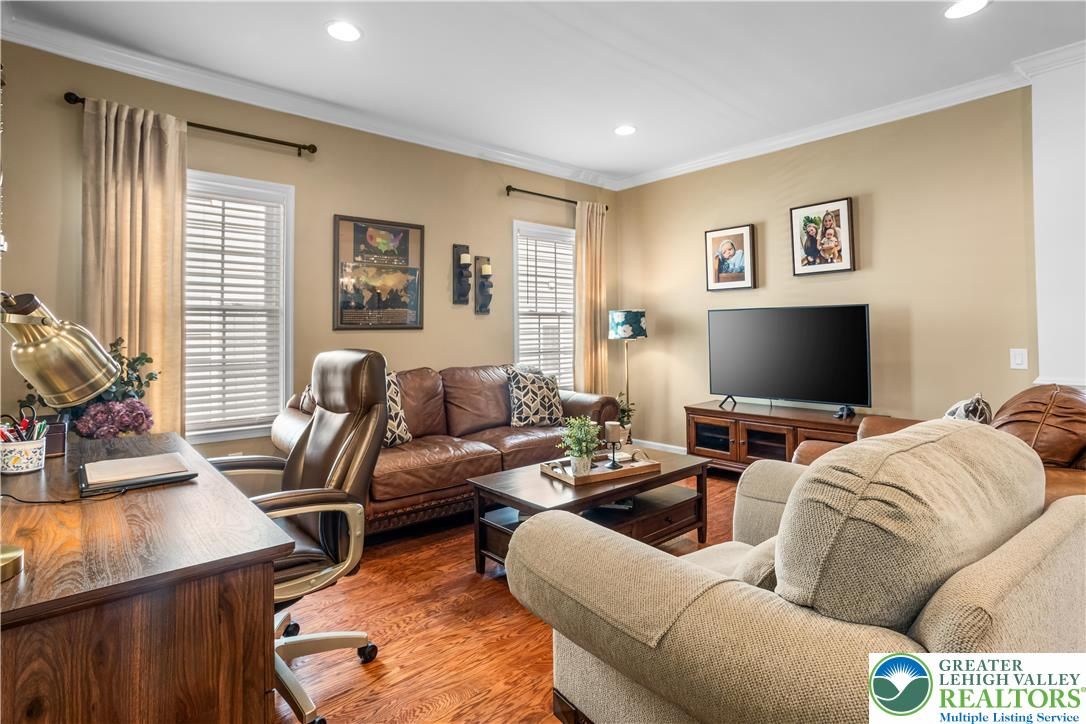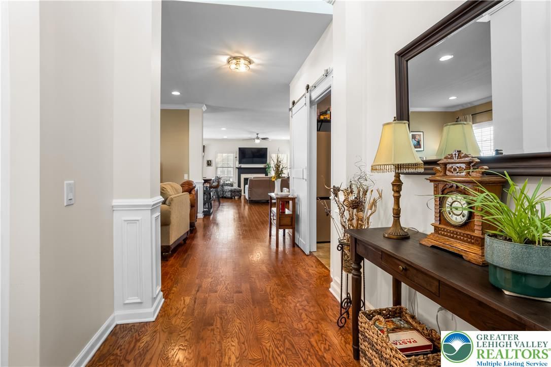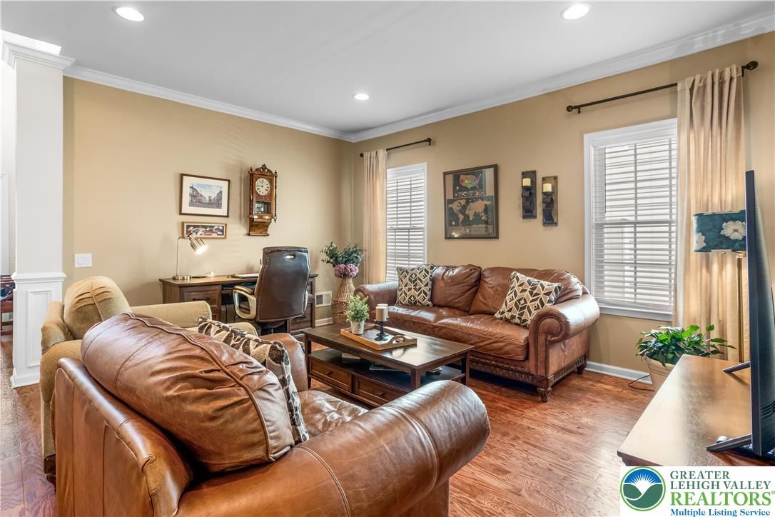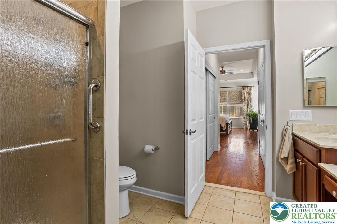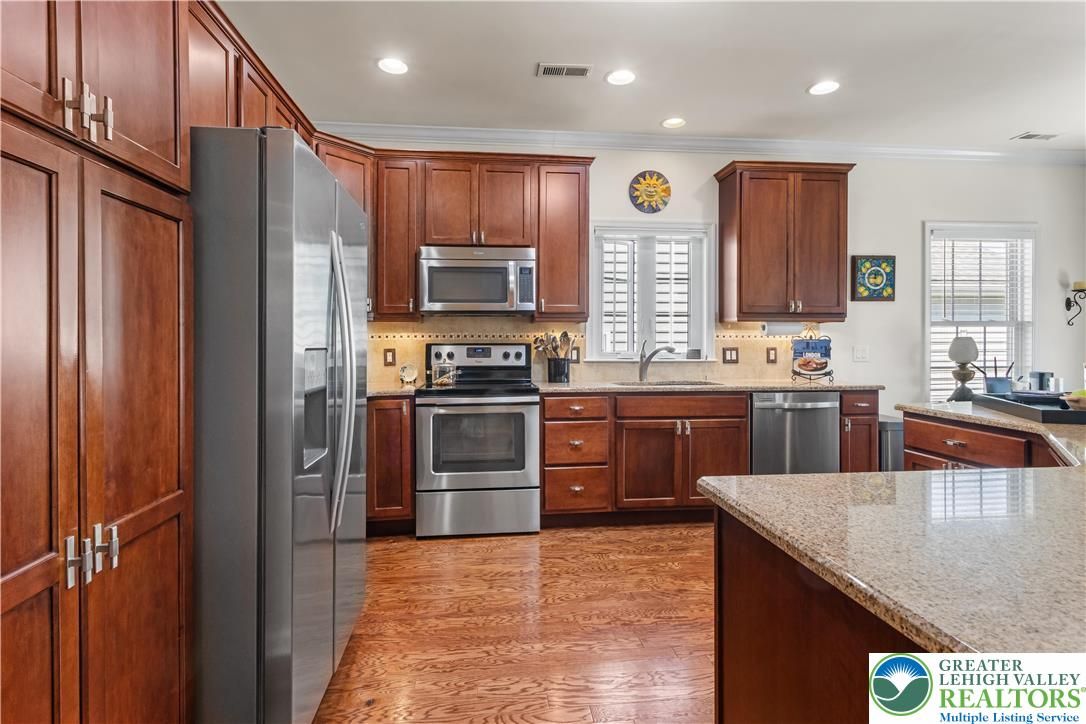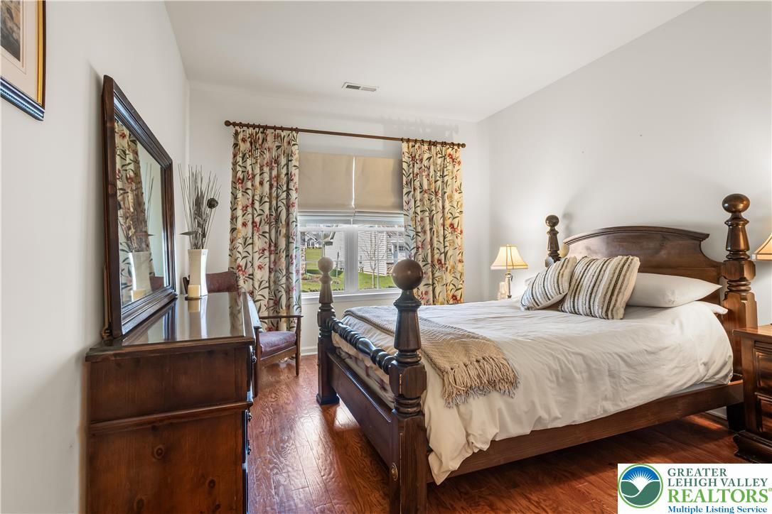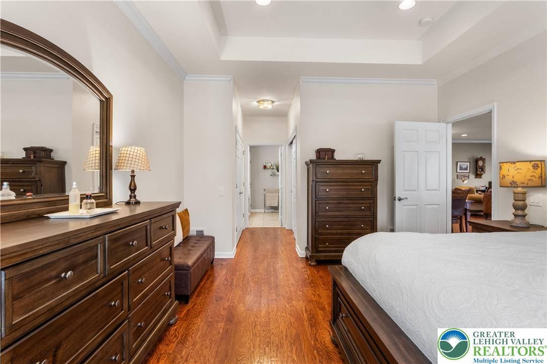 Welcome to 2618 Ambassador Drive, a meticulously maintained 2-bedroom, 2-bath home in the beautiful 55+ community of Traditions of America at Bridle Path. This is the kind of home where pride of ownership shows in every room. Hardwood floors run throughout the main living areas, and the open-concept layout connects the spacious kitchen, dining area, and bonus room in a way that just feels right for everyday living and entertaining alike. The kitchen offers plenty of cabinet space, granite counters, and a eat at island for extra seating. The primary suite includes a tray ceiling, walk-in closet, and a well-appointed en-suite bath. A second bedroom room gives you options for guests, a home office, or extra storage. Step out back to the oversized stamped concrete patio perfect for relaxing or entertaining outdoors. Residents may enjoy access to the community clubhouse with fitness center, bocce, tennis, pickleball, barroom, game room, and more. Close to routes 22/78/76, hospitals, shopping, and the restaurants and arts of downtown Bethlehem. You don’t want to wait to see this beauty!