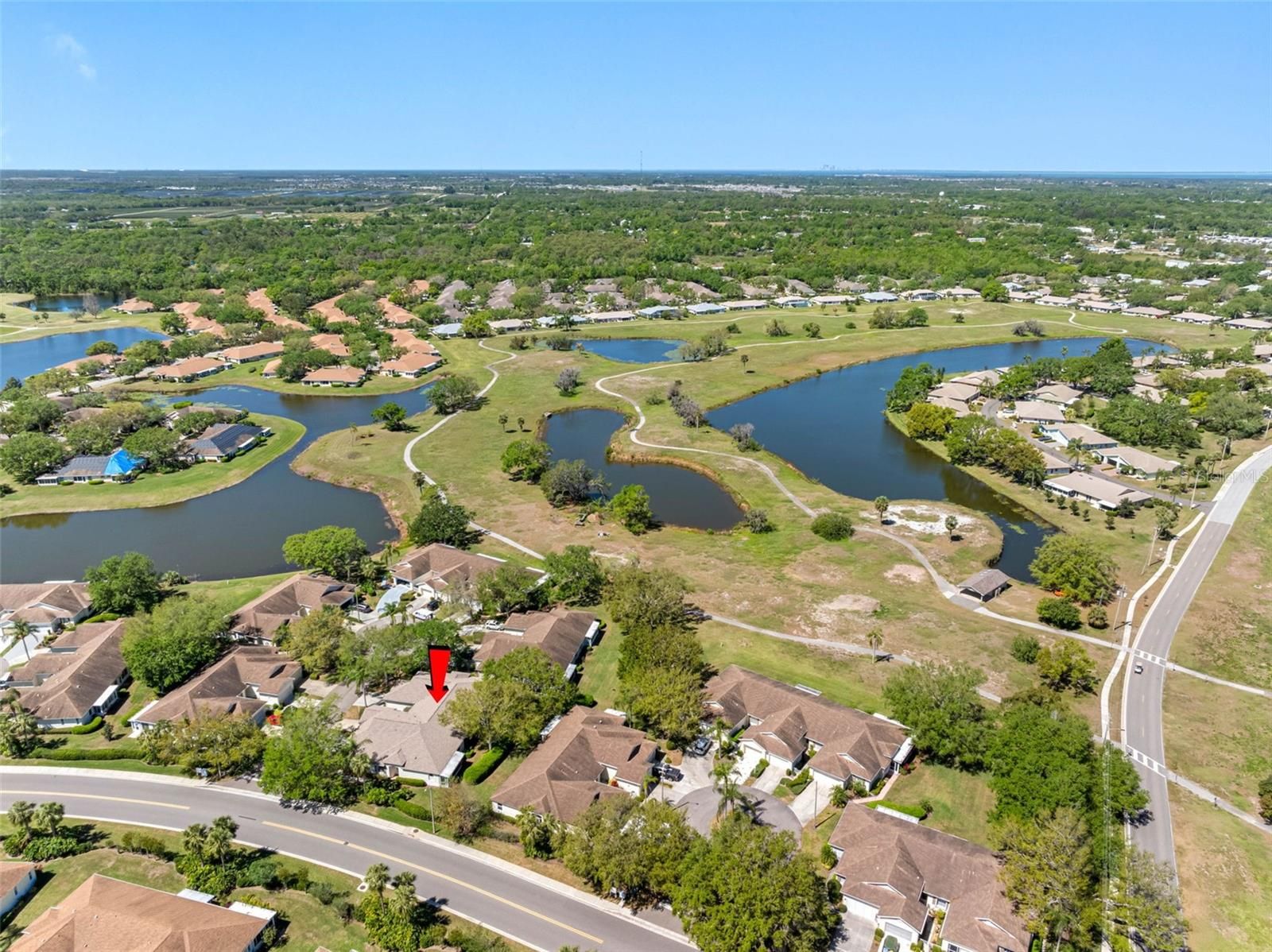 Come and enjoy the beauty and resort style living in this active adult community of Kings Point! Location, location, location! This Cape Code styled condominium is within easy walking distance to the South Clubhouse. Adorned with a gate enclosed courtyard the private entrance leads you to this quaint home. A welcoming foyer creates a full view of this open floor plan which offers a living room/dining room combination, an inviting kitchen, and the peaceful serenity of the screen enclosed lanai. This two bedroom, 1.5 bathroom condo is cozy and inviting. Located in a PET FRIENDLY area Nantucket V residents are allowed one pet, either a dog or a cat. A $250.00 pet deposit, along with a Pet Application need to be filed with your transfer application. This home boasts ceramic tile throughout with the exception of carpet in the guest bedroom. The kitchen is fully equipped with a closet pantry, all appliances and a solar tube for natural lighting. Exterior features include a 1.5 car garage, with a new garage door installed in November 2024, rolling hurricane shutters on the lanai and windows, CPVC piping, a nearly new electrical panel, a garage door screen, garage shelving and a water softener. This amazing community offers a wide range of activities to support just about every hobby, sport or entertainment venue you can imagine. With hundreds of clubs and groups, speakers, and an over 800 seat theater offering all types of shows and musical entertainment boredom is not an option. Gorgeous indoor and outdoor pools, pickleball courts, tennis courts, shuffleboard, cornhole, lawn bowling and so many more outdoor activities await you. With two restaurants, a golf course, bus trips and so much more, this community is a great place to call home!