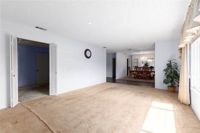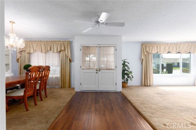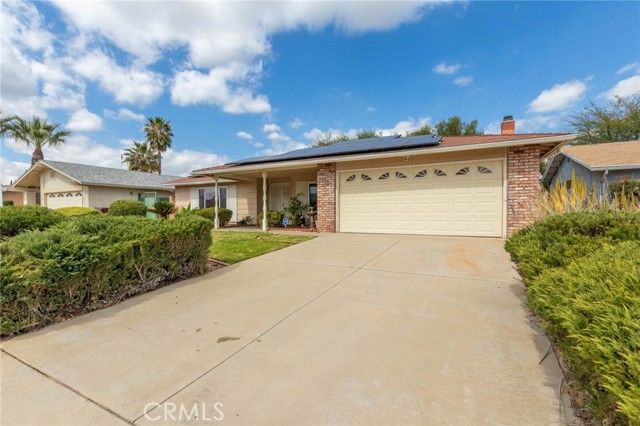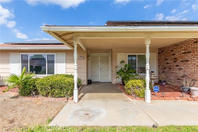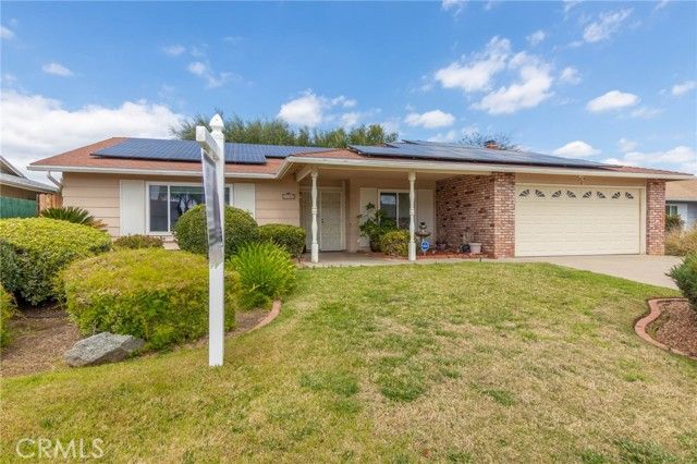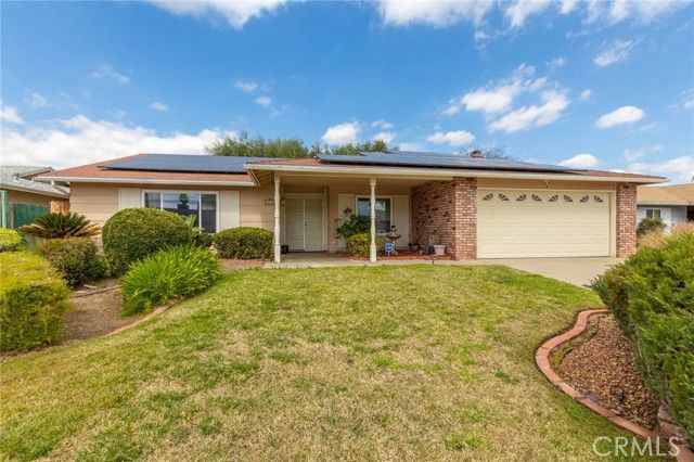 Welcome home to 26182 Crestone, a beautifully maintained residence located in the highly sought-after 55+ community of Sun City. This spacious Presley 39 model offers one of the largest and most desirable floorplans in the neighborhood and sits on a well-manicured lot with beautifully landscaped front and backyard spaces—a rare opportunity to own a private estate-style property in this vibrant community. Step outside and enjoy the huge shaded backyard, complete with mature trees and a covered patio, creating the perfect setting for relaxing, entertaining, or enjoying peaceful California evenings. Inside, the home features a comfortable blend of hardwood flooring and carpet, creating a warm and inviting atmosphere. Each of the three bedrooms is generously sized, offering large closets and abundant natural light. The primary bathroom includes a deep walk-in soaking tub, while the additional bathroom is conveniently equipped with a separate shower. The updated kitchen is a true highlight, featuring new cabinetry and newer stainless-steel appliances, and opens to a spacious family room anchored by a charming rustic brick fireplace, making it an ideal gathering space for family and friends. The two-car garage offers plenty of additional room for a workbench, storage, hobby area, or workshop, providing flexibility for your lifestyle needs. Residents enjoy membership in the Sun City Civic Association, which provides an incredible array of amenities including an indoor tournament shuffleboard arena, tournament horseshoe pits, fitness center, two pools, spa, lawn bowling, and a wide variety of clubs and social activities. This vibrant community offers the perfect setting to enjoy an active and engaging 55+ lifestyle. Don’t miss your chance to own this spacious home in one of the area’s most welcoming active-adult communities—the perfect place to enjoy your golden years.