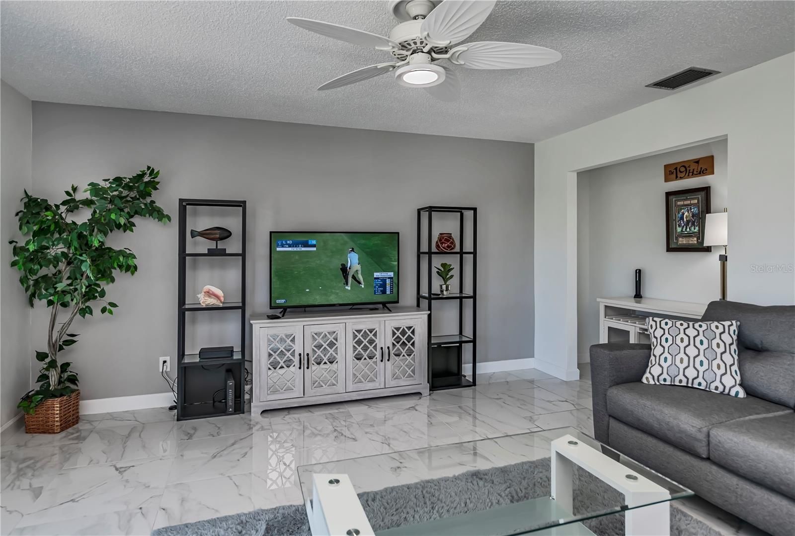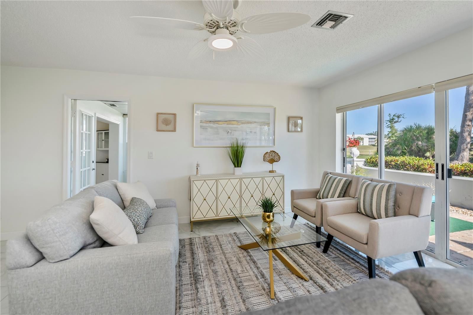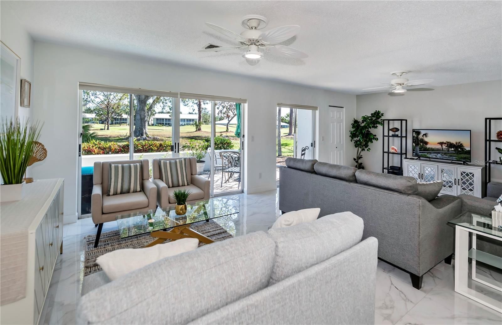 YOUR DREAM HOME is now here and can be yours! FULLY TURN KEY! This exquisite Villa home has been completely remodeled and comes fully furnished and ready to move in. All it needs is you! The Villa features two bedrooms, of which one is a second (guest) bedroom with a large closet and view of the back Lanai The primary bedroom features a king bed set, en-suite bathroom with 2 separate sink areas, a large shower, and beautiful tile flooring and a large walk-in closet. The newly remodeled spacious kitchen features, beautiful new Shaker style soft close cabinets, new granite counter tops. Both bathrooms in the Villa have the same new matching granite counter tops and soft close Shaker style cabinets. There are new light fixtures and ceiling fans throughout the home. Unique to this home is a beautiful sun room just off the kitchen area with privacy blinds. Great for plants or make it an office. The outside includes two patios, of which the patio off both bedrooms is private and perfect place to enjoy your morning coffee. The back patio has a view of the 5th fairway and 6th hole on the Bobcat Golf Course. Just off the private patio is a spacious laundry room which includes a washer, dryer and sink. with new cabinet. It is also great for storage of bicycles, gardening tools or your golf clubs. The Villa has a brand new roof as of January 2024. Comes with a new hot water heater, and central heat and AC. Also included is your cable TV as part of the HOA fees. Just a short walk down the street, there is a heated pool with a clubhouse for the homeowners on Cerromar Way South street! The Plantation Golf And Country Club also offers a individual memberships (optional). Membership, if you choose, offers "Main Club House, large pool and hot tub, snack bar, exercise room, and bocce courts, tennis and pickleball courts. The main clubhouse features fine dining, lounge bar, beautiful views of the Golf Course while inside or outside. The Library can be reserved for your private parties as well. Optional Membership features two beautiful golf courses, "Bobcat" and "Panther". The Club hosts the LPGA qualifying rounds once a year. Realtor Owned. ALL HOA fees should be verified by Buyer or Buyers Agent.