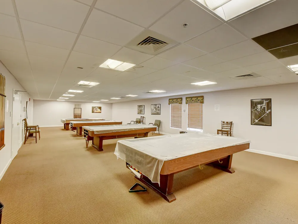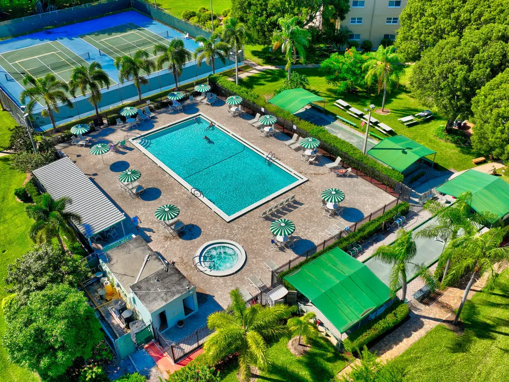 - Billiard Room, Clubhouse, Laundry, Elevator, Fitness Center, Game Room, Pickleball, Picnic Area, Pool, Shuffleboard, Tennis Court(s), Trash Chute