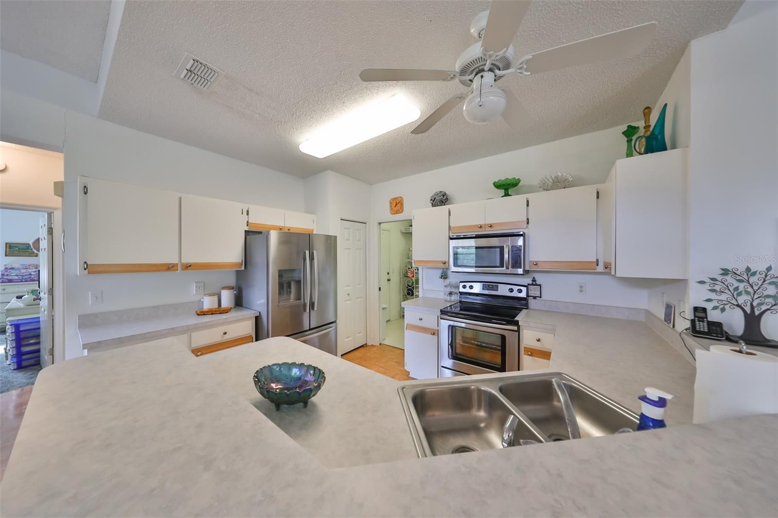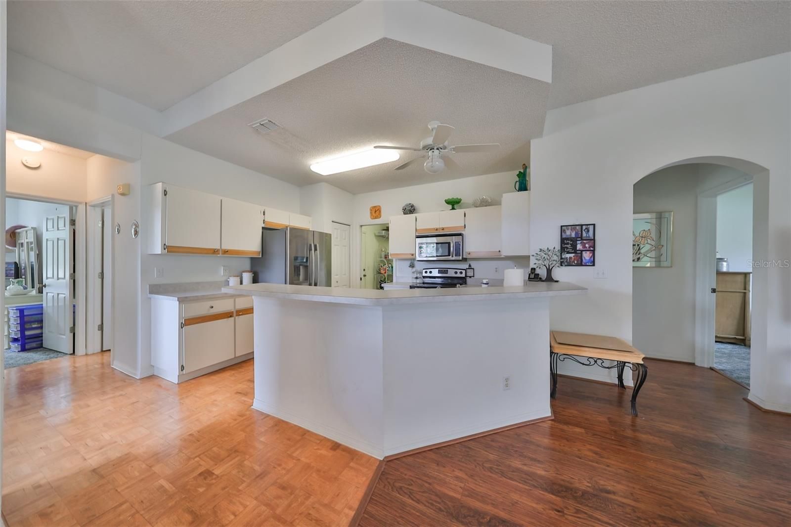 - Ceiling Fan(s), Living/Dining Room, Open Floorplan, Main Level Primary, Split Bedrooms, Thermostat, Walk-In Closet(s)