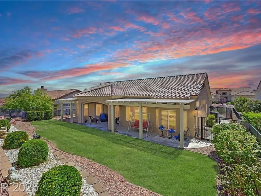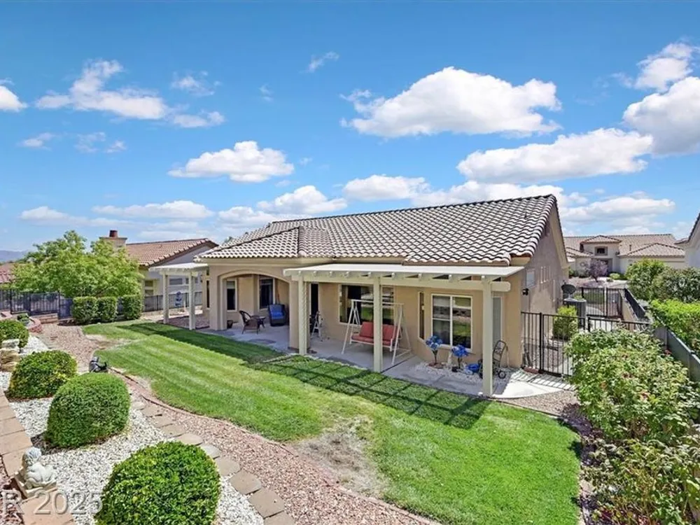 Turnkey Single Story!! Discover this pristine 2 bed, 2 bath home with 1,703 sq. ft. of open living space filled with natural light. Recently updated with a new air conditioning unit (2024), this move-in ready gem also features upgraded tile and luxury vinyl flooring throughout. The lush grass backyard is perfect for relaxation or entertaining. Nestled in the Sun City Summerlin community, residents enjoy access to multiple clubhouses, golf, parks, shopping, and dining—with quick freeway access nearby. A beautifully maintained home in one of Las Vegas’s most sought-after 55+ neighborhoods!