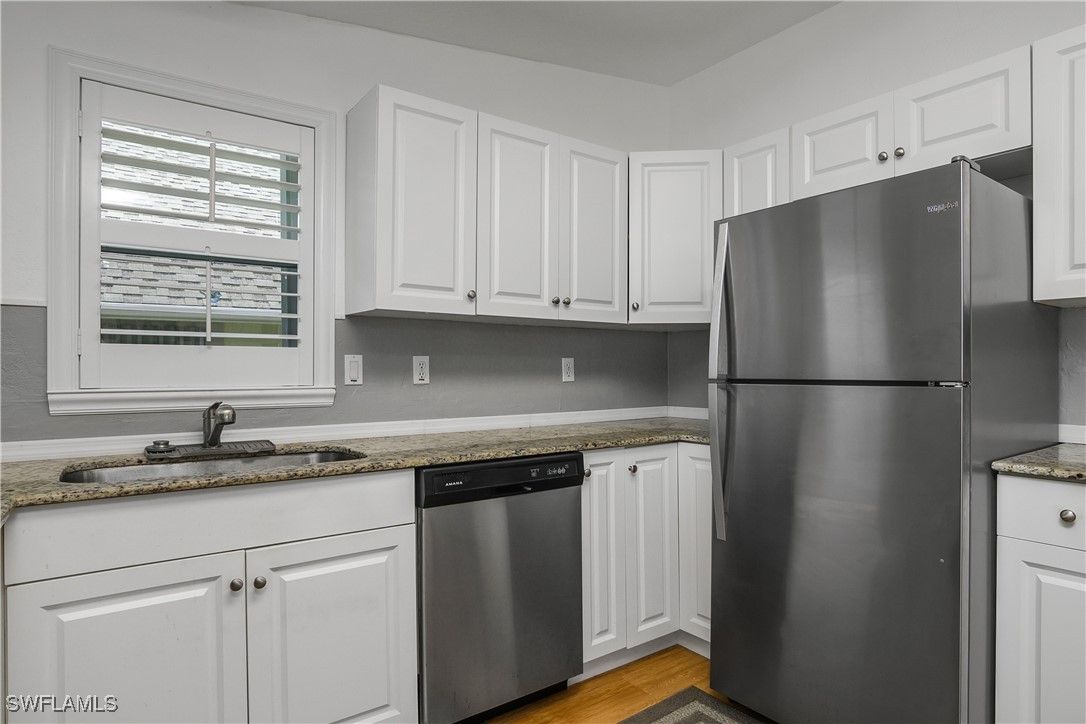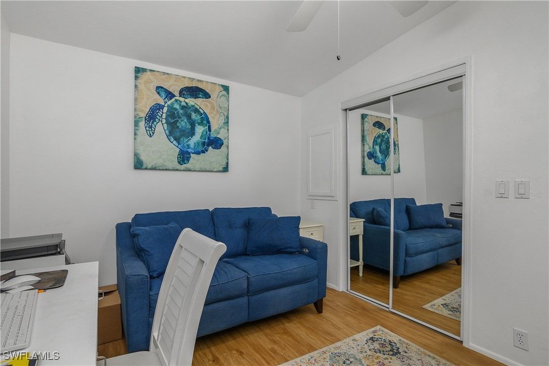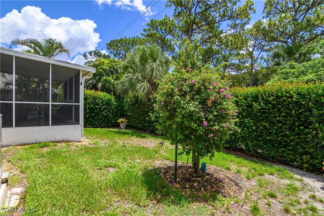 Tucked away in the desirable Carousel Cove community, this charming home offers the perfect blend of privacy, comfort, and value. A durable METAL ROOF, BRAND NEW AC, impact sliders, and accordion storm shutters provide peace of mind, while BRAND NEW FLOORING throughout gives the interior a fresh, modern feel. The kitchen has been thoughtfully updated with a NEW stove, microwave, sink, and faucet, and includes granite countertops, making it both stylish and functional. The open floor plan flows seamlessly into the screened lanai, finished with ceramic tile and surrounded by lush tropical greenery, creating a serene outdoor retreat. The private backyard, bordered by mature privacy hedges, feels like your own secluded haven. Cedar-lined closets add a unique touch of charm and natural freshness, while the garage features newly installed drywall and a dedicated workspace, ideal for hobbies or projects. There’s even wiring ready for your own generator. Residents of Carousel Cove enjoy a vibrant, amenity-rich lifestyle with low HOA fees. Community features include a resort-style pool and spa, clubhouse, fitness center, billiards room, bocce court, shuffleboard, tennis, pickleball, and access to a public 18-hole golf course with a pro shop, bar, and restaurant. Perfectly located just north of Bonita Beach Road, you’re only minutes from Downtown Bonita Springs, white-sand beaches, shopping, dining, and entertainment. Whether you’re looking for your primary home or a seasonal retreat, this home is an incredible opportunity to enjoy the best of Southwest Florida living at an AFFORDABLE price.