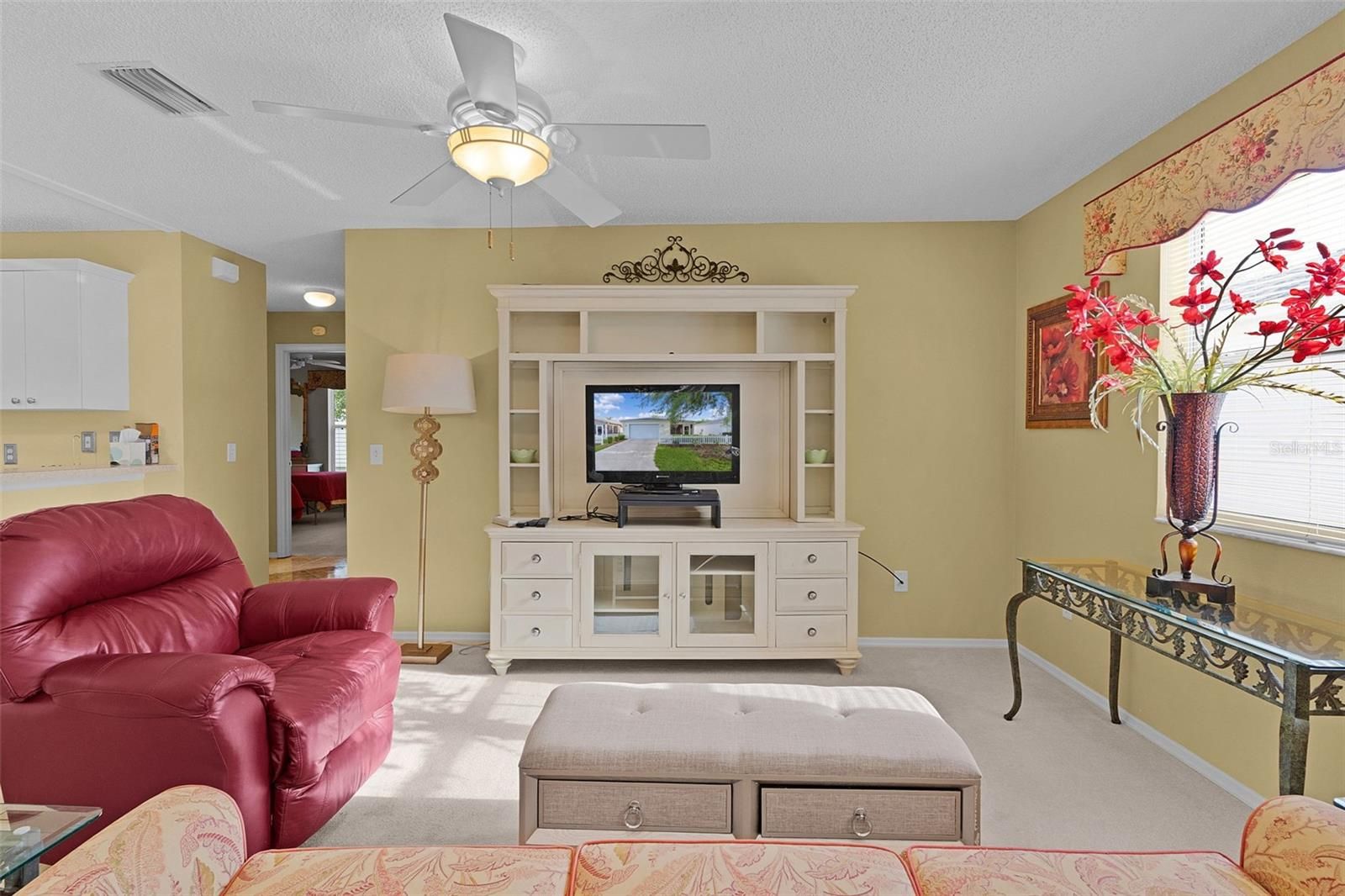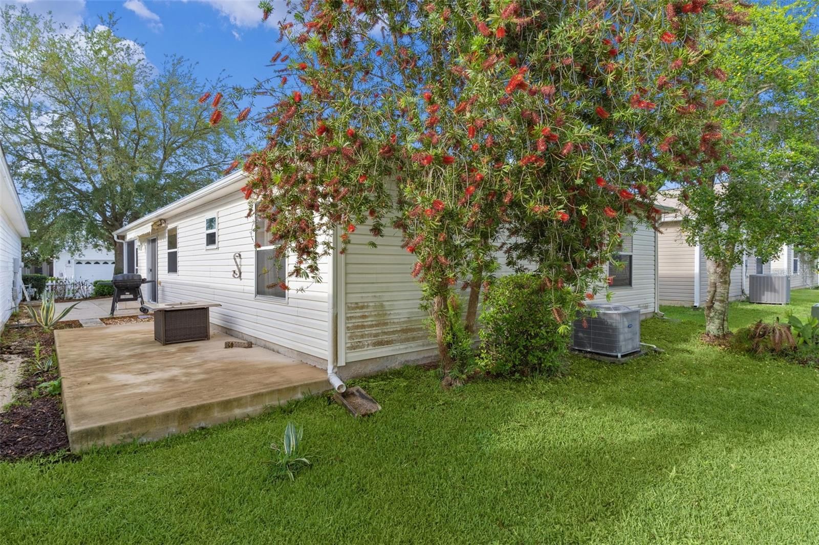~NO BOND~ ~2022 ROOF~ ~2021 HVAC~ ~2018 GAS HOT WATER HEATER~ Welcome to this charming COLONY patio villa in the Village of BELVEDERE, located in desirable HIALEAH VILLAS. There is mature landscaping as well as a comfortable and low-maintenance lifestyle in a prime location. Step inside to an inviting entryway with CERAMIC tile flooring that leads into the living room with carpet and a ceiling fan, creating a cozy space to relax. The adjacent dining area also features carpet, making it perfect for everyday living and entertaining. The kitchen offers CERAMIC tile flooring, laminate countertops, a GAS STOVE, and a SOLAR TUBE that brings in natural light, enhancing the space. The INSIDE LAUNDRY CLOSET is conveniently located in the kitchen and includes cabinetry for added storage. The primary suite features carpet, a ceiling fan, and a spacious WALK-IN CLOSET. The ensuite bath includes linoleum flooring, a walk-in shower, and laminate countertops. Guests will feel at home in the guest bedroom with carpet and a built-in closet, while the guest bath offers linoleum flooring, a tub and shower combination, and laminate countertops. Enjoy outdoor living in the ENCLOSED LANAI with sliders, perfect for year-round use. Just off the side, a patio with an AWNING provides additional space for relaxing or entertaining outdoors. This villa is a fantastic opportunity to enjoy easy Florida living in a super convenient location close to Glenview and Arnold Palmer Country Clubs plus Laurel Manor Rec Center. Being so close to the Southern Trace Shopping area provides plenty of, shopping including Sprouts, Costco, Walmart and dining like Bonefish, and Tap House Social. You are near Everthing.