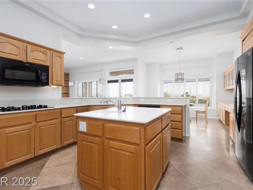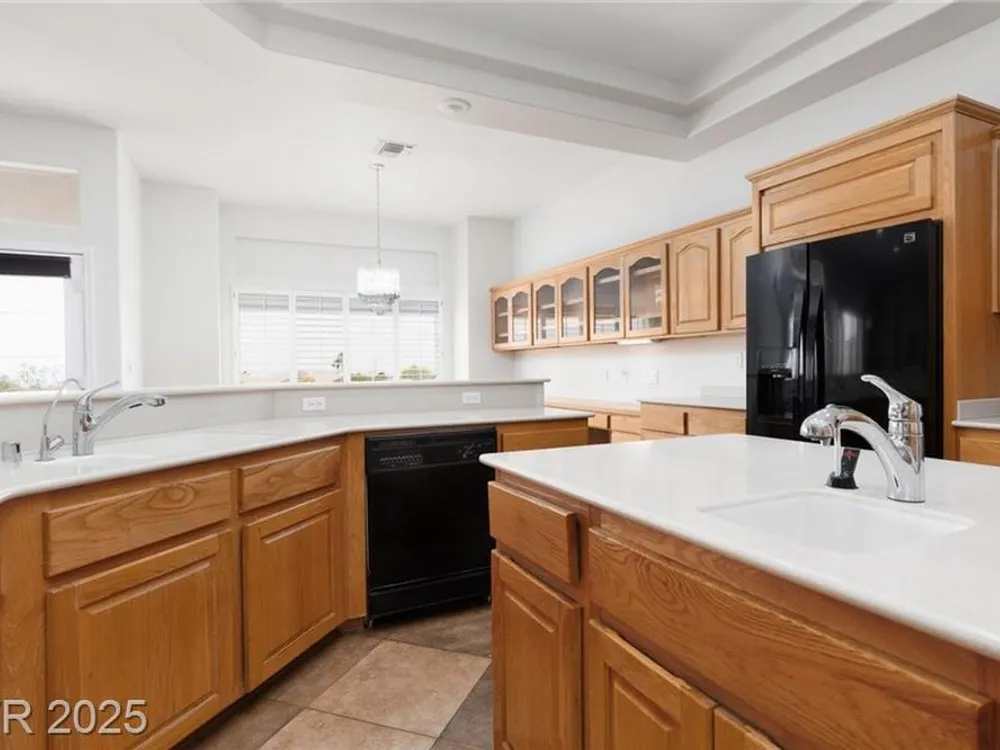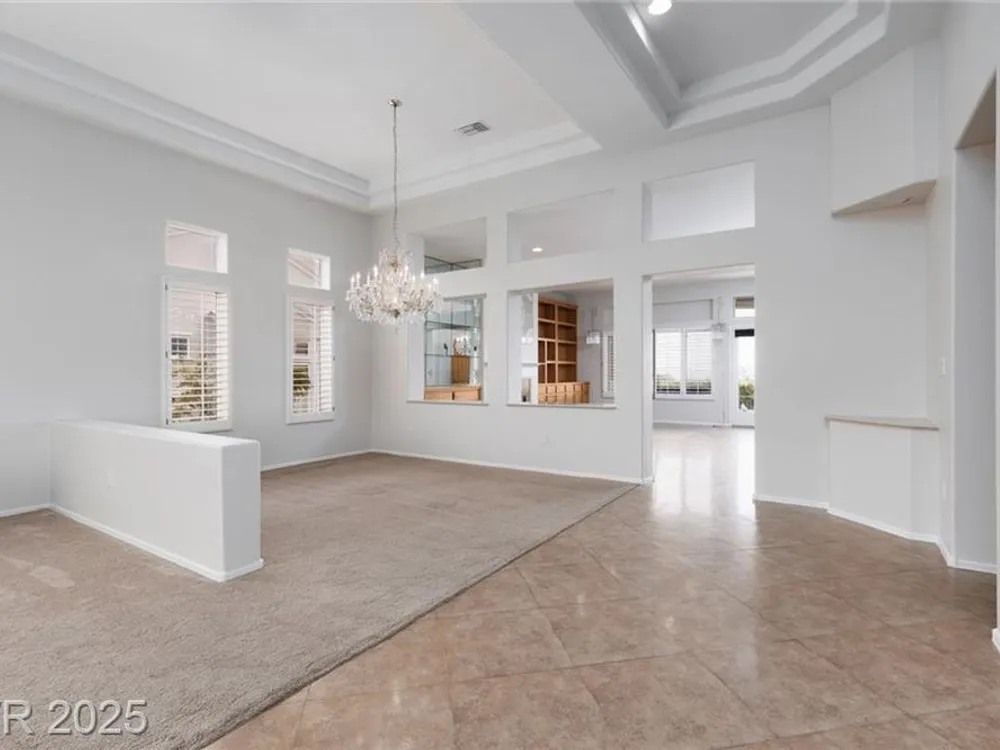 HUGE HUGE PRICE IMPROVEMENT. ONE OF THE BEST DEALS IN SUN CITY SUMMERLIN! Breathtaking city views, especially at night!!! This Sun City residence with high ceilings, open floor plan, formal living and dining room with exquisite chandelier!!Interior freshly painted, tile floors and 3 true bedrooms. Gourmet kitchen, featuring an abundance of cabinets and sleek Corian countertops, and a spacious work island complete with veggie sink & instant hot water. A built-in desk with upper cabinets and glass fronts makes this a dream kitchen. Breakfast bar and nook, w/ window seat. The family room has built-in shelves and shutters. French doors out to covered patio. Primary Bedroom/ bath features a luxurious spa tub, a separate shower, and a large walk-in closet. 2 extra bedrooms and a full bath with a walkin tub! Golf parking in the garage and plenty of cabinets on 2 sides. Sun City has 3 golf courses, community centers, a social calendar, pools, outdoor activities, and is close shopping centers.