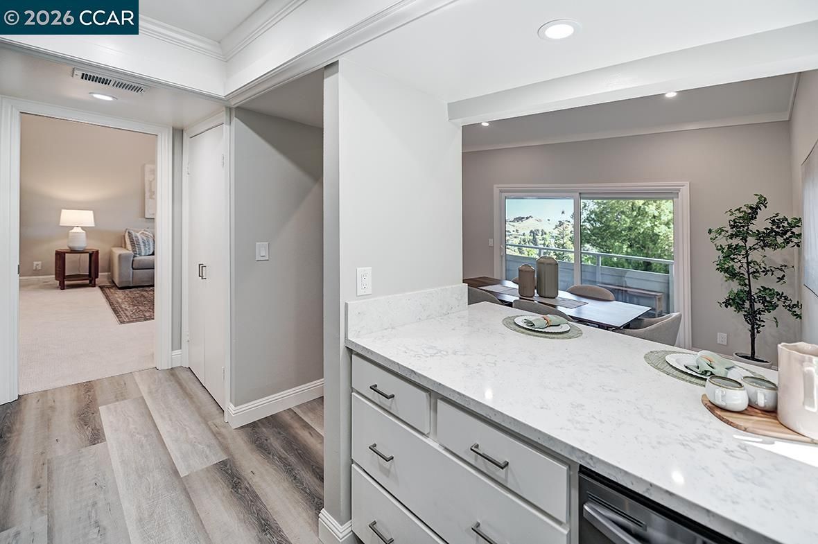 Welcome to the very rare Diablo model, with soaring vaulted ceilings and lovely new upgrades throughout. This upper floor, end unit has a large wraparound deck boasting serene private views of rolling hills. Half covered and half open, it's perfect for outdoor entertaining. Inside, you'll appreciate the polished upgrades including stainless appliances, quartz counters, recessed LED lighting, luxury plank flooring and designer carpet that combine for a "perfect house on a hill" feel. New windows, new HVAC system, new electrical service, new lighting, two spacious baths remodeled in quartz slabs, new side by side laundry with storage, it's quite a list! This is a really special opportunity to own a gorgeously remodeled condo, with the closest carport available, for the price of a co-op!