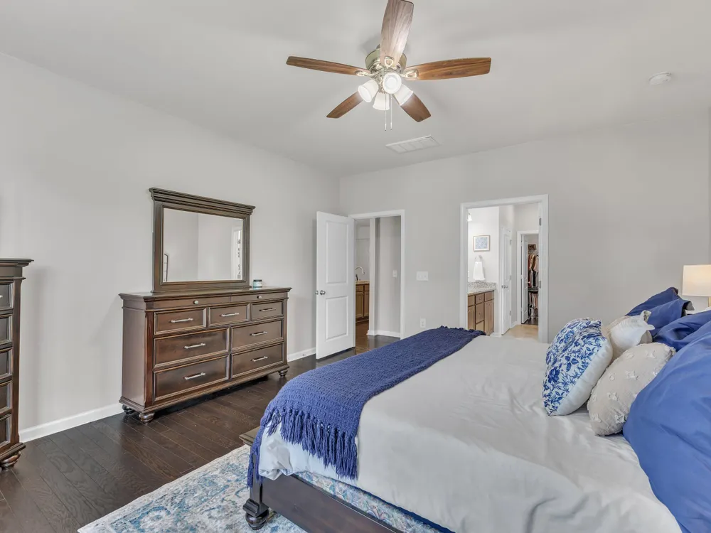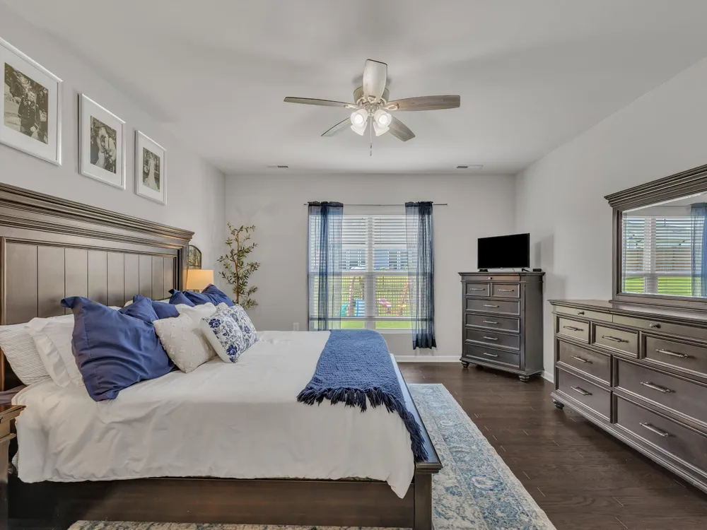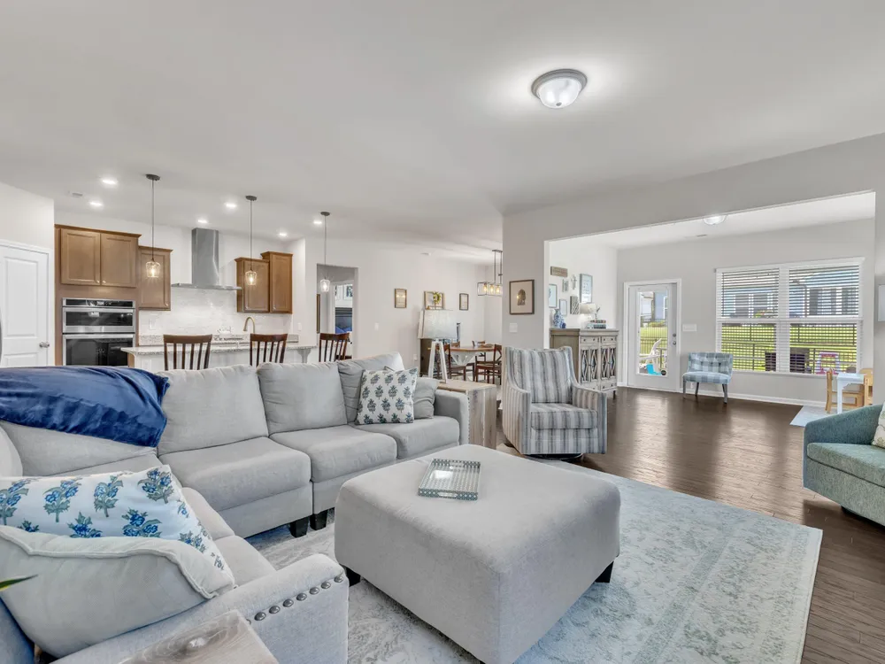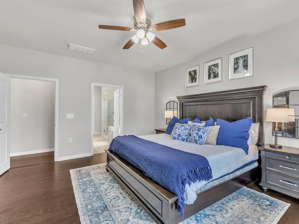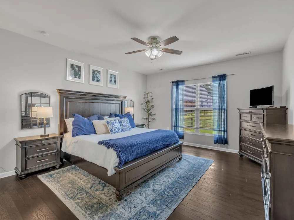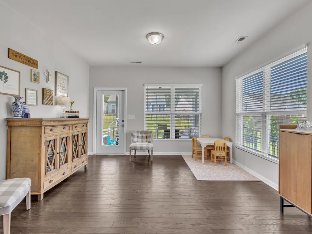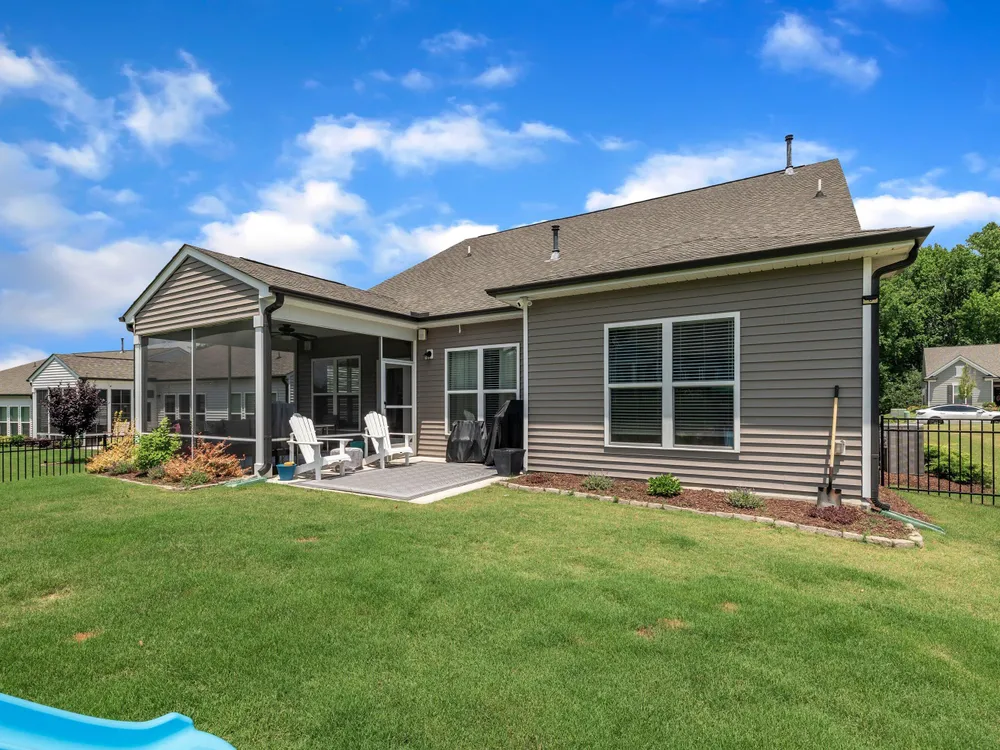 Sellers offering $7,000 in closing costs, plus an additional $3,000 with preferred lender! This inviting 1.5-story home is designed for easy main-floor living with the primary suite and two additional bedrooms all on the first floor. Upstairs, a spacious bonus room offers endless flexibility—ideal for a guest retreat, playroom, home office, or media room. The open-concept layout connects the kitchen, dining, and living spaces seamlessly, with engineered hardwood floors bringing warmth and style. Enjoy outdoor living on the screened porch overlooking a private, fenced backyard with a dedicated grilling area. Everyday convenience is built in with a 2-car garage, laundry room, and drop zone. Set in an amenity-filled community with a pool, playground, fitness center, and more—plus lawn maintenance included in HOA dues—this home offers comfort, convenience, and connection without the upkeep.