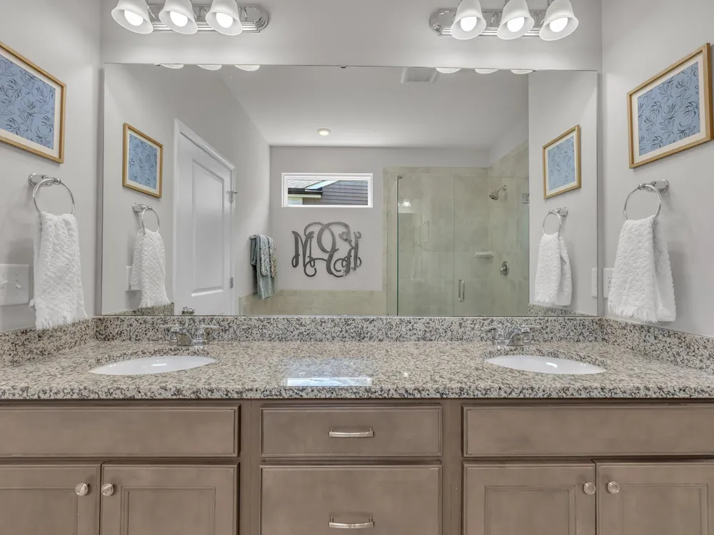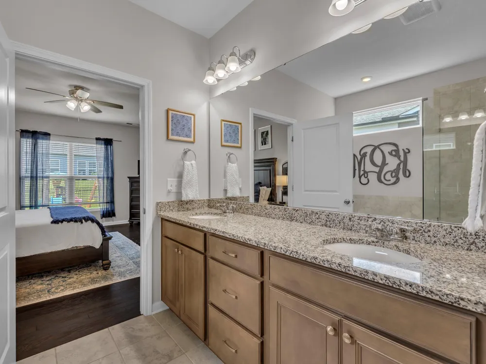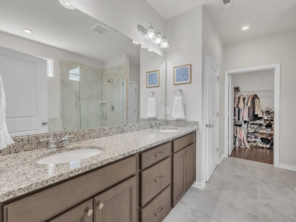 - Tub Shower, Ceiling Fan(s), Double Vanity, Eat-in Kitchen, Granite Counters, Kitchen Island, Open Floorplan, Pantry, Master Downstairs, Separate Shower, Smooth Ceilings, Soaking Tub, Walk-In Closet(s), Walk-In Shower, Water Closet(s)