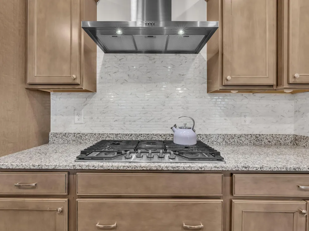 - Built-In Gas Oven, Dishwasher, Disposal, Gas Cooktop, Microwave, Range Hood, Stainless Steel Appliance(s), Water Heater