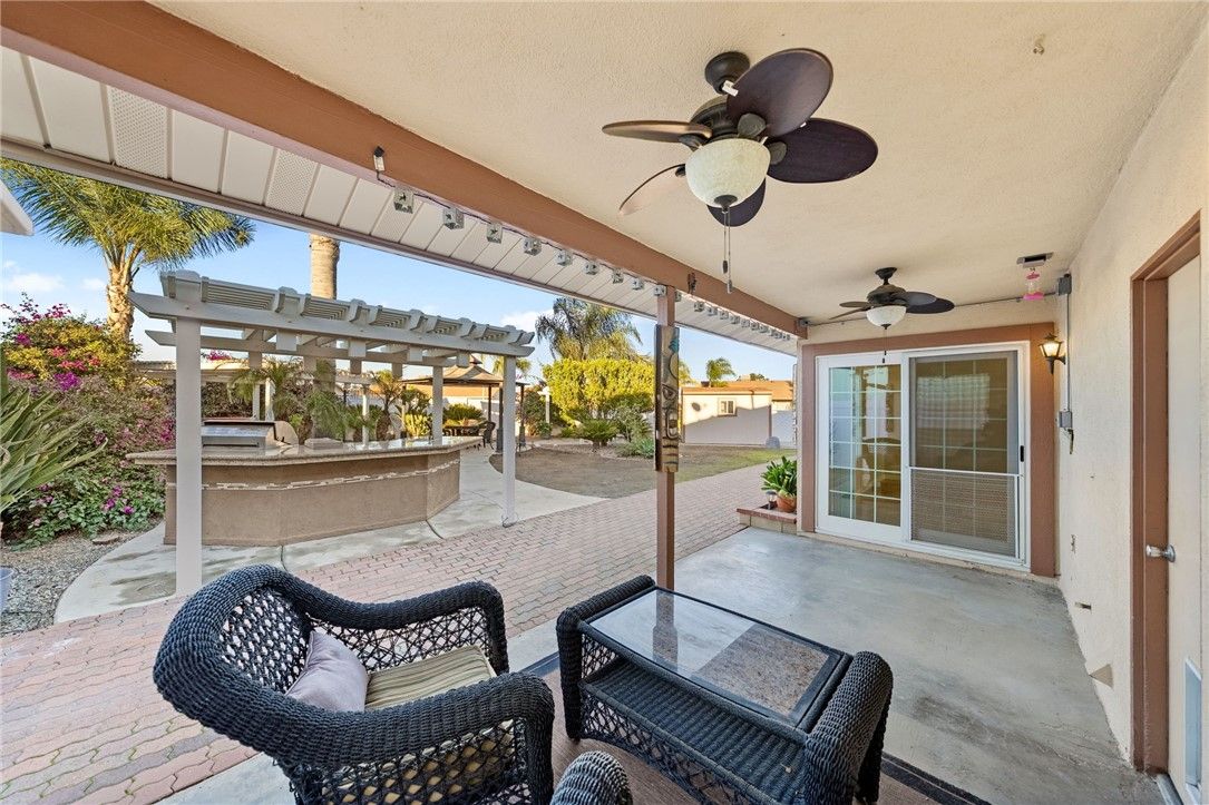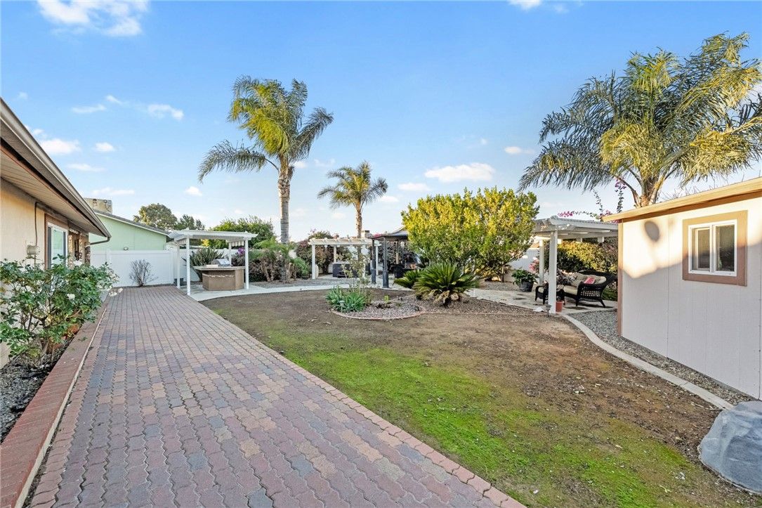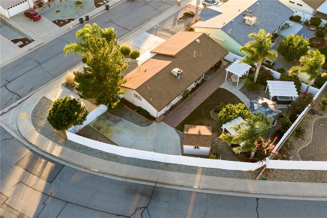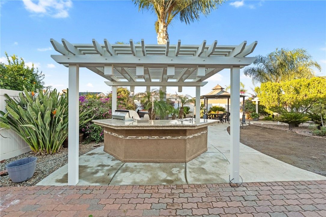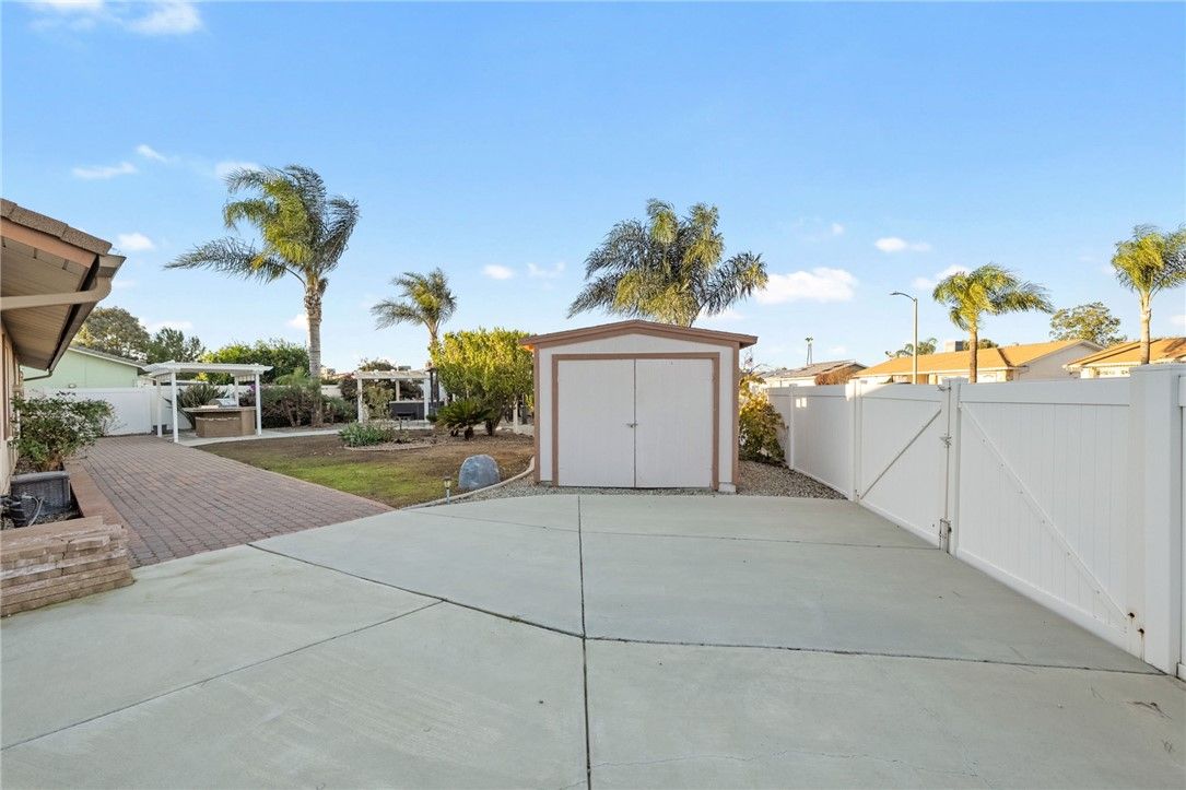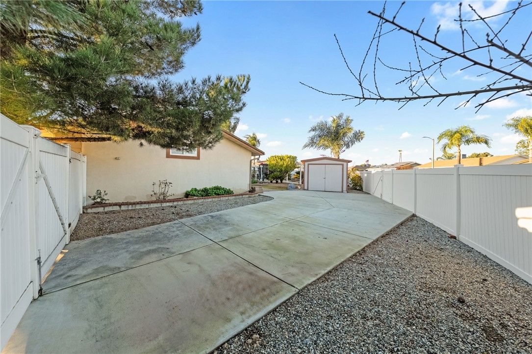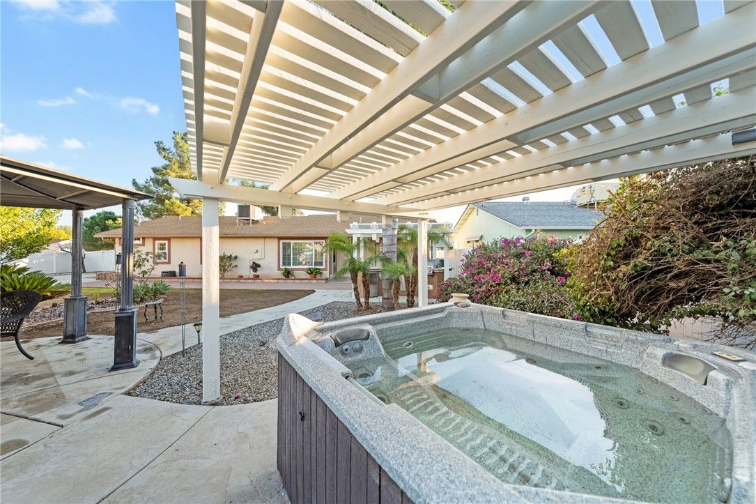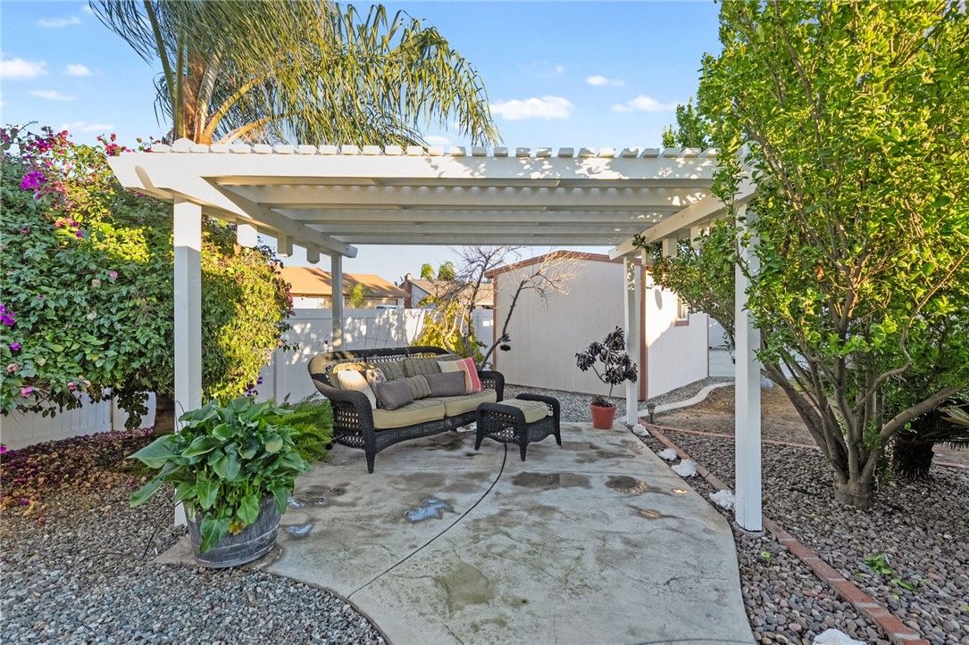 Charming upgraded Menifee home tucked away in the Sun City Civic Association 55+ community. This beautifully maintained, move-in-ready home is spotless and thoughtfully upgraded throughout—just unpack and enjoy. Granite countertops and stainless steel appliances provide visual and functional appeal. Travertine tile flows through the main living areas, offering timeless style and easy maintenance, while brand new carpet adds comfort to the bedrooms. The inviting layout is ideal for both everyday living and entertaining. Step outside to an exceptional oversized yard rarely found in the community—perfect for relaxing or hosting family and friends. Enjoy a private hot tub, built-in BBQ area, a large walk-in shed, and ample space including drive-thru RV parking. Residents enjoy access to the Sun City Civic Association clubhouse, pools, pickleball court, and a wide variety of social activities. This home offers the perfect blend of comfort, charm, and active adult lifestyle living.