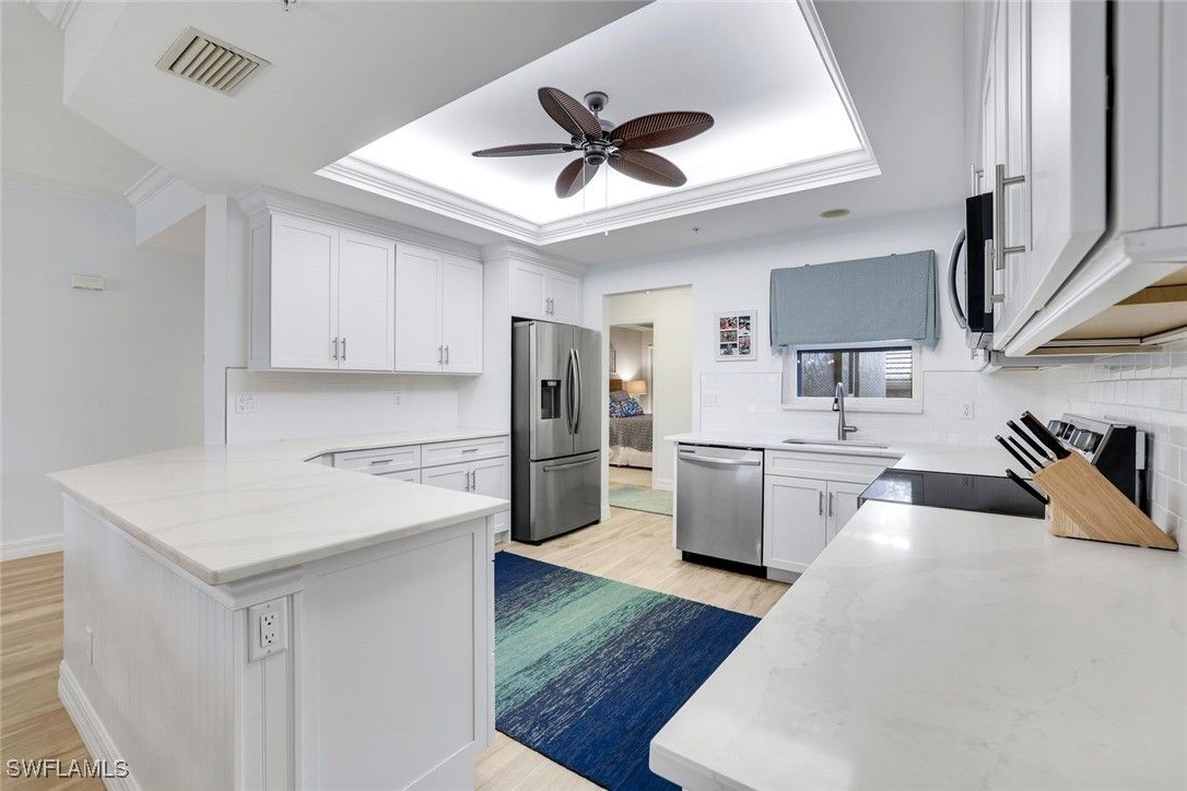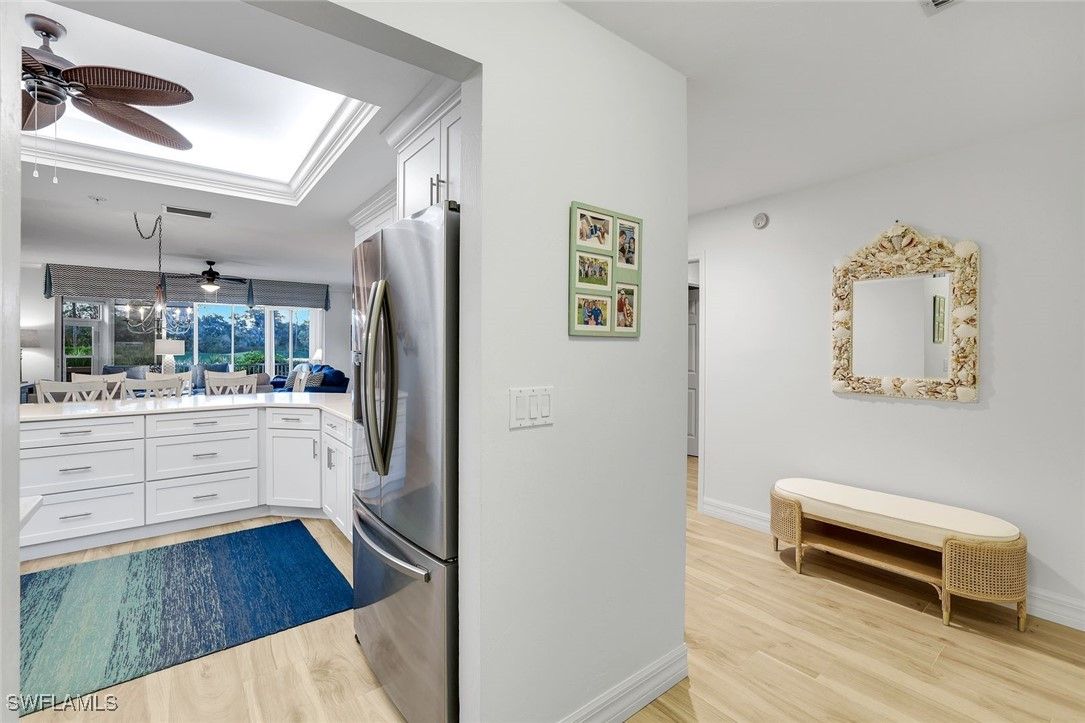 Beautifully updated, this first-floor residence in Waterford at Bonita Bay offers sweeping golf course views that put you right in the action on the greens while maintaining a peaceful, private feel. Recent enhancements include new flooring throughout the main living areas and screened lanai, along with a remodeled kitchen featuring new countertops, updated hardware, and stainless steel appliances—creating a fresh, modern space. The thoughtfully designed layout features three bedrooms with each guest suite enjoying its own private bath and generous proportions in their own right. A two-car garage adds rare convenience and storage, allowing this condo to live with the comfort and ease of a single-family home. Residents of Waterford enjoy a private community pool and a prime setting within Bonita Bay, one of Southwest Florida’s most coveted communities. Bonita Bay offers tennis and pickleball, 12.5 miles of scenic walking and biking trails, a full-service marina, and a private beach park on the Gulf. There is also the optional membership to Bonita Bay Club, featuring five championship golf courses and world-class amenities. An exceptional opportunity awaits to enjoy updated interiors, captivating views, and a premier coastal lifestyle in Bonita Bay.