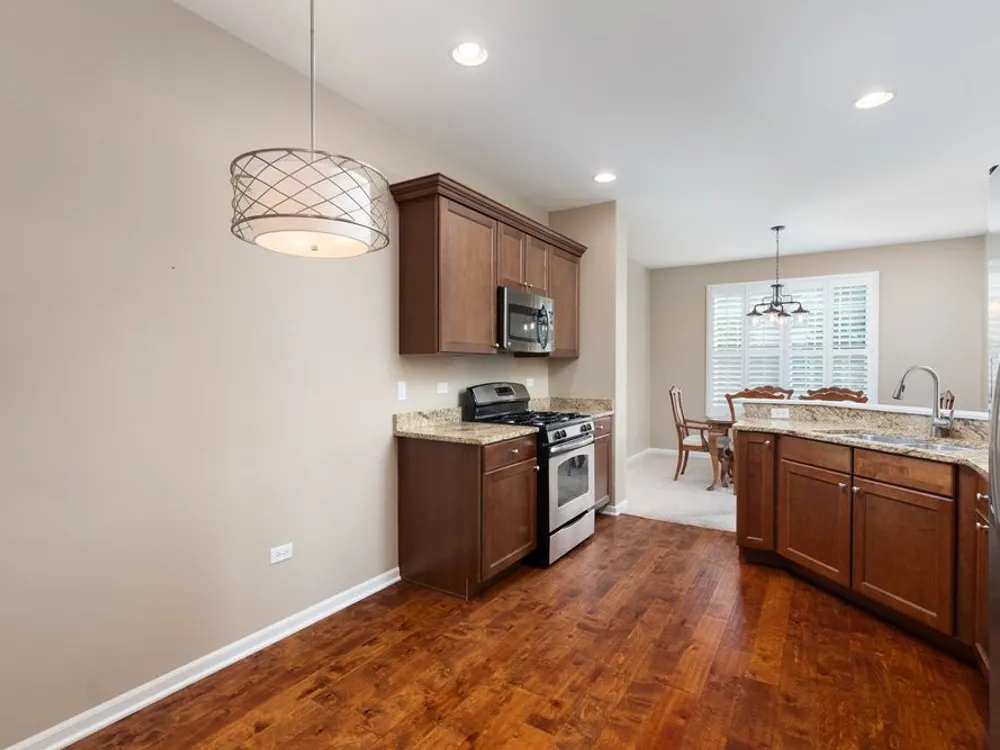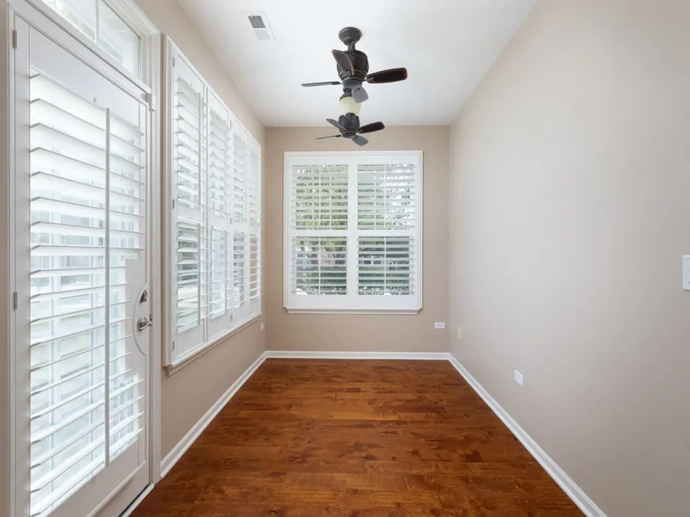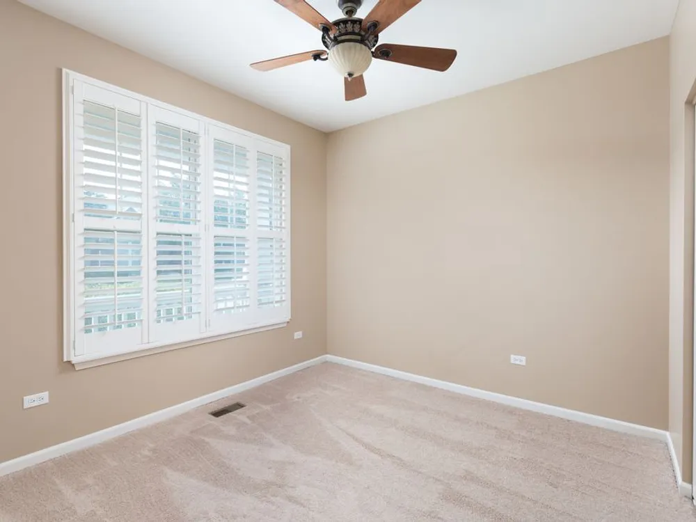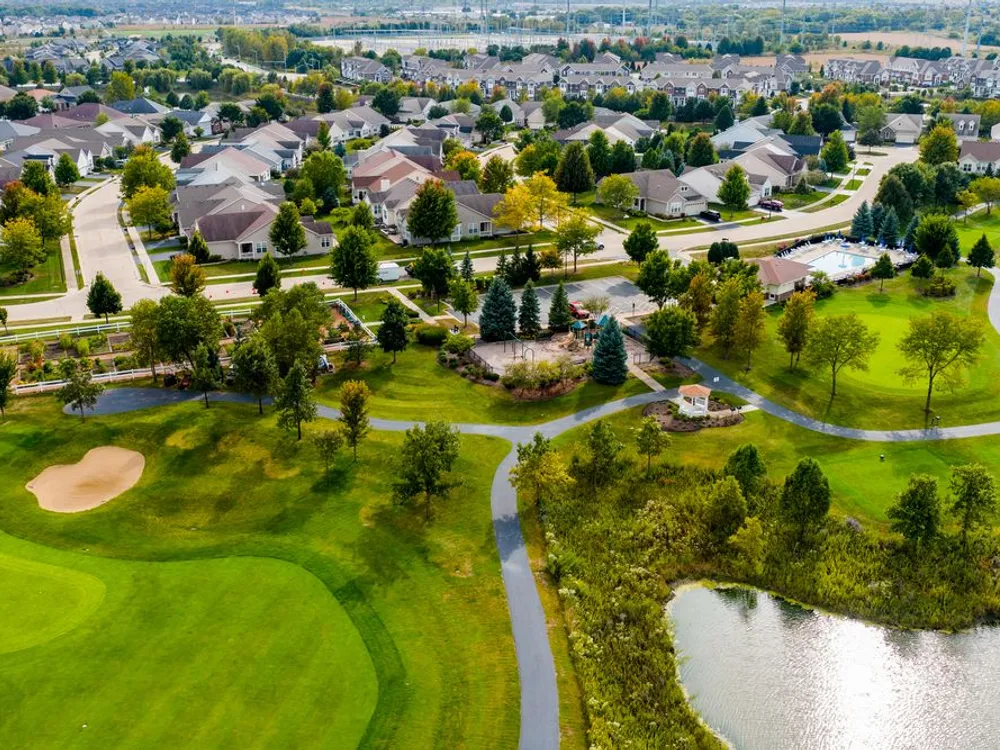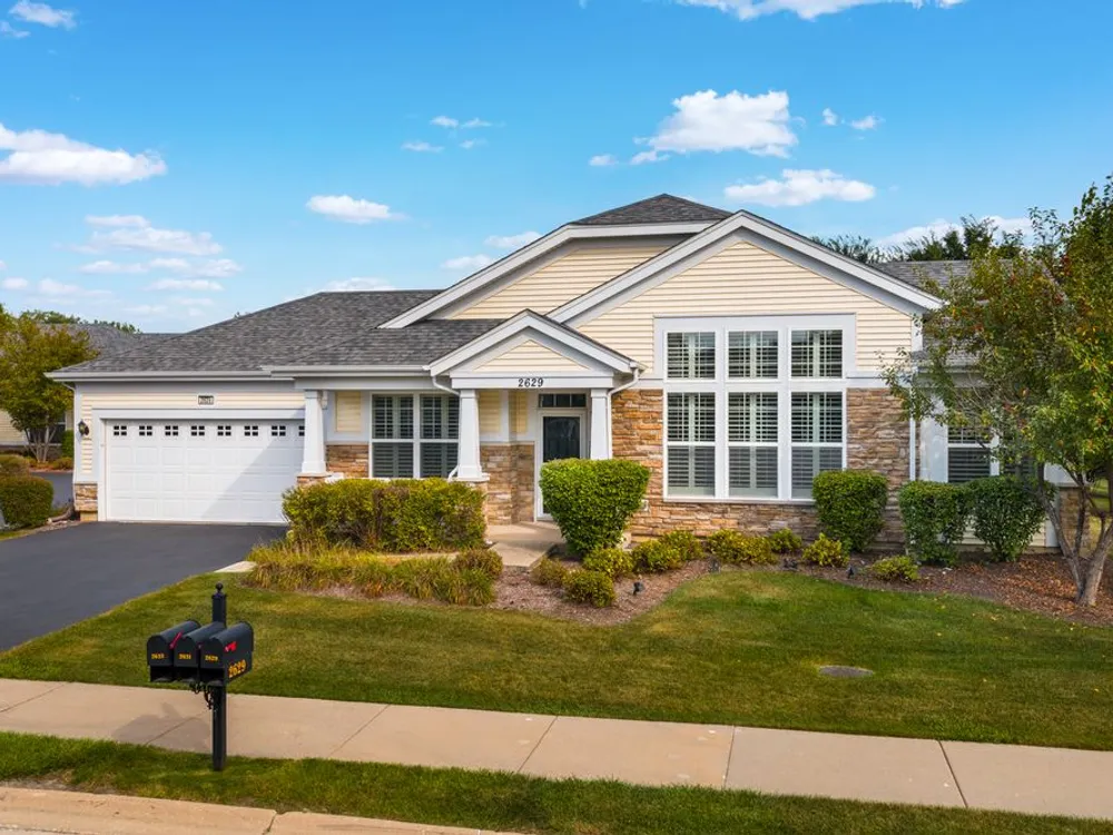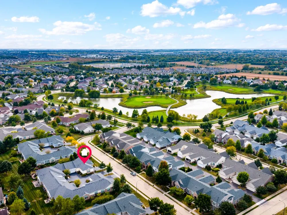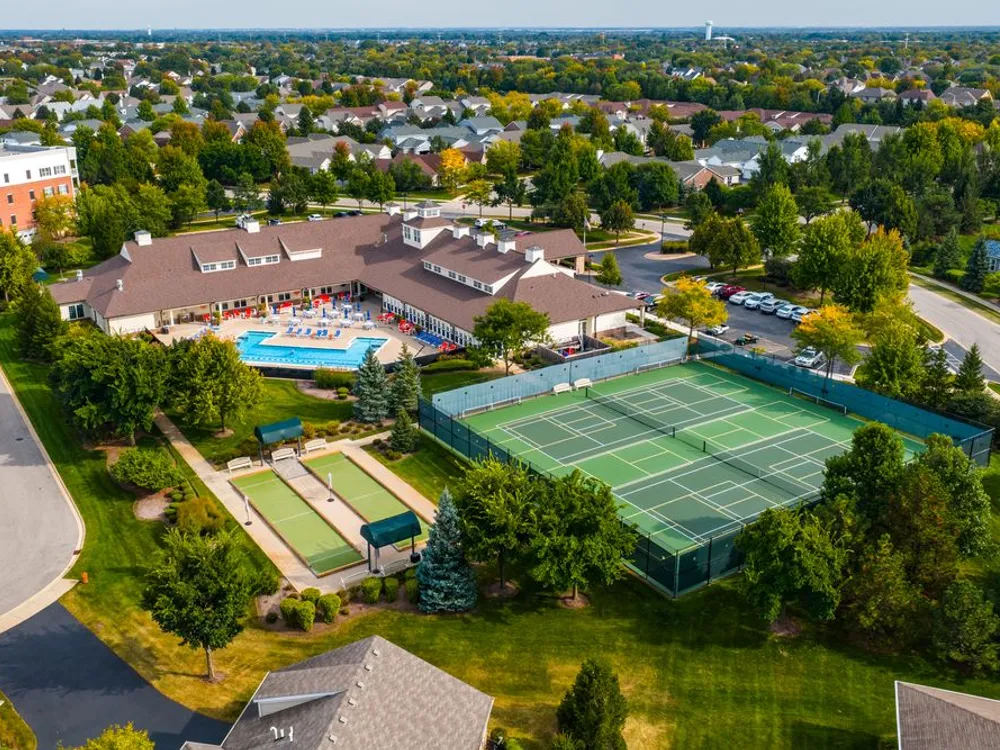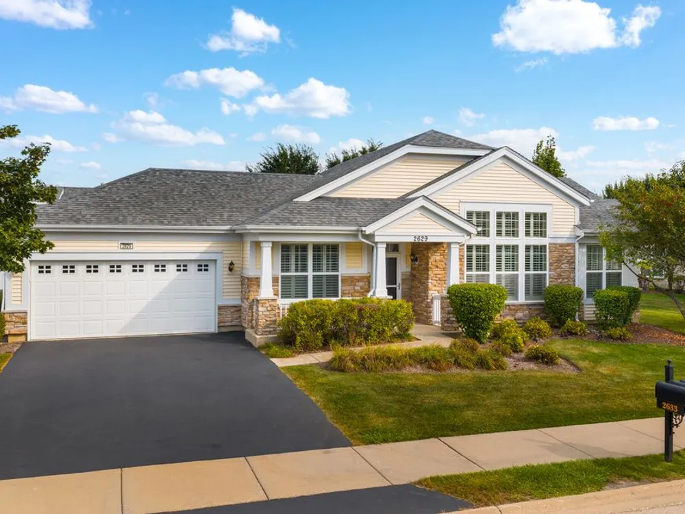 Welcome to resort-style living at Carillon Club, Naperville's premier 55+ active adult gated community! This impeccably maintained Nicklaus model ranch townhome features 2 bedrooms and 2 full bathrooms and is one of the most popular floor plans in the neighborhood. Step inside to find hardwood flooring, 12-foot ceilings, and custom plantation shutters throughout. The open-concept kitchen boasts granite countertops, stainless steel appliances, eat-in area and custom light fixtures. Additional highlights include custom ceiling fans, a heat lamp in the primary bath, a heated sunroom for year-round enjoyment, a security system, and in-unit washer and dryer. Enjoy the convenience of a private driveway (no sharing), Larson storm doors on both the front and side entries, and a drywalled, painted garage floor. Relax on your covered front porch and take in the peaceful surroundings. The Carillon Club community offers unmatched amenities, including indoor and outdoor pools, a children's pool for visiting grandkids, clubhouse, tennis courts, fitness center, golf course, bocce ball, pickleball, and so much more! Conveniently located near downtown Naperville, with easy access to Route 59 shopping, dining, entertainment & Metra . Welcome home!