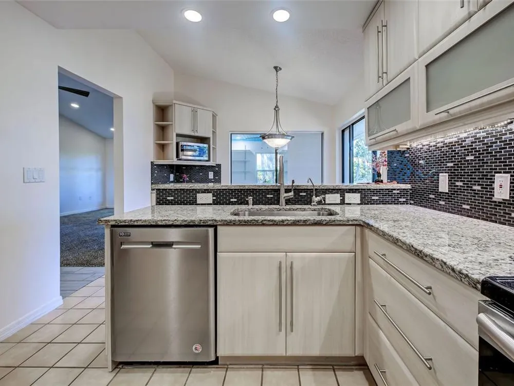 One or more photo(s) has been virtually staged. Discover this immaculate 2-bedroom, 2-bathroom villa with a REMODELED KITCHEN AND PRIMARY BATHROOM and a 2-car garage, perfectly situated in the picturesque Myrtle Trace community on a PRIVATE CANOPIED ROAD. Surrounded by mature trees and lush landscaping and AMPLE SPACE BETWEEN THE BUILDINGS, this MAINTENANCE-FREE villa lets you embrace the Florida lifestyle with ease. Enjoy the convenience of a HEATED COMMUNTIY POOL and clubhouse just steps away, while the grounds, common areas, home exteriors including your roof are all expertly maintained for you. Enjoy the relaxing and peaceful SCREENED IN COURTYARD WITH DECKING providing a tranquil retreat. Inside, you'll find VAULTED CEILINGS in the living room and primary bedroom, spacious living areas, and two GENEROUSLY SIZED BEDROOMS, offering privacy and comfort. The primary bedroom has an ensuite bathroom and two nice-sized closets. The BACK LANAI HAS BEEN ENCLOSED, HAS AC, HEAT AND ITS OWN ENTRY. This is the perfect flex room to be used as an office, a craft room, a home gym or extra sleeping space. There is also a WHOLE-HOUSE GENERATOR HOOK UP and a LIFESTYLE SCREEN in the garage where you can tinker and be comfortable with a breeze while keeping those pesky pests out and adorable pets in. Located near the beach, this home is just a short drive from Sarasota, Englewood, and Port Charlotte. It’s also conveniently close to shopping and offers the option to join the Plantation Golf & Country Club. Whether you're looking for a permanent residence or a vacation getaway, this villa checks all the boxes. Don’t forget to catch an Atlanta Braves Spring Training game nearby! Call today to arrange a private showing.