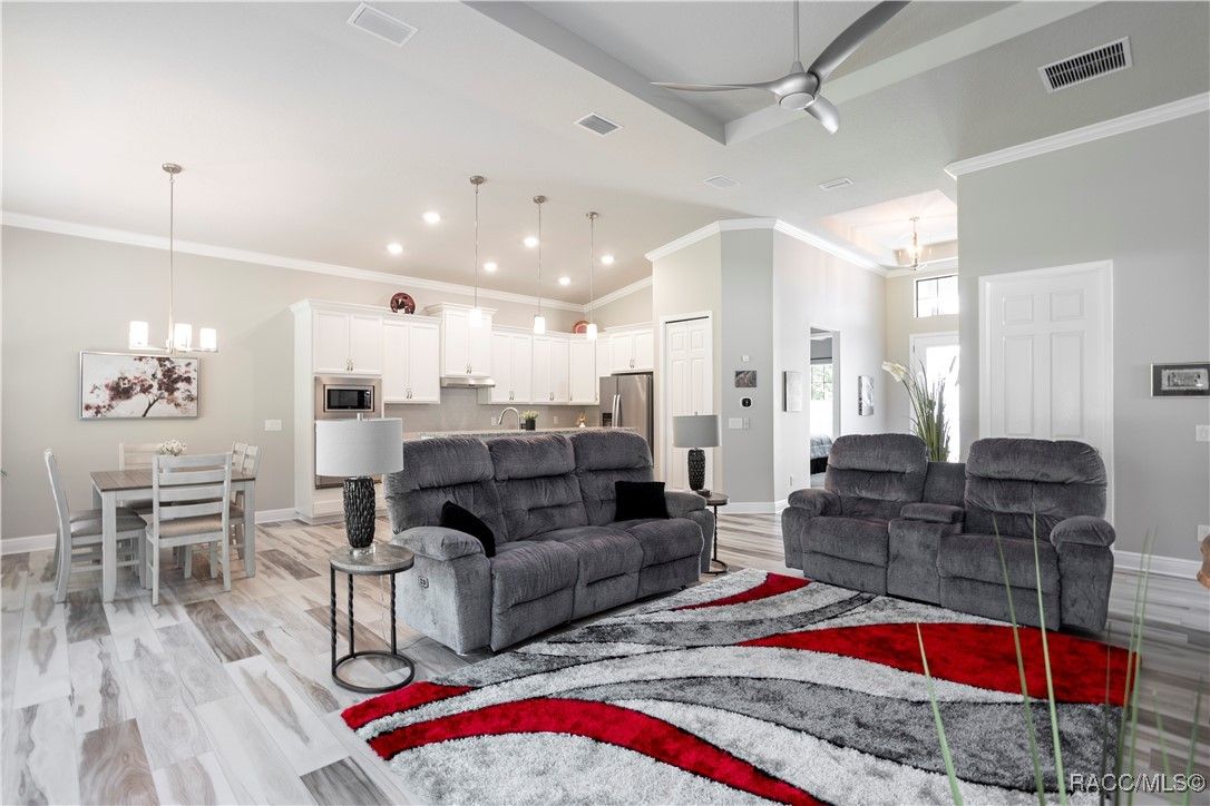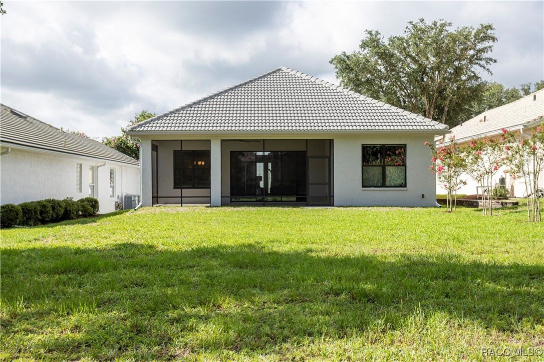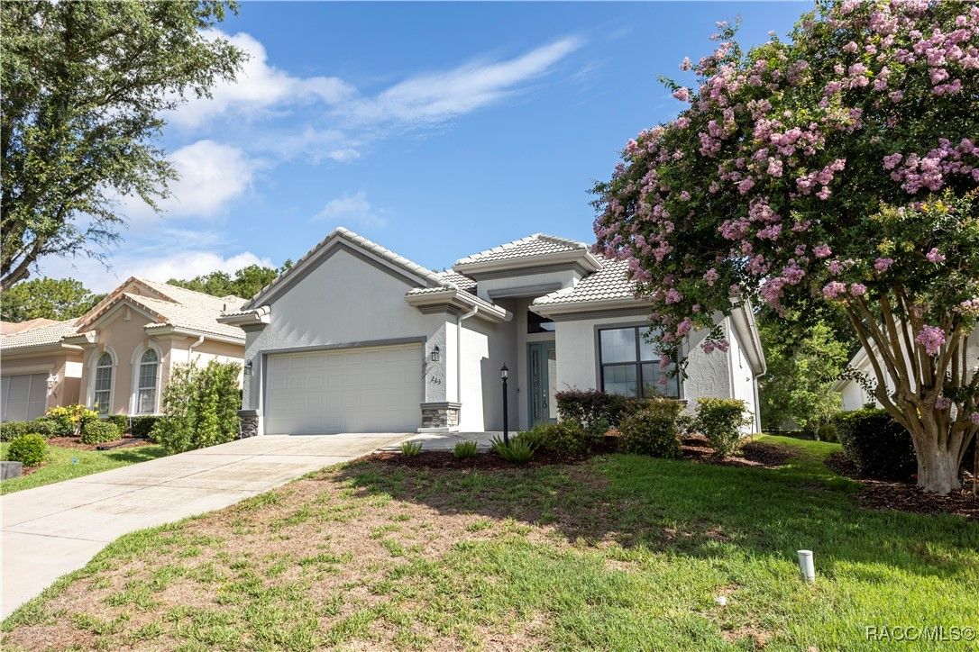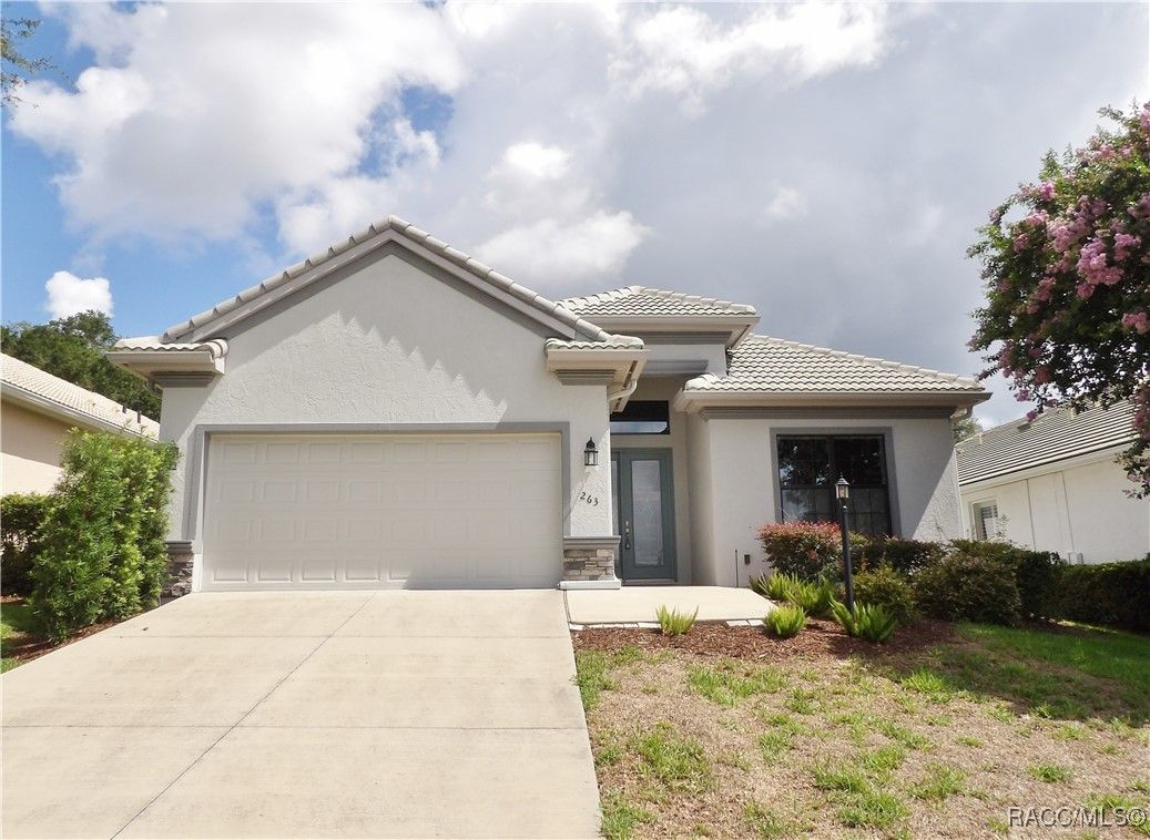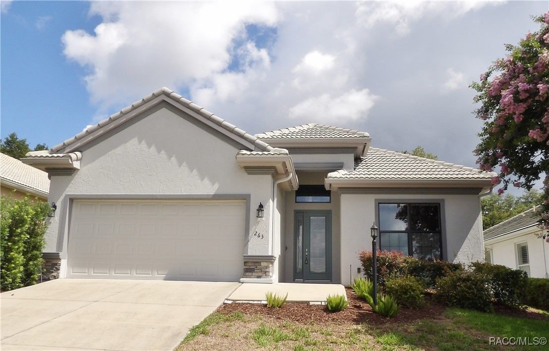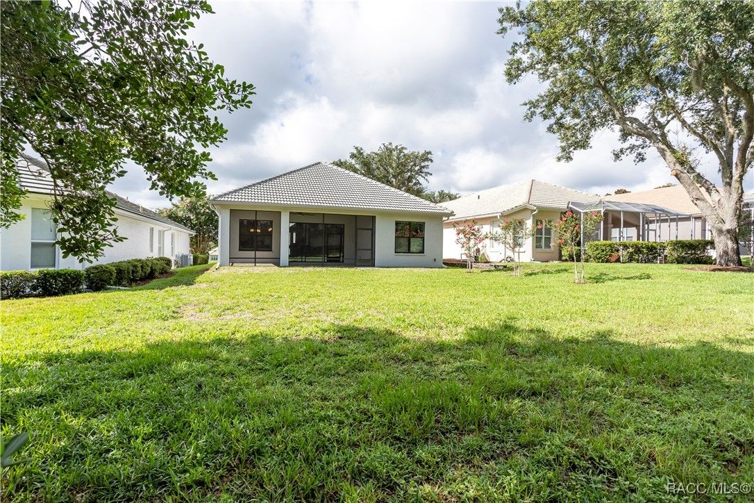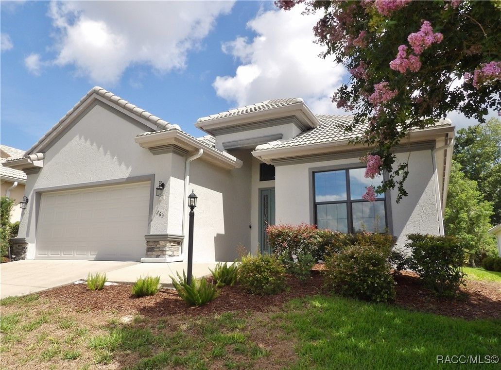Nestled in the premier, gated community of Terra Vista at Citrus Hills, this stunning 2022-built villa embodies the very essence of Florida's carefree lifestyle. With 3 spacious bedrooms, 2 full bathrooms, and a 2-car attached garage, this maintenance free showcase home offers the perfect blend of comfort, and style. As you approach, the brick paver entryway welcomes you to a beautiful glass front door, setting the tone for the elegance inside. Upon entering, you’ll notice the thoughtfully designed split-bedroom floor plan that offers both privacy and convenience. The chef-inspired kitchen is a dream, complete with high-end cabinetry, granite countertops, stainless steel appliances, and a gas cooktop perfect for culinary creations. The dining area overlooks the expansive backyard, while the generous great room features tray ceilings and triple sliders leading to the oversized 26x11 lanai. This outdoor oasis, with its brick pavers and ceiling fans, offers a serene space for relaxation or entertaining. The luxurious master suite is a retreat in itself, boasting dual walk-in closets and an en-suite bathroom with granite countertops, dual sinks, and a beautifully tiled shower. Throughout the home, you'll find high-end finishes like crown molding, window treatments, and laminate wood flooring that adds both elegance and easy maintenance. Modern conveniences include a Ring doorbell, ceiling fans throughout the home and lanai, and laundry room with cabinetry for added storage. Whether you’re looking for a permanent residence or a vacation getaway, this villa offers an unparalleled living experience with access to all the amenities including 2 swimming pools, 1 indoor and 1 outdoor, 3 golf courses and 3 restaurants within the Terra Vista community. Don’t miss out—schedule a showing and make this your next Florida dream home!