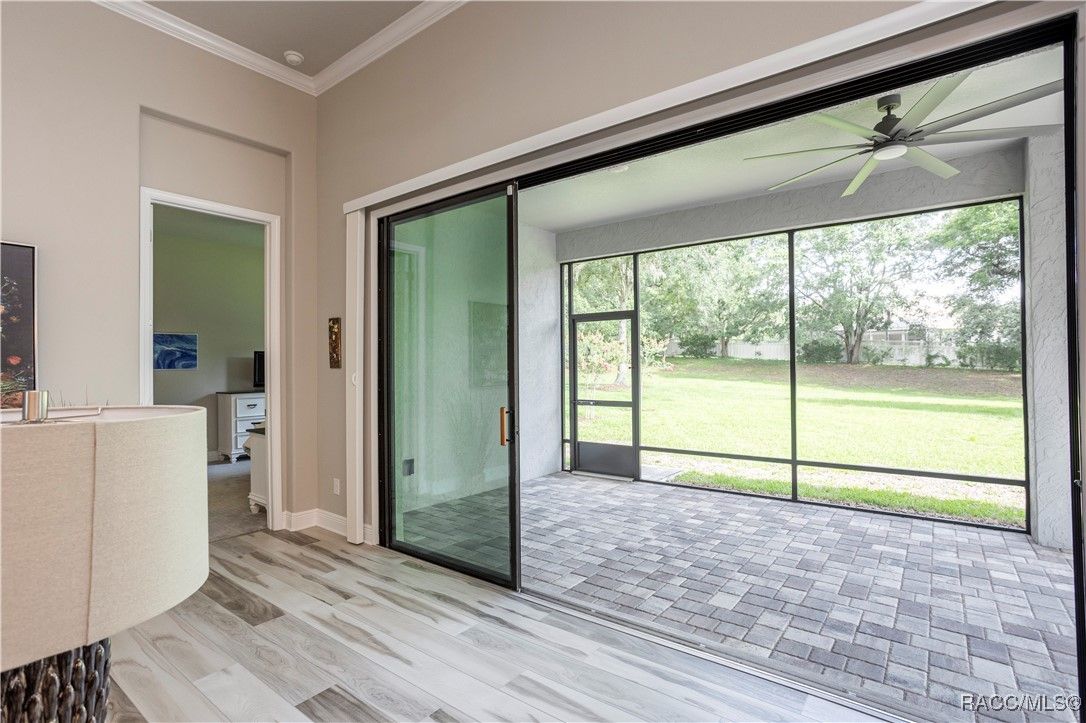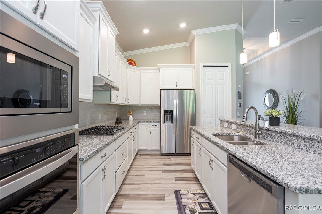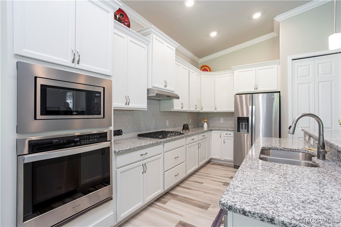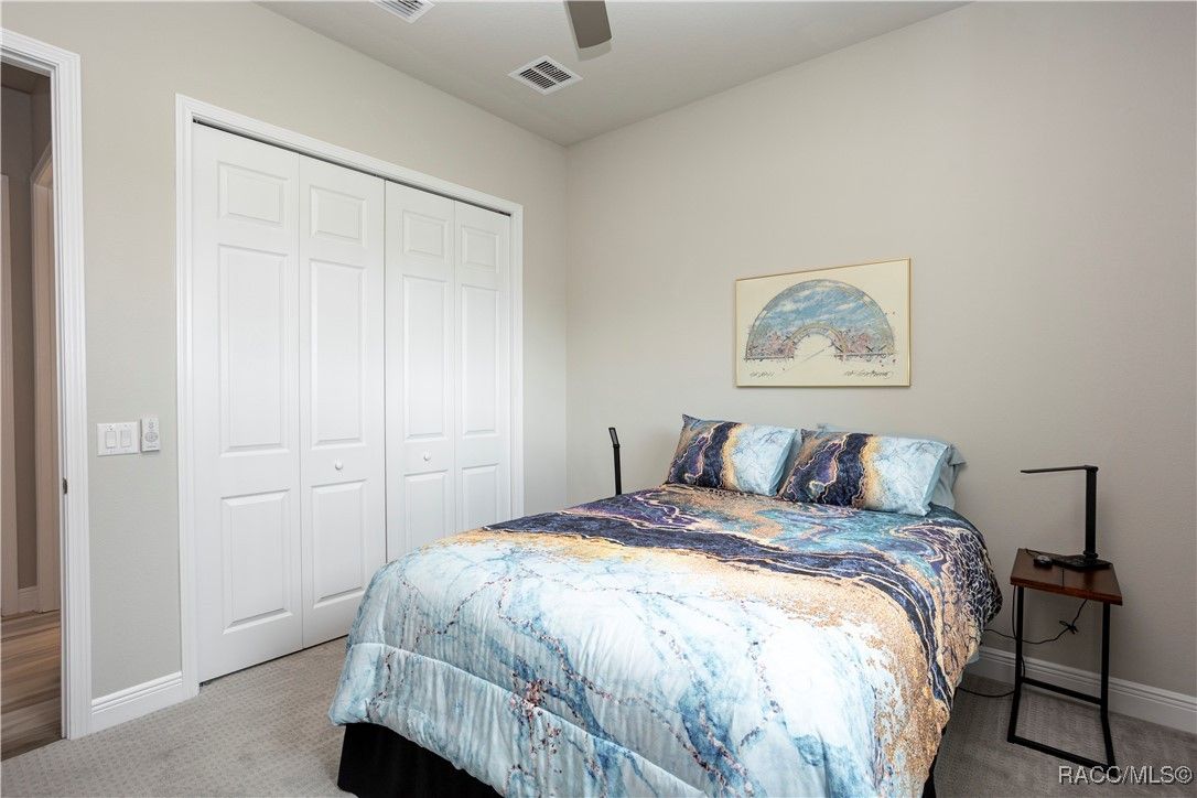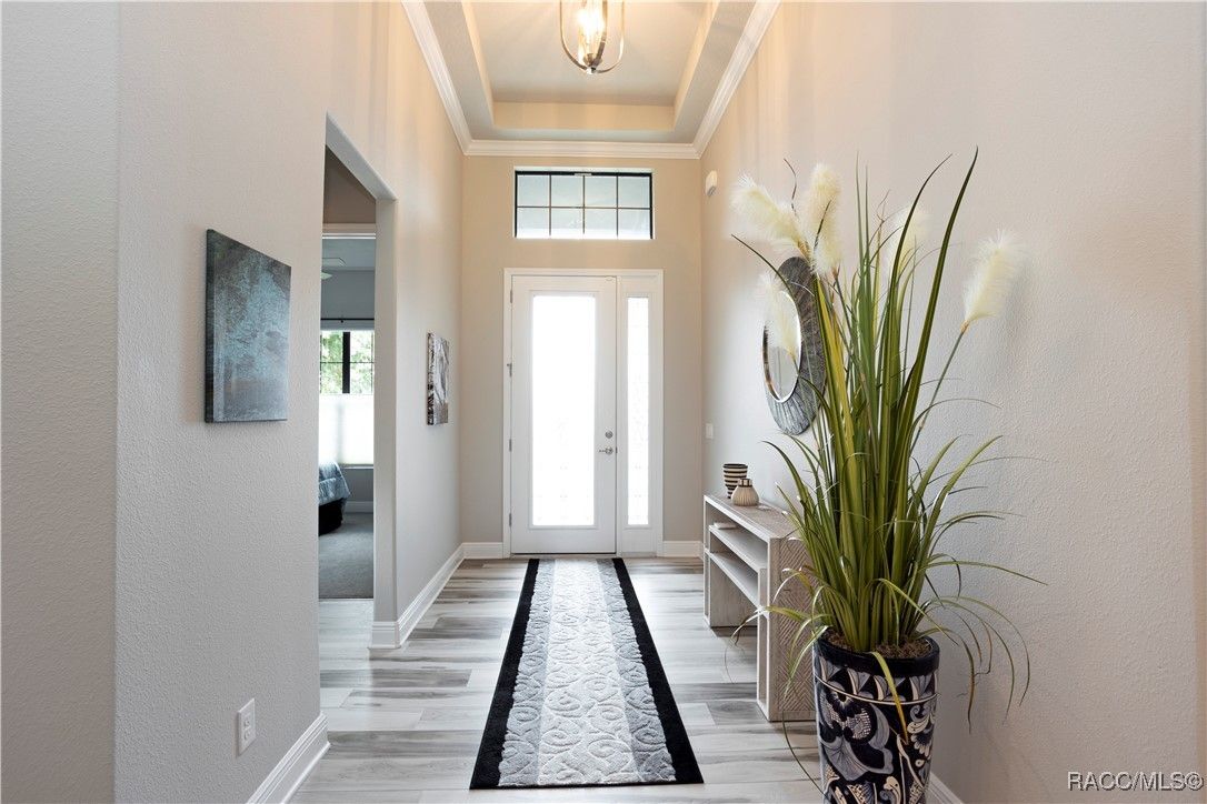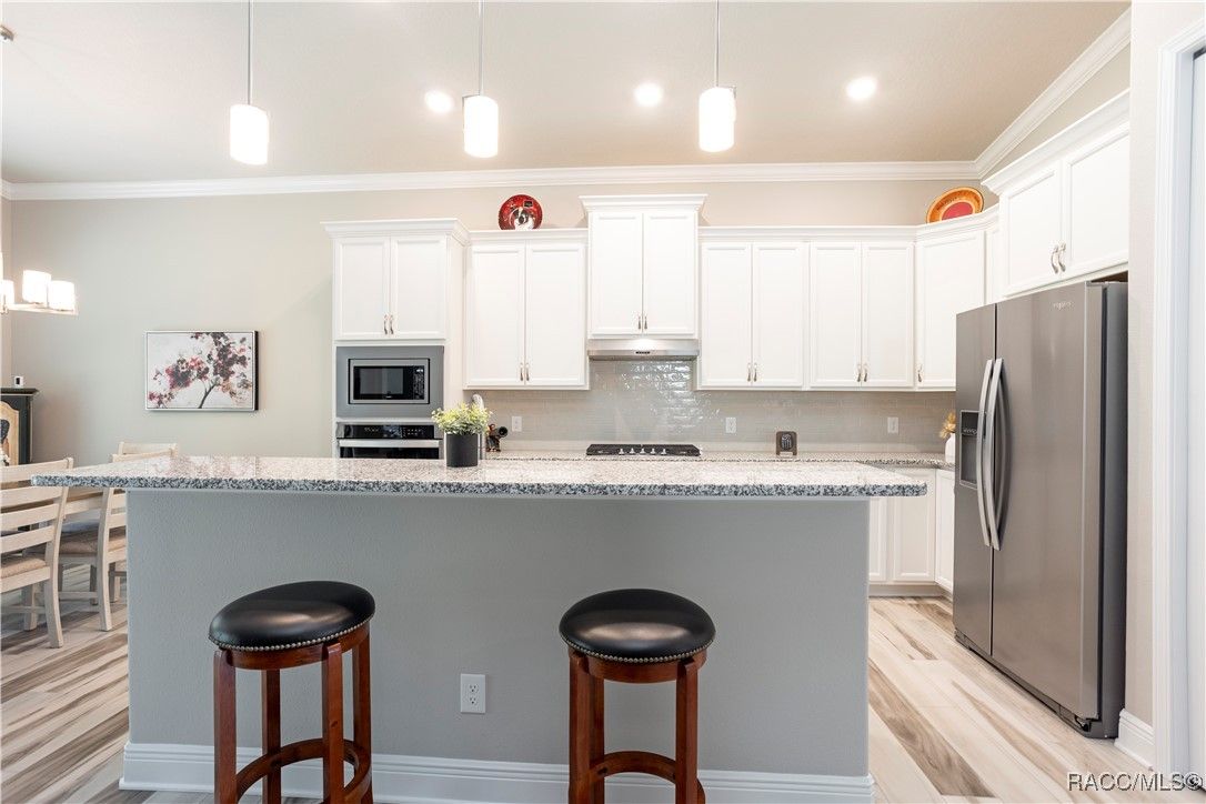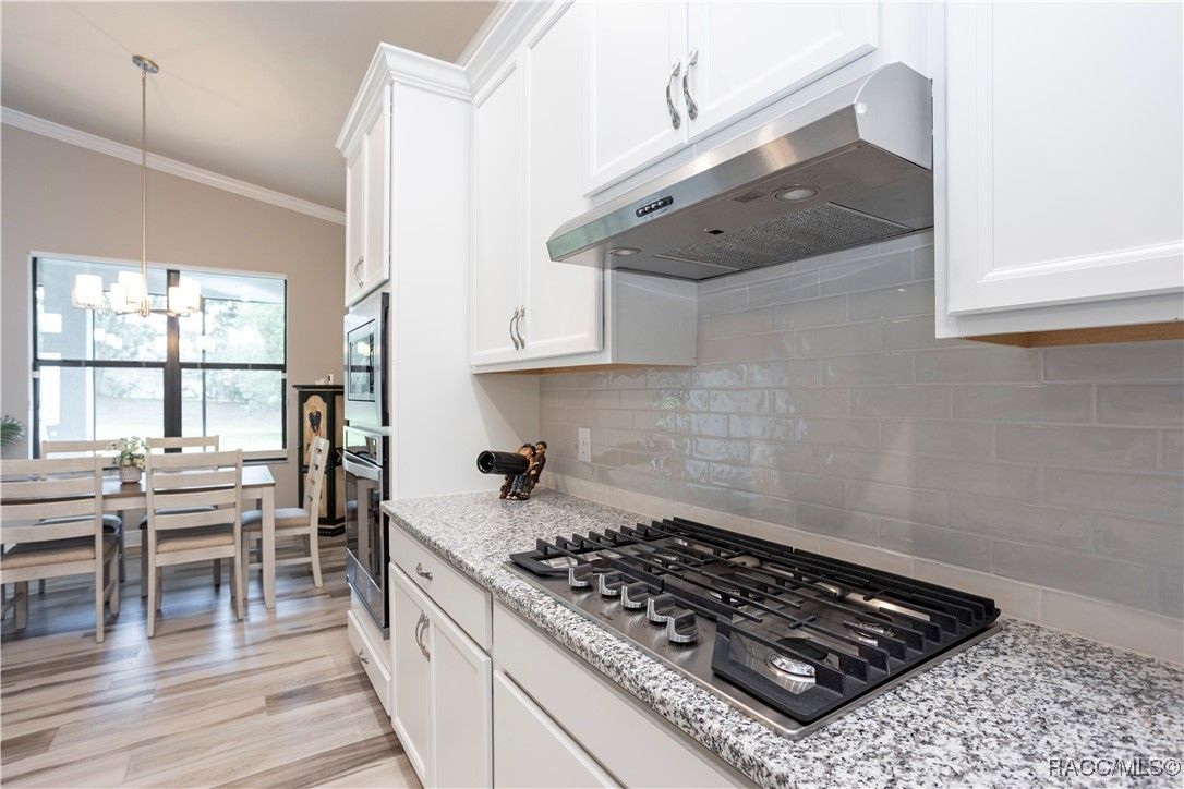 Nestled in the premier, gated community of Terra Vista at Citrus Hills, this stunning 2022-built villa embodies the very essence of Florida's carefree lifestyle. With 3 spacious bedrooms, 2 full bathrooms, and a 2-car attached garage, this maintenance free showcase home offers the perfect blend of comfort, and style. As you approach, the brick paver entryway welcomes you to a beautiful glass front door, setting the tone for the elegance inside. Upon entering, you’ll notice the thoughtfully designed split-bedroom floor plan that offers both privacy and convenience. The chef-inspired kitchen is a dream, complete with high-end cabinetry, granite countertops, stainless steel appliances, and a gas cooktop perfect for culinary creations. The dining area overlooks the expansive backyard, while the generous great room features tray ceilings and triple sliders leading to the oversized 26x11 lanai. This outdoor oasis, with its brick pavers and ceiling fans, offers a serene space for relaxation or entertaining. The luxurious master suite is a retreat in itself, boasting dual walk-in closets and an en-suite bathroom with granite countertops, dual sinks, and a beautifully tiled shower. Throughout the home, you'll find high-end finishes like crown molding, window treatments, and laminate wood flooring that adds both elegance and easy maintenance. Modern conveniences include a Ring doorbell, ceiling fans throughout the home and lanai, and laundry room with cabinetry for added storage. Whether you’re looking for a permanent residence or a vacation getaway, this villa offers an unparalleled living experience with access to all the amenities including 2 swimming pools, 1 indoor and 1 outdoor, 3 golf courses and 3 restaurants within the Terra Vista community. Don’t miss out—schedule a showing and make this your next Florida dream home!