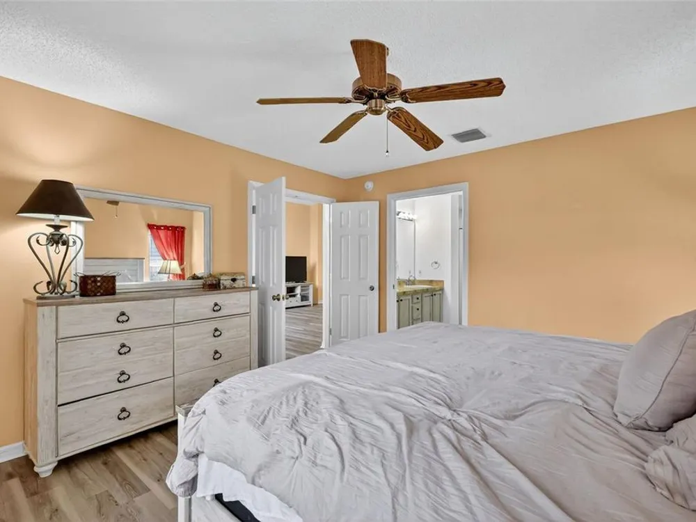 - Ceiling Fan(s), Main Level Primary, Solid-Wood Cabinets, Split Bedrooms, Tray Ceiling(s), Vaulted Ceiling(s)