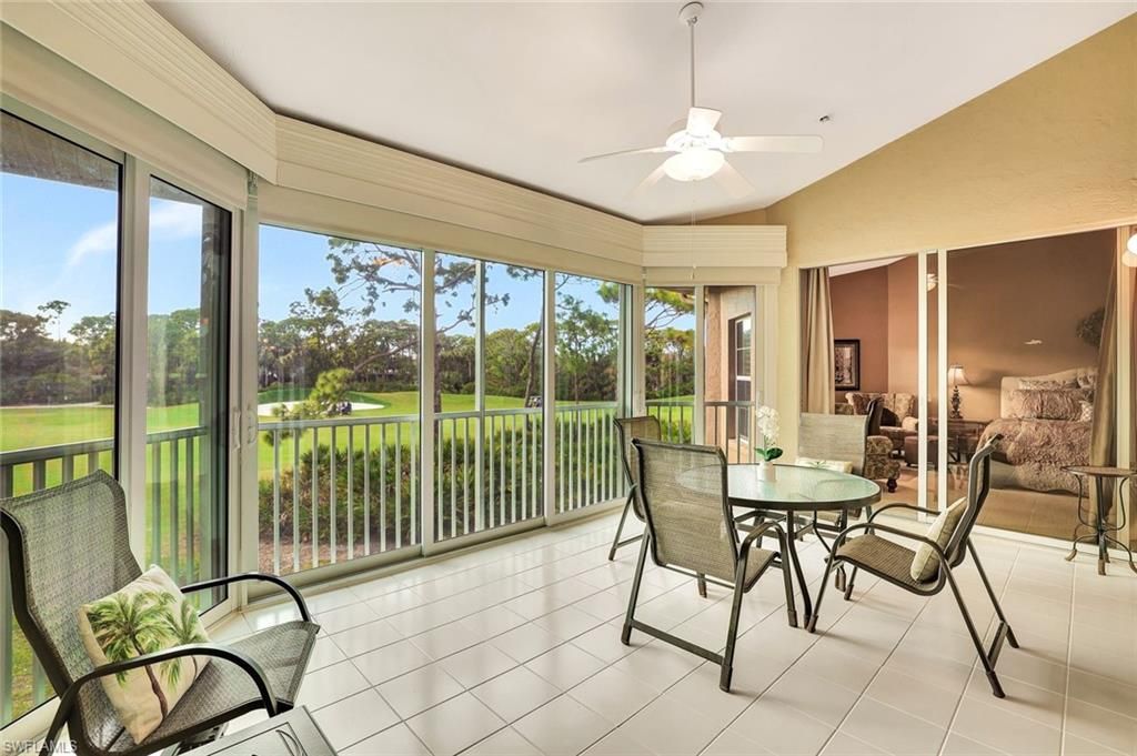 Located in the exclusive gated country club community of Bonita Bay, this refined condo offers breathtaking views of the lake and the Creekside championship golf course.  Light fills the residence, which features three ensuite bedrooms with private baths, a spacious kitchen with stainless steel appliances, newer wood cabinetry, granite countertops, and a seldom-seen window over the kitchen sink. Enjoy relaxed living and entertaining with a combined great room and dining room featuring a vaulted ceiling.  The newly renovated lanai can be enjoyed with the impact glass doors open to take in the beautiful evening, or closed, expanding your air-conditioned living space. Additional features from 2022 to 2025 include custom closet designs, sprinkler heads on the lanai, newer water heater, smart lock for the front door, and electric shades on the lanai. The residence is offered beautifully furnished and has a private two-car garage.  Waterford owners enjoy a neighborhood swimming pool and the convience of bieing perfectly located within walking distance of the club. Your fun new lifestyle includes Backwater Jacks dining, a full-service marina, a private beach club with a shuttle to the beach, parks, miles of walking and biking trails, and an optional membership to the Bonita Bay Golf and Dining Club, tennis complex, pickleball complex, and fitness complex. Visit WWW.BonitaBay.com for more about the community.