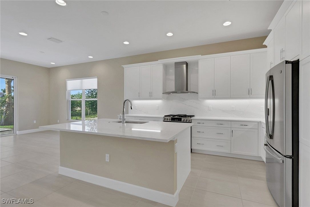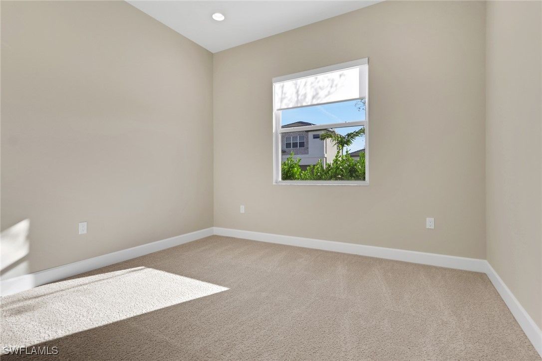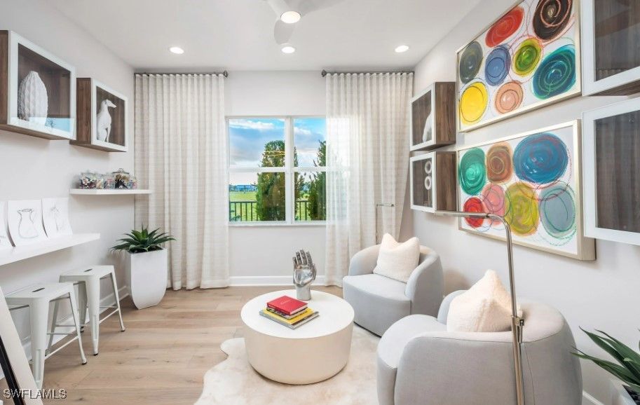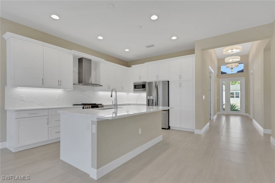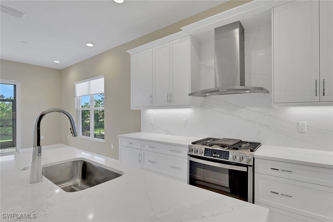 Imagine the feeling of a BRAND NEW home. In the heart of Naples, just 5 miles from downtown 5th Ave, your new lifestyle awaits! Welcome to the exquisite "Skyline" floor plan, featuring a modern glass front entry door, impact-resistant windows throughout, and elegant natural stacked stone accents on the front exterior. This thoughtfully designed home offers 3 spacious bedrooms, a great room, a versatile den, 3 full baths, and a 2-car garage. The open-concept kitchen is a chef’s dream with the gourmet package with crown molding and light valance and cabinet lighting below, stainless steel GE appliances, quartz countertops, built-in pantry and a layout perfect for entertaining. Additional upgrades include a gas tankless water heater, gas dryer, and gas range, upgraded paint color, along with 24x24 tile flooring in all main living areas and bathrooms for a seamless, upscale look. The lanai features a summer kitchen stub out for your future outdoor kitchen, and a 5 foot patio extension for sunbathing, plants, or additional entertaining space. There is room for a pool if you desire. Located within the new community of Valencia Sky, you'll be just minutes from Downtown Naples' iconic 5th Avenue, renowned for its stunning beaches, vibrant shopping, and fine dining. Valencia Sky sets a new benchmark for 55+ active adult living, offering a resort-style lifestyle that includes an opulent clubhouse and expansive lifestyle complex. Residents enjoy hundreds of exciting events such as Broadway-style shows, matinees, cocktail parties, and galas, all curated by a dedicated full-time lifestyle staff to ensure there's something for everyone. For added peace of mind, no flood insurance needed due to higher elevation! Please note: The List Price provided includes Seller’s promotional credits and is subject to Seller’s terms, conditions and limitations such as, but not limited to, use of GLFinancial Services, LLC (“GLFinancial”) if financing or cash transaction and title and settlement services being provided by Nova Title Company (including, without limitation, the purchase of an owner’s title policy in an amount not less than the Total Purchase Price of the Home), but using GLFinancial or Nova Title is not required to purchase a home. However, if you elect not to, Seller’s promotional credits will not apply and the final list price will increase.