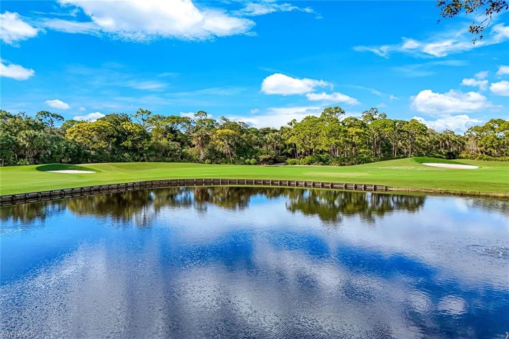 SPECTACULAR!! This beautiful End Unit, SOLD TURNKEY, overlooks the 16th green and pond on the Newly Re-done Creekside Golf Course and offers amazing natural light with an entire wall of windows. With 3 bedrooms and 3 baths, this is the largest of the units in Waterford II. Upon entering you will be captivated by the voluminous ceilings and wonderful way in which the kitchen, dining area, great room and lanai flow together, making great, everyday living, as well as terrific entertaining for guests. The primary suite is exceptional, offering an updated bath, skylight, large closet and great privacy. The additional bedrooms are spacious and each bath has been up-dated. The furnishings are exceptional and include several beautiful art pieces. The Waterford community offers its own private pool and cabana and Bonita Bay offers 5 championship golf courses, the newly built beach club, paddle ball, tennis, state of the art fitness center and world class pool and breezeway dining. THIS UPPER UNIT IS EXCEPTIONAL. The exterior railing work completed in December of 2025.