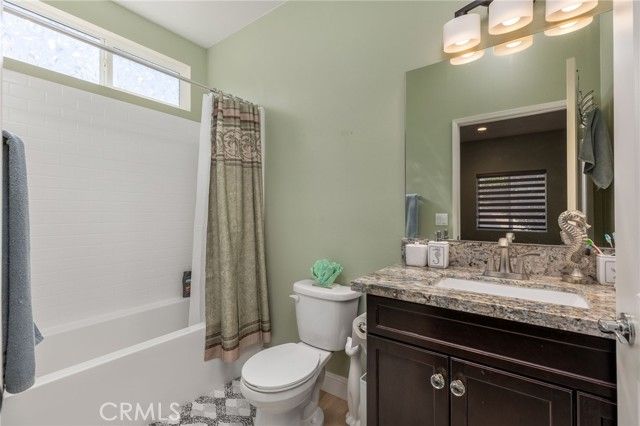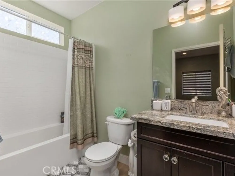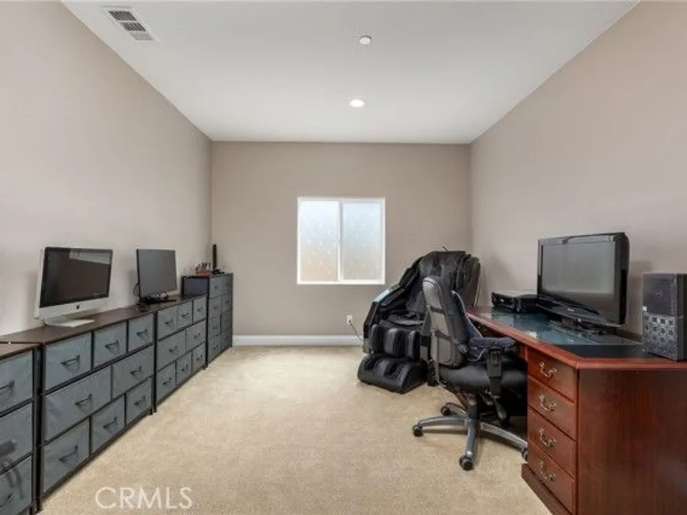 Welcome to this beautifully upgraded home located in a gated 55+ community, offering 2 bedrooms, a den, and 2.5 bathrooms. Thoughtfully designed with modern finishes and functional enhancements, this home is move-in ready with luxury details throughout and includes energy-efficient leased solar.The kitchen showcase premium granite countertops, full backsplash, upgraded sinks, and faucet, while the great room features a custom media center with a 7-foot linear electric fireplace. Throughout the home, you'll find premium porcelain tile flooring, crown molding, and base molding for elegant finish. Enjoy year-round comfort with a whole house fan cooling system and an 8-zone wireless backyard irrigation system. Outdoor living is designed for both entertaining and convenience with California room finished in professional epoxy coating, two underground gas lines for future BBQ's or firepits, and two 20-amp circuits with six outlets providing full backyard coverage. Additional upgrades includes rain gutters connected to underground drains, professional epoxy flooring in the garage, overhead storage racks for organization.This community provides convenience and peace of mind with HOA-maintained front yards, as well as access to amenities including swimming pool. This property is located just minutes to shopping centers and freeway.
