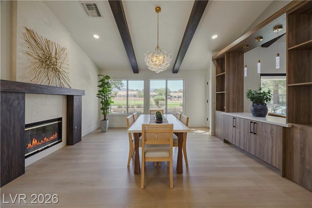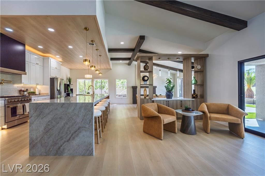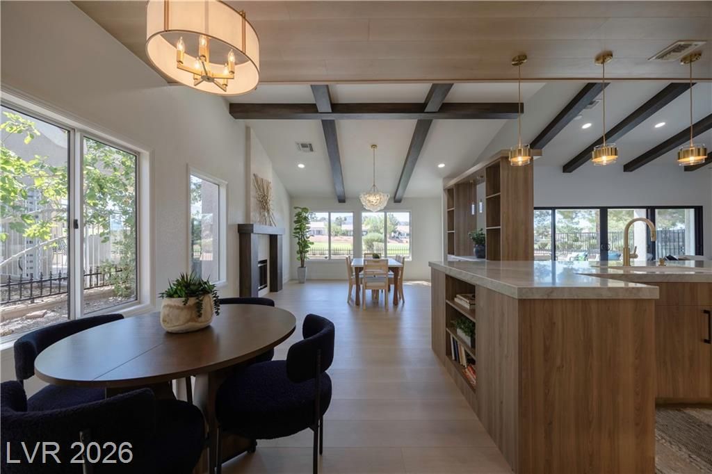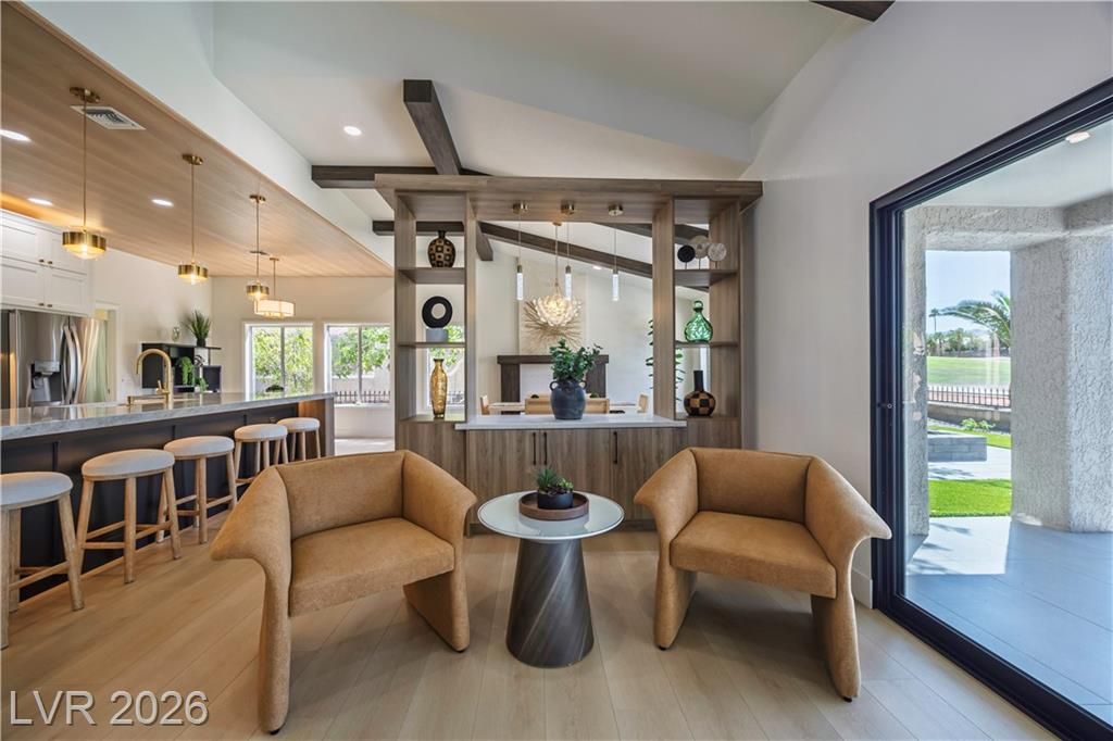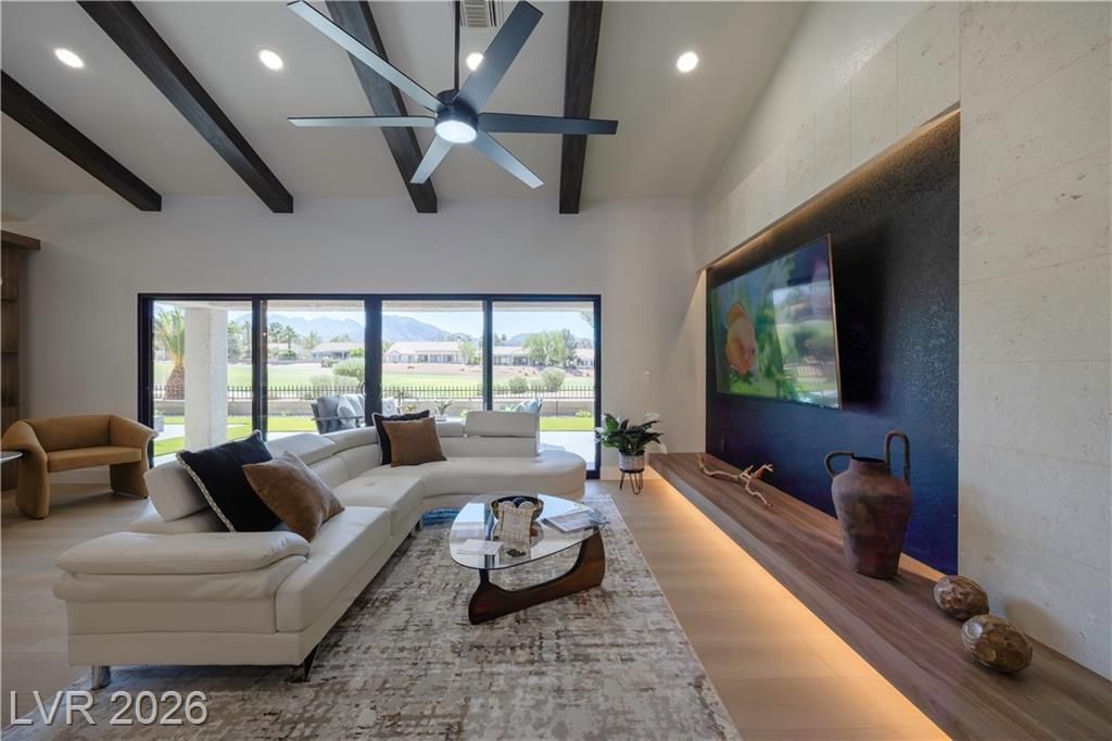 Just installed BRAND NEW Windows for this stunning retreat in the heart of Sun City Summerlin, where modern design meets relaxed desert living. This beautifully updated home sits along the golf course and offers incredible mountain views that make every sunset feel special. Inside, you’ll find an open, light-filled floor plan with designer finishes, luxury flooring, and a sleek kitchen featuring quartz counters, custom cabinetry, and stainless appliances. The spacious living and dining areas flow seamlessly for entertaining or quiet evenings at home. The primary suite is beautifully updated with an ensuite bath and a large walk-in closet, while the guest rooms are perfect for visitors or a hobby space. Step outside to a peaceful patio overlooking the golf course—ideal for morning coffee or sunset dinners. Enjoy resort-style amenities including golf, pools, fitness centers, and social clubs in this active 55+ community. Experience the best of Las Vegas living at Legend Drive.