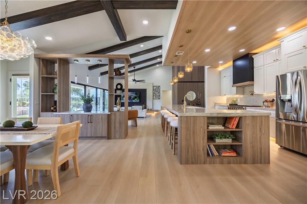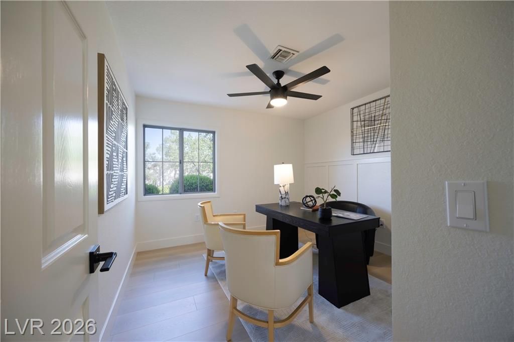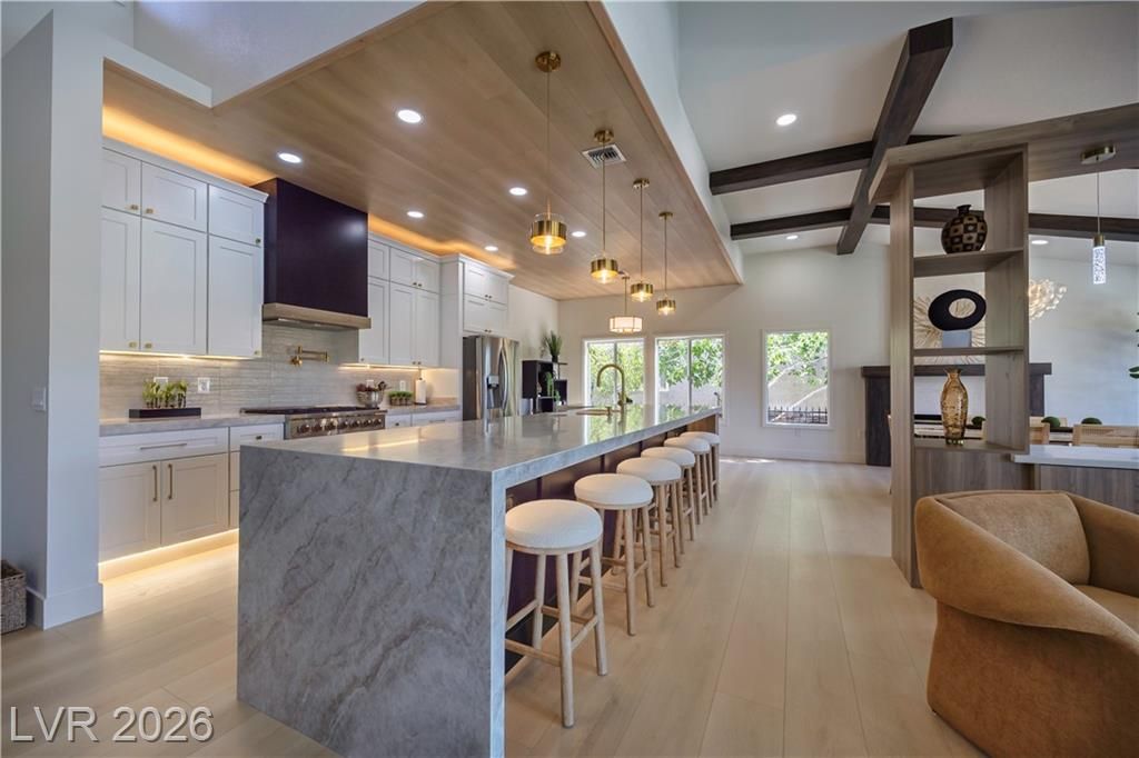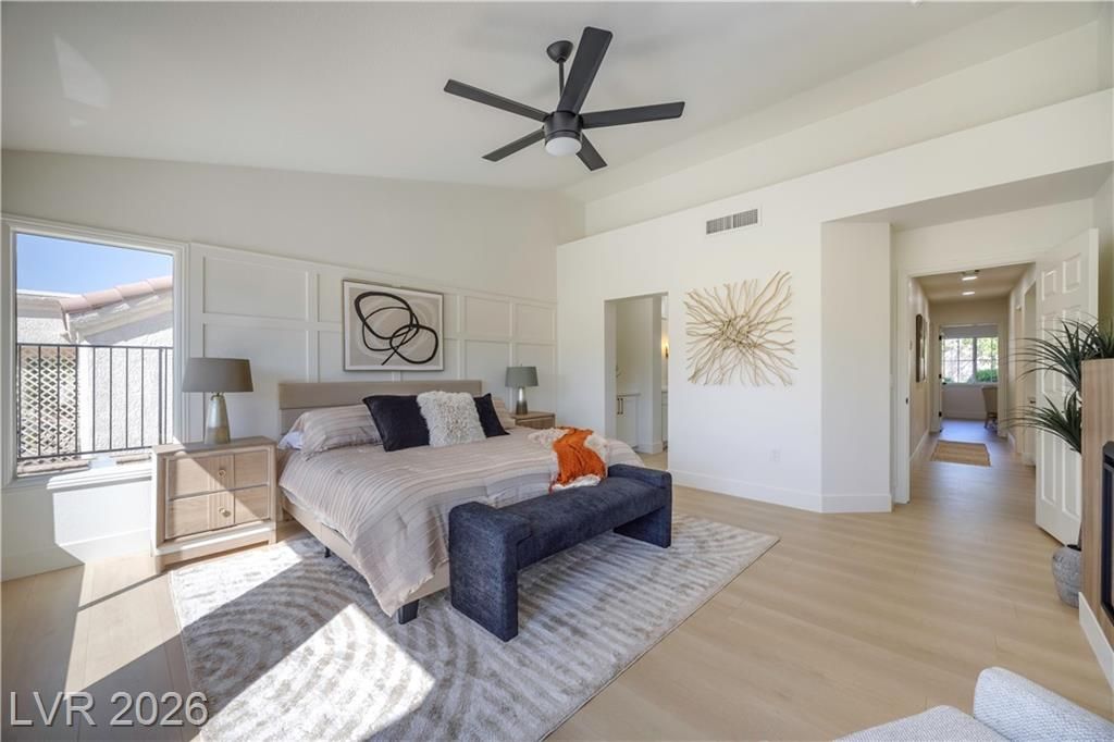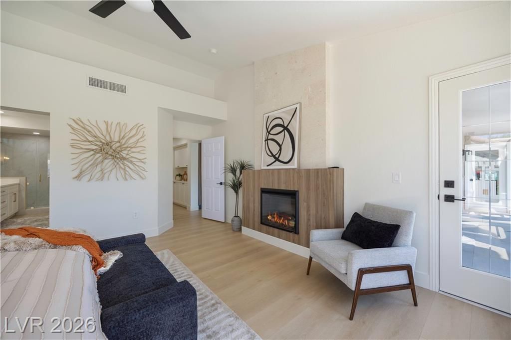 Just installed BRAND NEW Windows for this stunning retreat in the heart of Sun City Summerlin, where modern design meets relaxed desert living. This beautifully updated home sits along the golf course and offers incredible mountain views that make every sunset feel special. Inside, you’ll find an open, light-filled floor plan with designer finishes, luxury flooring, and a sleek kitchen featuring quartz counters, custom cabinetry, and stainless appliances. The spacious living and dining areas flow seamlessly for entertaining or quiet evenings at home. The primary suite is beautifully updated with an ensuite bath and a large walk-in closet, while the guest rooms are perfect for visitors or a hobby space. Step outside to a peaceful patio overlooking the golf course—ideal for morning coffee or sunset dinners. Enjoy resort-style amenities including golf, pools, fitness centers, and social clubs in this active 55+ community. Experience the best of Las Vegas living at Legend Drive.