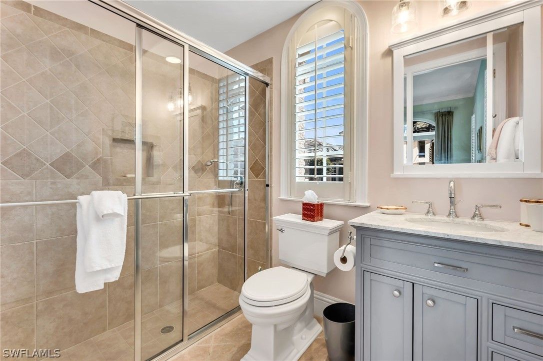 Stunning courtyard estate in the prestigious Augusta Creek enclave of Bonita Bay offering three bedrooms plus den, four full baths and one-half bath in a thoughtfully designed luxury villa. This spacious residence features soaring ceilings and an expansive open floor plan ideal for both elegant entertaining and comfortable everyday living. At the heart of the home, a private courtyard pool with waterfall spa creates a serene resort-style setting, seamlessly extending the living space outdoors for alfresco dining and relaxed gatherings. The separate third-bedroom cabana—complete with morning kitchen and full bath—provides exceptional privacy and convenience for extended guests. A second upstairs guest suite includes a sitting area and ensuite bath, while the generously sized primary suite (18’ x 20’) offers two walk-in closets and a tranquil retreat. Designer updates throughout include fresh paint, upgraded countertops, fixtures and more, enhancing the home’s refined appeal. The family room and kitchen overlook the sparkling courtyard pool, while the living room and screened lanai capture picturesque golf course views, filling the home with natural light throughout the day. An attached two-car garage completes the residence. Augusta Creek is located within the gated community of Bonita Bay, offering residents access to a private Gulf-front beach park with pavilion, 12 miles of walking and biking trails, a full-service 400-slip marina, and an award-winning golf and lifestyle club featuring five championship golf courses, 16 tennis courts, 15 pickleball courts, and a 29,000-square-foot fitness center and spa. Residents also enjoy convenient neighborhood shuttle service to the beach. This exceptional property combines privacy, space, beautiful golf course views and resort-style amenities—delivering the ultimate Southwest Florida lifestyle.