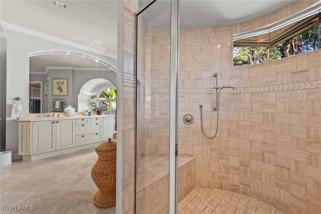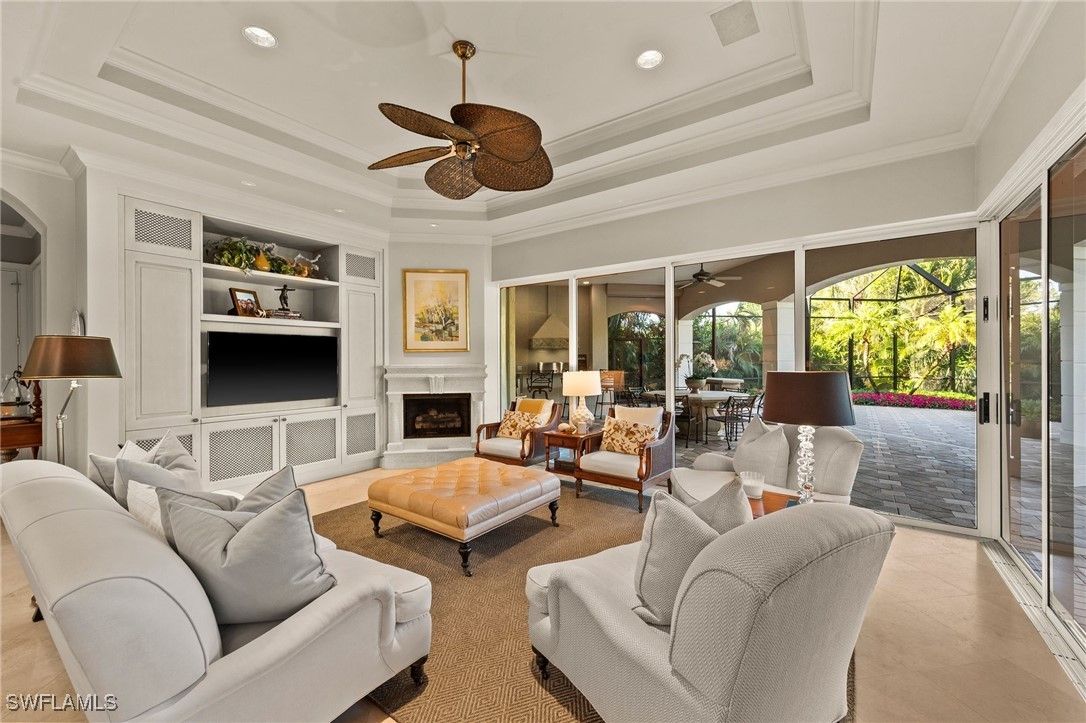 Experience the pinnacle of privacy and luxury living within the prestigious gates of Bonita Bay in the community of Bay Woods. This exceptional estate home offers 3 spacious bedrooms, a dedicated office, and a tranquil serenity room—all designed to balance elegance with nature. A stately motor court and rare 4-car garage set the tone for the car enthusiast, while soaring ceilings, refined finishes, and open living spaces create a seamless flow between indoors and outdoors. At the heart of the home, walls of glass open to the expansive terrace where the infinity-edge pool appears to dissolve into the untouched preserve. With no neighbors in sight, every sunrise becomes a private performance framed by lush natural beauty. Hosting friends and family is a breeze with a spacious kitchen, handy butler’s pantry, spirit storage, and plenty of resort-style perks—like a summer kitchen and inviting lounge areas perfect for everything from cozy get-togethers to big celebrations. The primary suite is a sanctuary with a spa-inspired bath, dual dressing rooms, and a private terrace, while the serenity room invites mindfulness, and the office provides refined focus with serene views. Nestled in one of Southwest Florida’s most coveted communities, this estate channels the world-class amenities—five championship golf courses, private marina, beach park, tennis, fitness, and miles of walking trails—a rare opportunity to own a home that embodies both prestige and peace of mind.