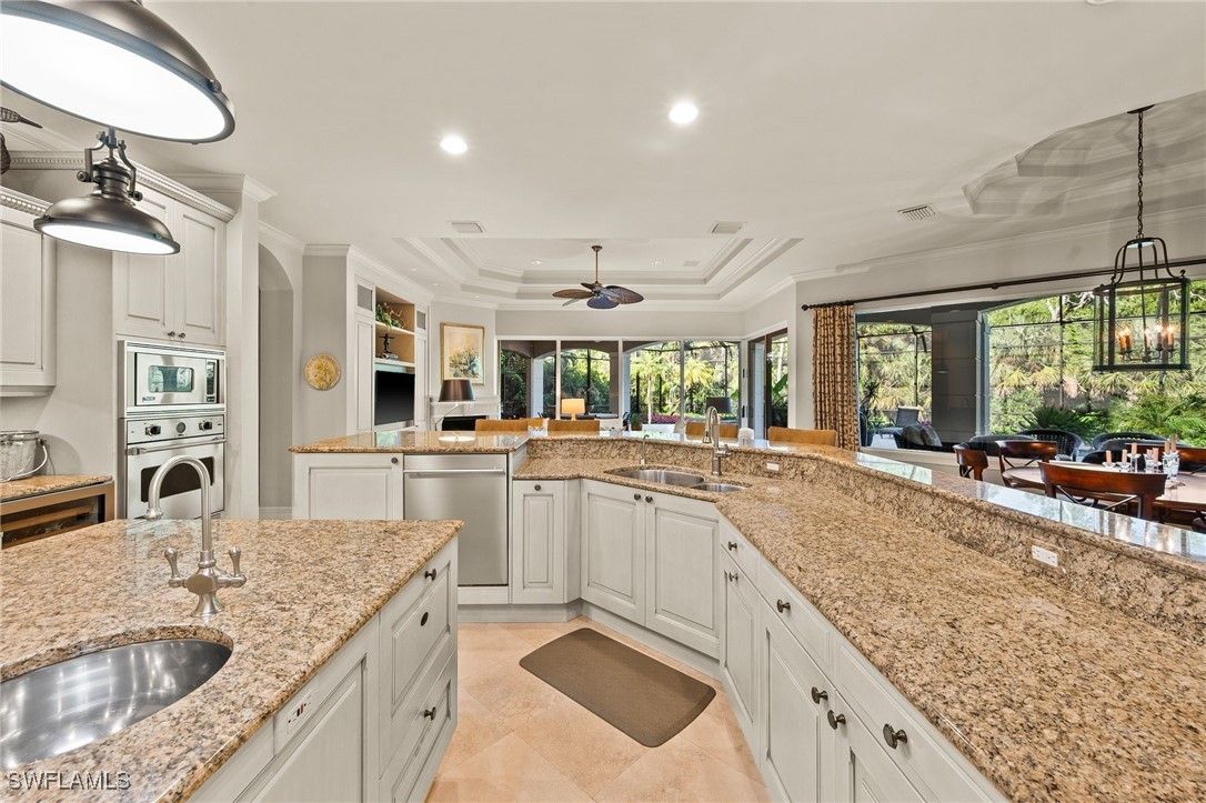 - Breakfast Bar, Built-in Features, Bathtub, Tray Ceiling(s), Dual Sinks, Entrance Foyer, Eat-in Kitchen, French Door(s)/Atrium Door(s), Fireplace, Jetted Tub, Living/Dining Room, Pantry, Separate Shower, Central Vacuum, Split Bedrooms