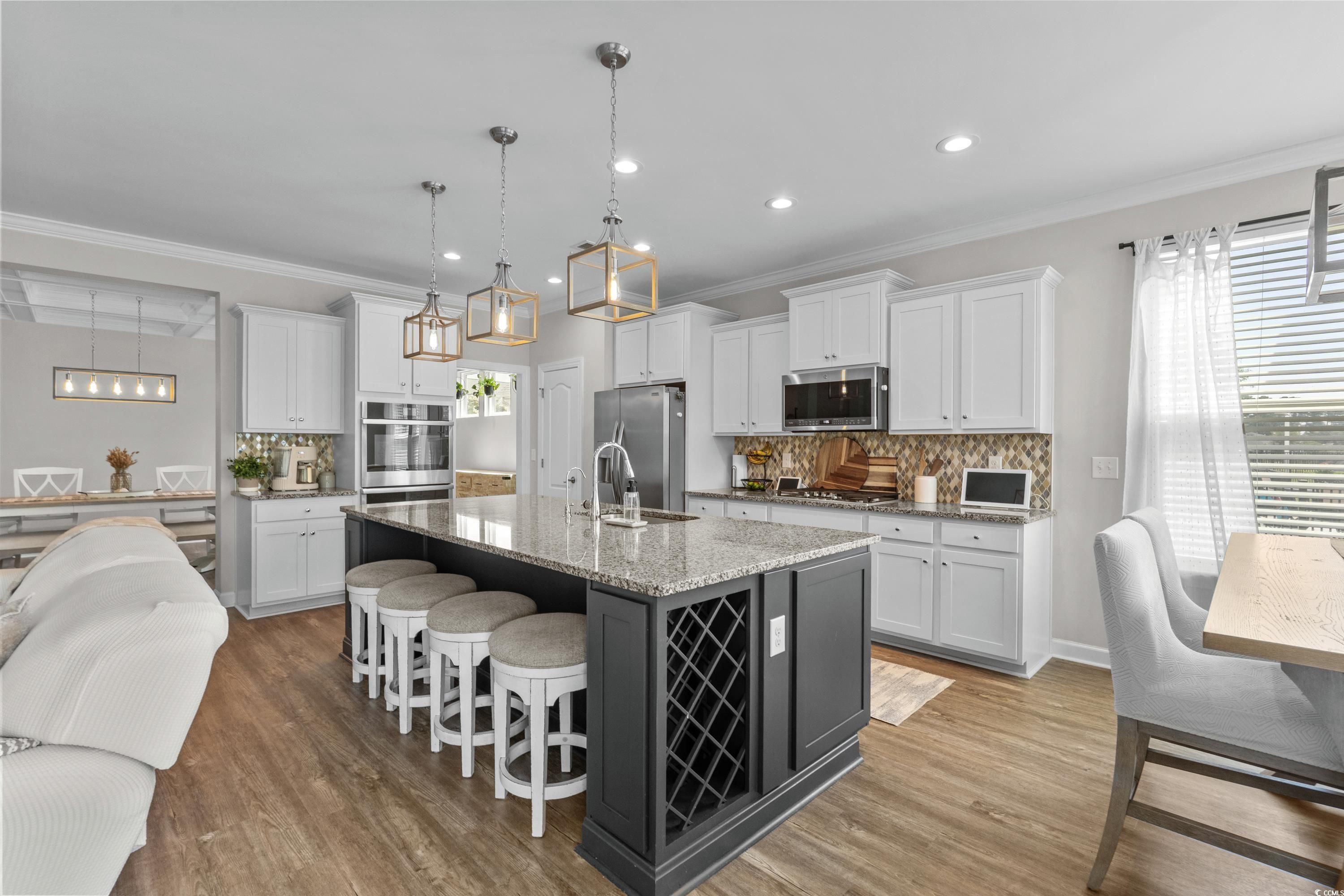 Welcome home to "The Good Life" in Bridgewater! The Boardwalk model features 4 Bedrooms / 3 Baths and a large loft / family room on the second level! This floor plan boasts many notable upgrades including: large front and rear covered porches, spacious foyer area, oversized dining area with coffered ceiling, dream kitchen with custom cabinets, stainless steel appliances including gas stove and double ovens, quartz countertops and large island! The floor plan makes living and entertaining simple! The living room boasts a custom electric fireplace with ship lap accents along with plenty of natural light. Enjoy the upgraded Luxury vinyl plank flooring on the main level living areas and owners suite. The owners suite on the main level offers trey ceiling, view of the back yard and an incredible full bath with custom tile shower and huge walk in closet! The second level boasts: a family room, bedroom and full bath so there is always room for guests! Enjoy grilling out and gardening or playing in the spacious back yard! This home also offers a whole house Water Filtration system + RO system and the HVAC Air Scrubber. Bridgewater Cottages is conveniently located near McLeod Health, Hwy 31, Schools, Shopping, Beach & More! Don't forget to check out the amenities this wonderful community offers and the social life with the monthly calendar of events to join. Bridgewater Cottages is just over the ICW bridge in North Myrtle Beach into Little River and close to Cherry Grove Beach and Sunset Beach, NC. Call today to schedule your private showing!