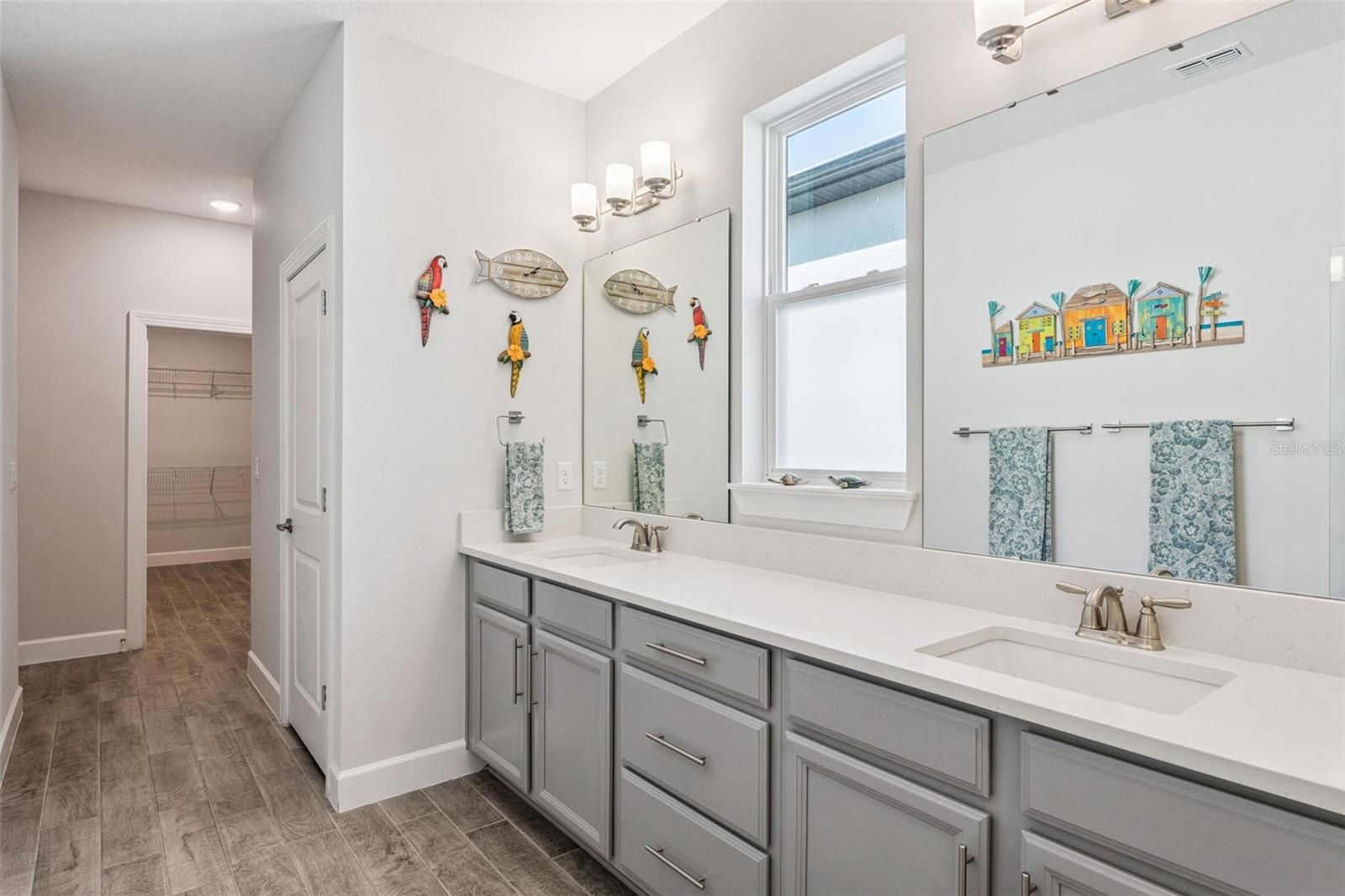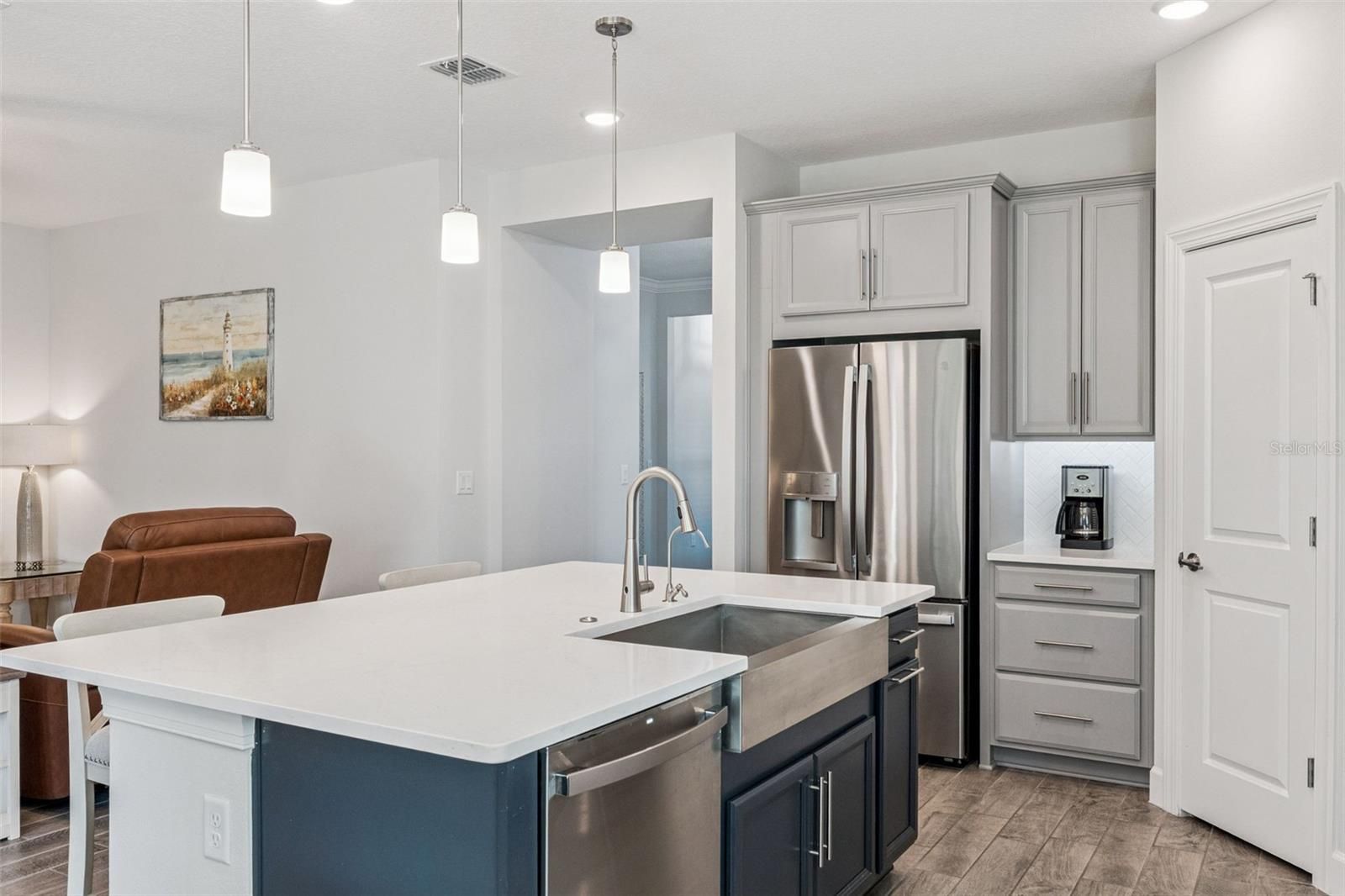 Stunning Upgraded 2022 Home in Esplanade of Highland Ranch – 55+ Resort-Style Living. Welcome to 2640 Mariotta Ridge, a beautifully appointed 2022-built home located in the highly sought-after 55+ Esplanade of Highland Ranch community in Clermont. This move-in ready home offers 2 bedrooms, 2 bathrooms, and a versatile flex room with French doors, ideal for a home office, den, or hobby room. The open-concept design showcases a gourmet chef’s kitchen featuring stainless steel appliances, a stainless farmhouse sink, quartz countertops, upgraded cabinetry, reverse osmosis at the kitchen sink, walk in pantry and under-cabinet lighting—perfect for entertaining while staying connected with family and guests. Wood-look tile flooring flows throughout the home, complemented by high ceilings and no carpet. Both bathrooms feature upgraded tile, with the primary bathroom offering a walk-in shower with a built-in bench and custom vanity. The spacious great room includes a floor outlet, making furniture placement easy and flexible. Throughout the home, you’ll find custom ceiling fans, new gutters, and a recently installed epoxy garage floor with a lifetime transferable warranty. Outdoor living is a true highlight of this home. The private lanai and backyard with NO rear neighbors provide a tranquil setting the owners enjoy year-round. Whether grilling out, watching butterflies, sandhill cranes, hawks, and other birds, admiring the holly tree with ripe red berries, listening to the rain, or soaking in the warmth of the sun, this space offers exceptional privacy, beauty, and relaxation. Residents of Esplanade of Highland Ranch enjoy resort-style amenities, including a stunning clubhouse, fitness center, movement room, card room, billiards and ping pong, clay tennis courts, pickleball courts, clay bocce ball, a resort pool with lap lanes, resistance pool, spa, gas fire pit, grill area, dog park, and an active calendar of clubs, classes, and social events. The community is prized for its beautiful home elevations, scenic surroundings, and convenient location near shopping, dining, golf courses, biking trails, weekend farmers markets in Clermont and Winter Garden, and top medical facilities including the VA, two hospitals, and the brand-new AdventHealth Hospital. Enjoy easy access to the Florida Turnpike, nearby attractions such as Disney, Universal Studios, Epic Universe, and even views of Disney fireworks from within the community. Orlando International Airport is approximately 37 minutes away. The HOA includes lawn care, irrigation maintenance, and shrub maintenance, making this an ideal lock-and-leave lifestyle. An exceptional home offering comfort, upgrades, and a lifestyle you’ll love—schedule your private showing today!