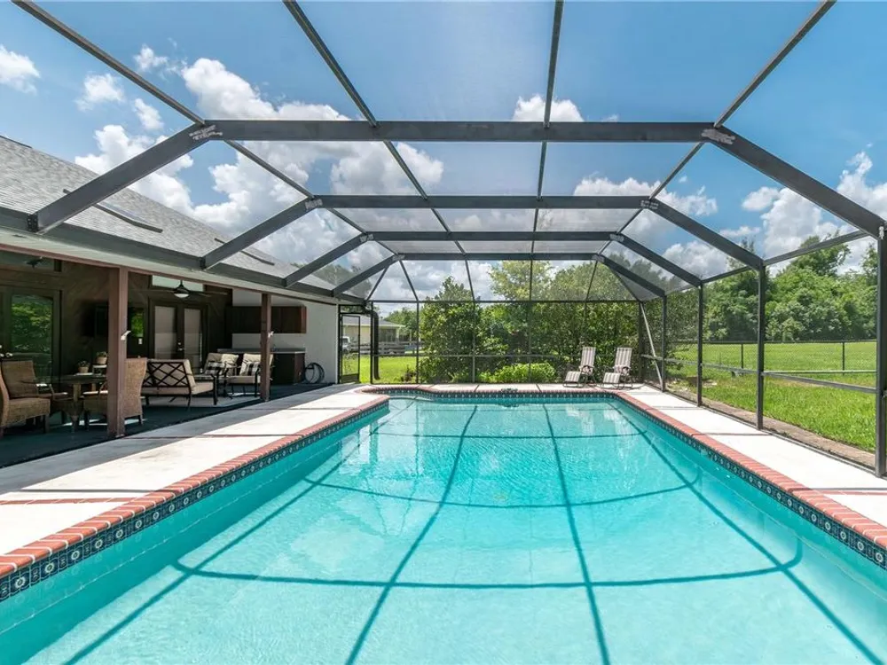 Location, Location, Location! Welcome to your dream home in the pristine community of El Dorado Estates, nestled in the heart of horse country. This stunning pool home sits on 1.99 acres of gorgeous land, offering privacy, space, and incredible views. Inside, you'll find a charming, cozy living space with an open-concept updated kitchen and bathroom areas that are sure to impress. Designed with entertaining in mind, the home features a spacious kitchen overlooking the family room, which includes a built-in fireplace and double French doors that open to your outdoor oasis. Relax and enjoy the quintessential Florida lifestyle with an oversized screened-in pool, outdoor kitchen, and plenty of space for gatherings. Recent upgrades include a new roof (2022), HVAC (2020), water heater (2023), windows (2022), and new pool screens (2023), along with many more improvements. Conveniently located close to shopping, dining, and all the amenities Central Florida has to provide, this beautiful home is move-in ready. Bring your furniture and make this exceptional property yours today—don’t let this opportunity slip away!