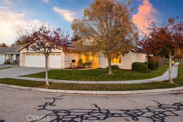 Defined by its single-level layout and thoughtful updates, this River Oaks home in Paso Robles offers a calm, welcoming feel from the moment you enter. Natural light moves through the main living spaces, creating a sense of ease that supports everyday living and gatherings with the people you enjoy. The open living area includes updated flooring, recessed lighting, and a gas fireplace that brings warmth and simplicity to the heart of the home, while the refreshed kitchen features quartz countertops, stainless steel appliances, a tile backsplash, updated cabinetry, and bar seating-a functional space for cooking, conversation, or welcoming friends. With 3 bedrooms plus a bonus room that can serve as a fourth bedroom or an office, the layout provides flexibility for work, guests, or hobbies. The private primary suite sits toward the back of the home and includes laminate flooring, a walk-in closet, and an en-suite bath with a separate tub and walk-in shower. Two additional bedrooms are located near the remodeled guest bath, and the bonus room includes storage. Energy-conscious improvements include owned solar, a newer HVAC system (2018), natural gas BBQ hookup, and an EV charger in the 3-car garage-helping keep daily living efficient and comfortable. The backyard offers one of the h